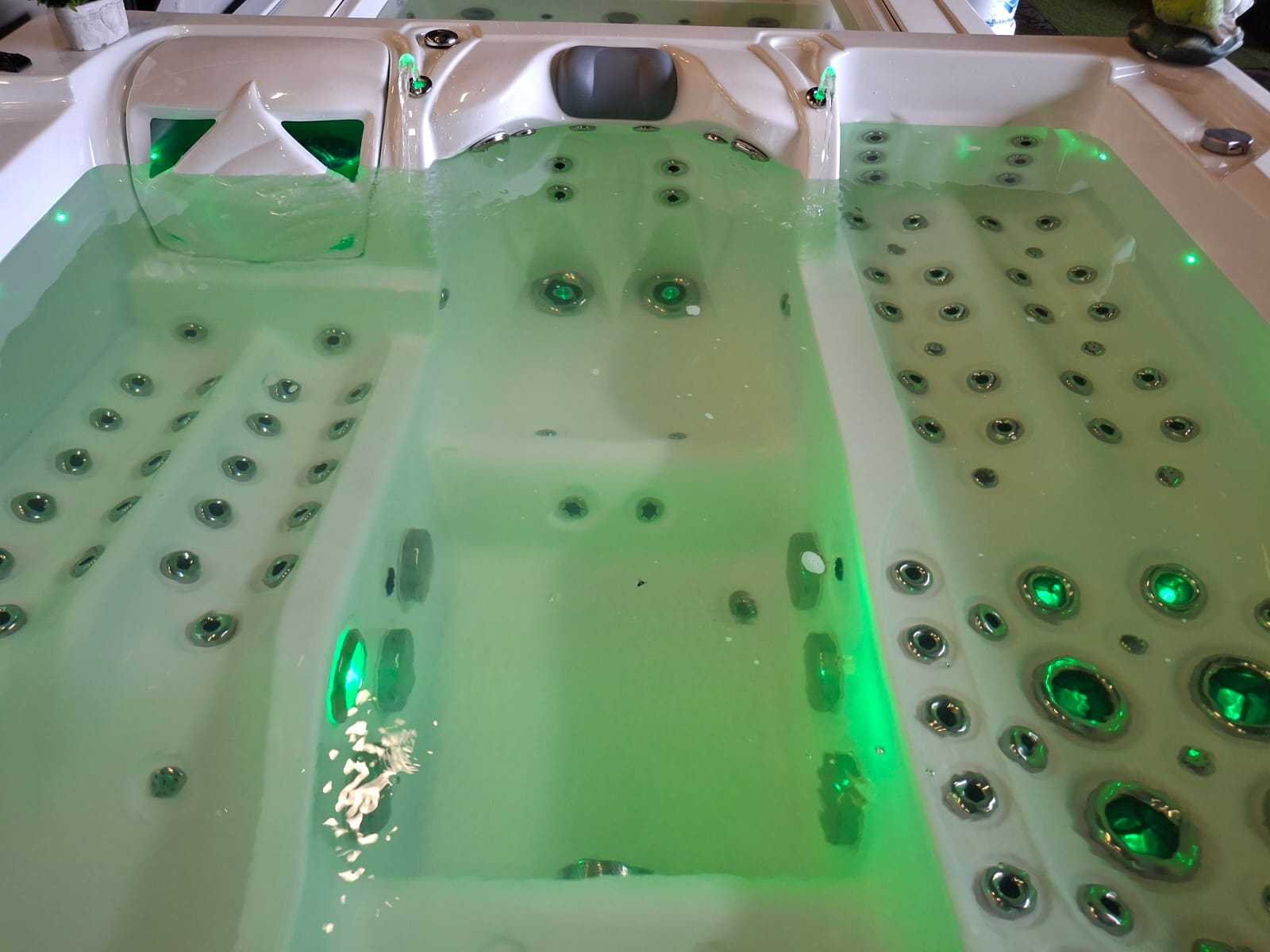 Voorzien van 2 ligplaatsen; 2 zitplaatsen; RVS massage jets; waterval; hoofdkussens; nek/schouder massage; verlichting in de jets; ligplaats heeft van hoofd, hand tot voet massage; kunststof omkasting; geïsoleerde cover; fonteinen; showroom model; nieuwprijs 17.990,- (Marge, geen BTW) Merk: Infinitas Model: 4 persoons Verlichting: Ja Pompen: 7 Jets: 133 Aantal personen: 4 Lengte: 240cm Breedte: 240cm Hoogte: 90cm