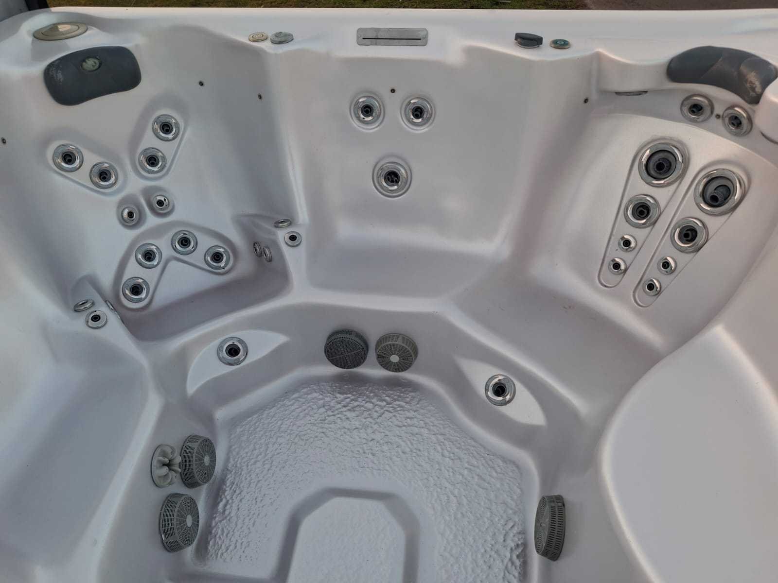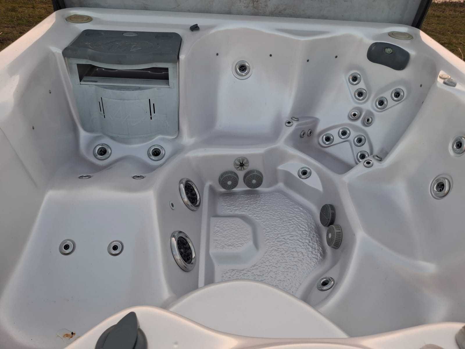 Voorzien van lift voor de cover; nek/schouder massage; inclusief cover; Amerikaanse jacuzzi; speakers; kunststof omkasting; waterval; Niet getest op functioneren (Marge, geen BTW) Merk: Balboa Model: 5 persoons Verlichting: Ja Jets: 50 Aantal personen: 5 Lengte: 230cm Breedte: 230cm Hoogte: 92cm