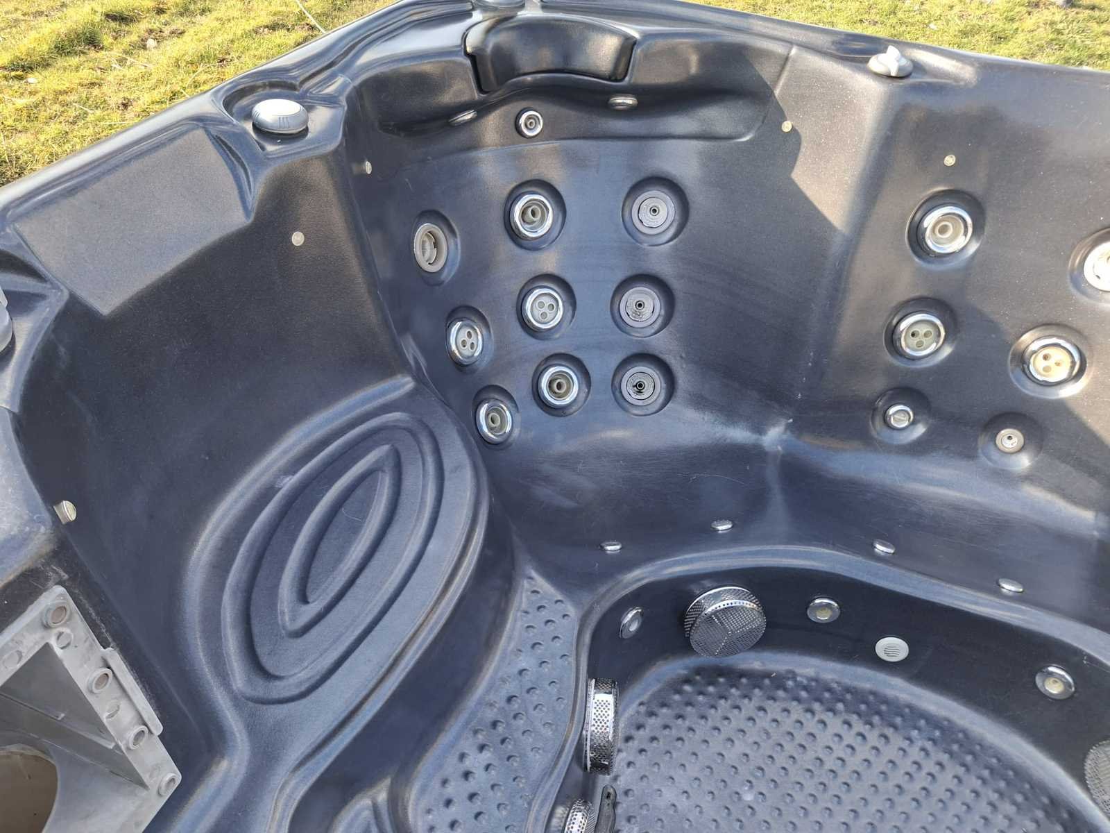 Voorzien van speakers; kunststof omkasting; 1 ligplaats; 4 zitplaatsen; waterval; hoofdkussens; automatisch filtersysteem; nek/schouder massage; Niet getest op functioneren (Marge, geen BTW) Merk: Balboa Model: 5 persoons Verlichting: Ja Jets: 48 Aantal personen: 5 Lengte: 230cm Breedte: 230cm Hoogte: 93cm