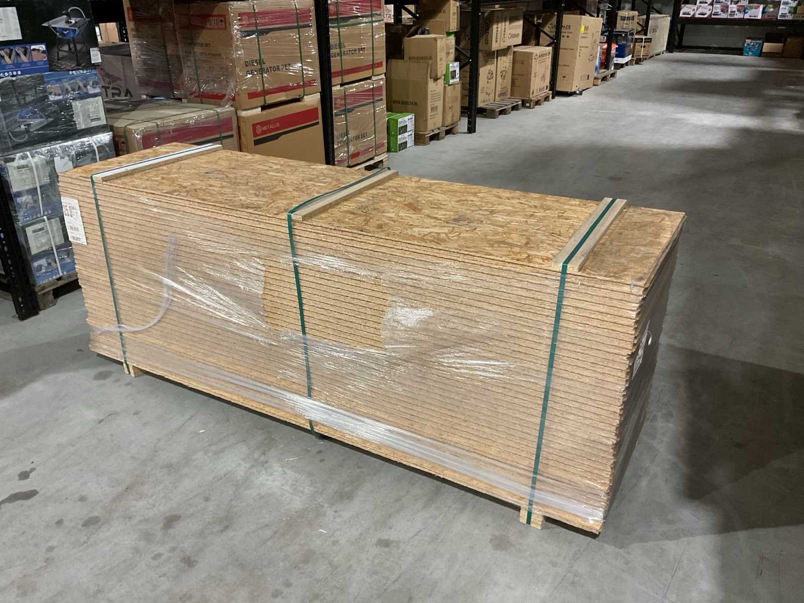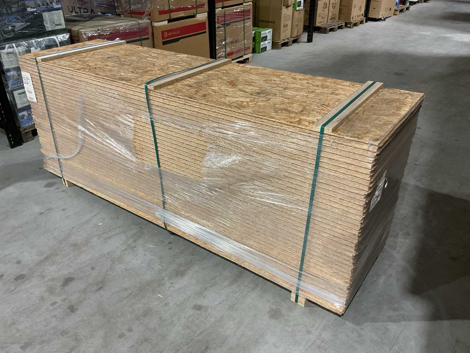 Voorzien van GBF4; 36 platen; 675x2500x25 mm per plaat; Ongebruikt (Afmeting transport verpakking 2500x675x960 mm lxbxh, gewicht 921.6 kg) Merk: OSB Type: 2500x675x25 (36st) Plaatafmeting l: 2500mm Plaatafmeting b: 675mm Dikte: 25mm Eigen gewicht: 921.6kg Totale afmeting L: 2500mm Totale afmeting Breedte: 675mm Totale afmeting Hoogte: 960mm