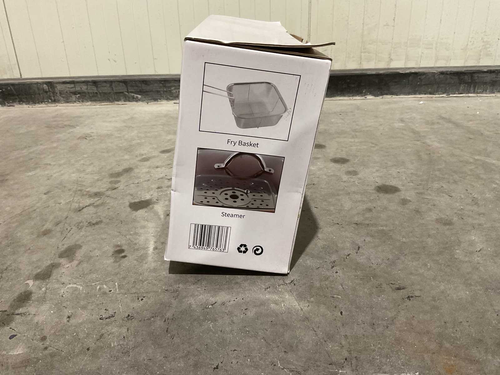 Voorzien van Aluminium kern met koperkleurige coating Coating: Keramische anti-aanbaklaag (non-stick) Handvat: RVS / hittebestendig handvat Frituur-/stoommand Afmetingen pan: ±24 × 20 × 6 cm Hoogte pan: ±6 cm Inhoud: ±4 liter Gewicht: ±0,7 – 0,8 kg Geschikt voor:Gas, Elektrisch, Keramische kookplaat Ovenbestendig Vaatwasserbestendig PFOA-vrij / gezonde anti-aanbaklaag 2,4kg 153x509x260mm Merk: Swiss pro+ Model: 2 in 1 Copper Square Frying Pan Set
