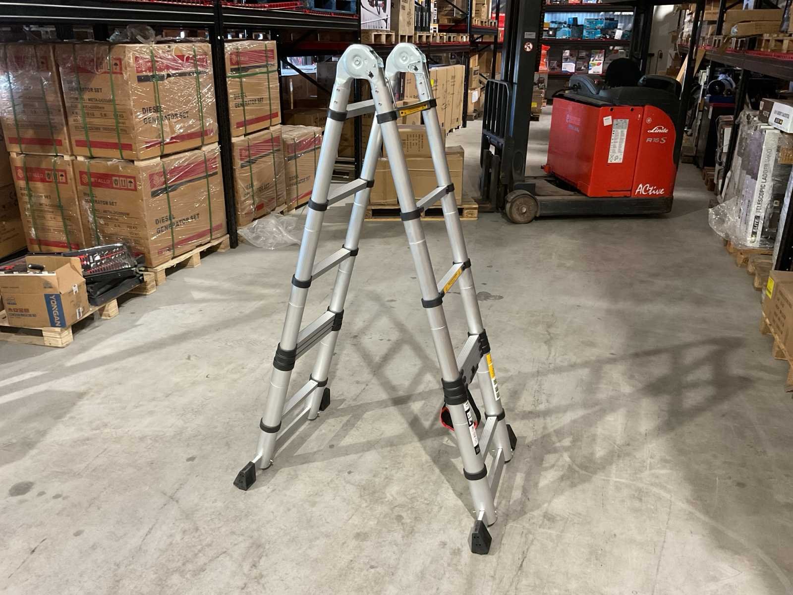 Voorzien van anti slip tredes; veiligheid band; ongebruikt in doos (transport afmetingen 90x50x20 cm) Merk: Elite Type: Vario 2x2,2 m Bouwjaar: 2025 Aantal treden: 16 Eigen gewicht: 18kg