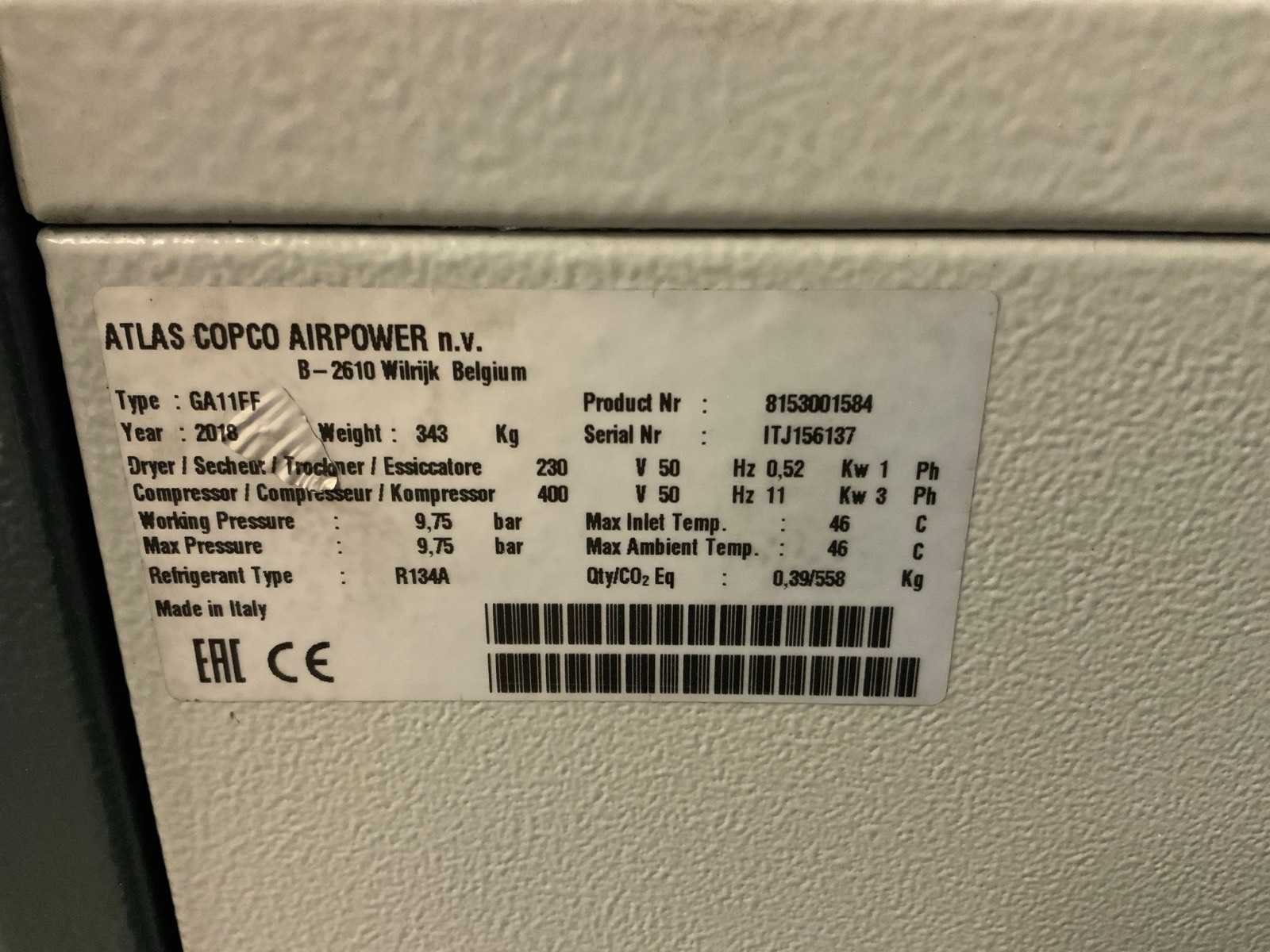2018 atlas copco ga ii ff schroefcompressor