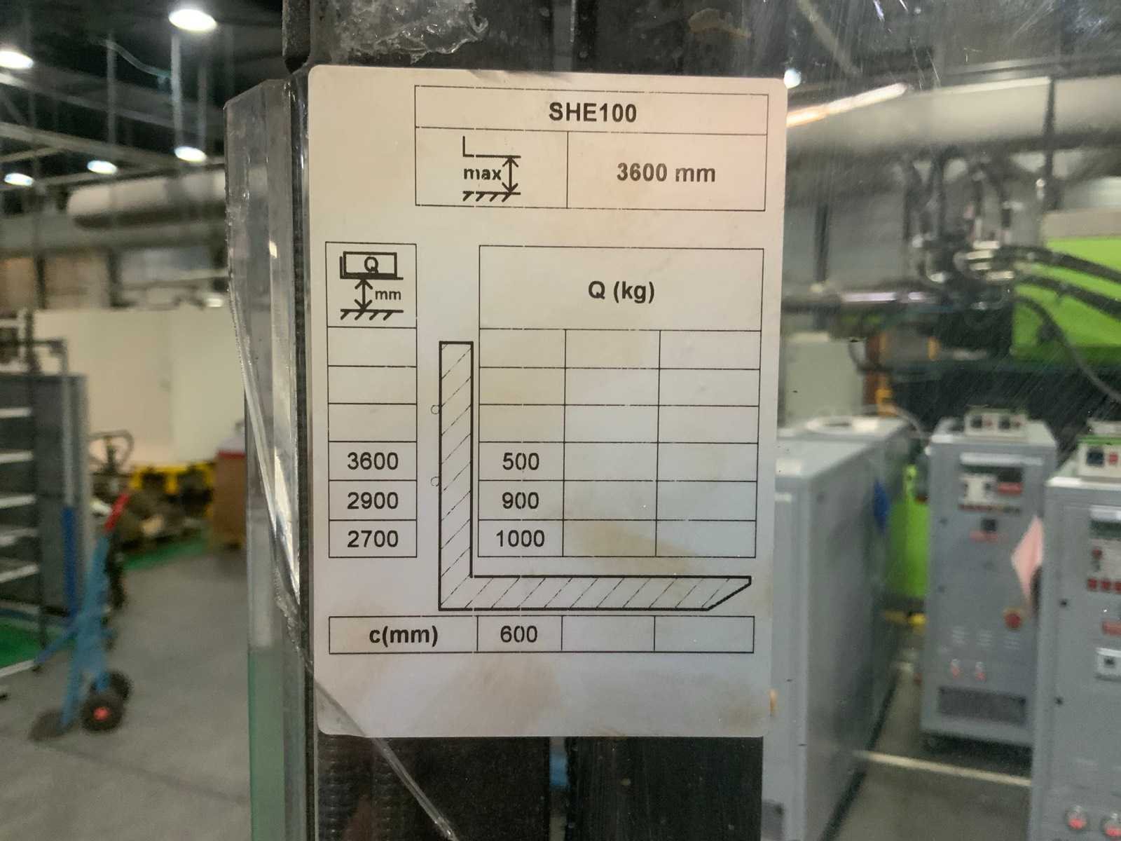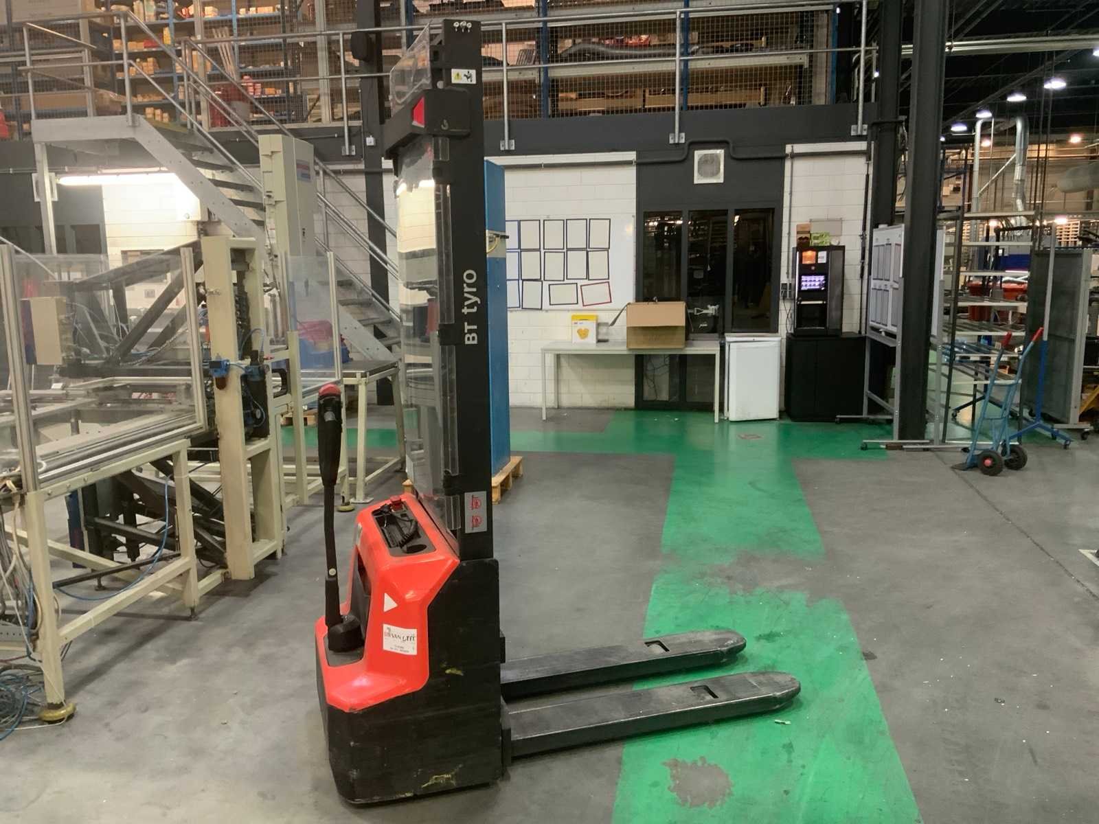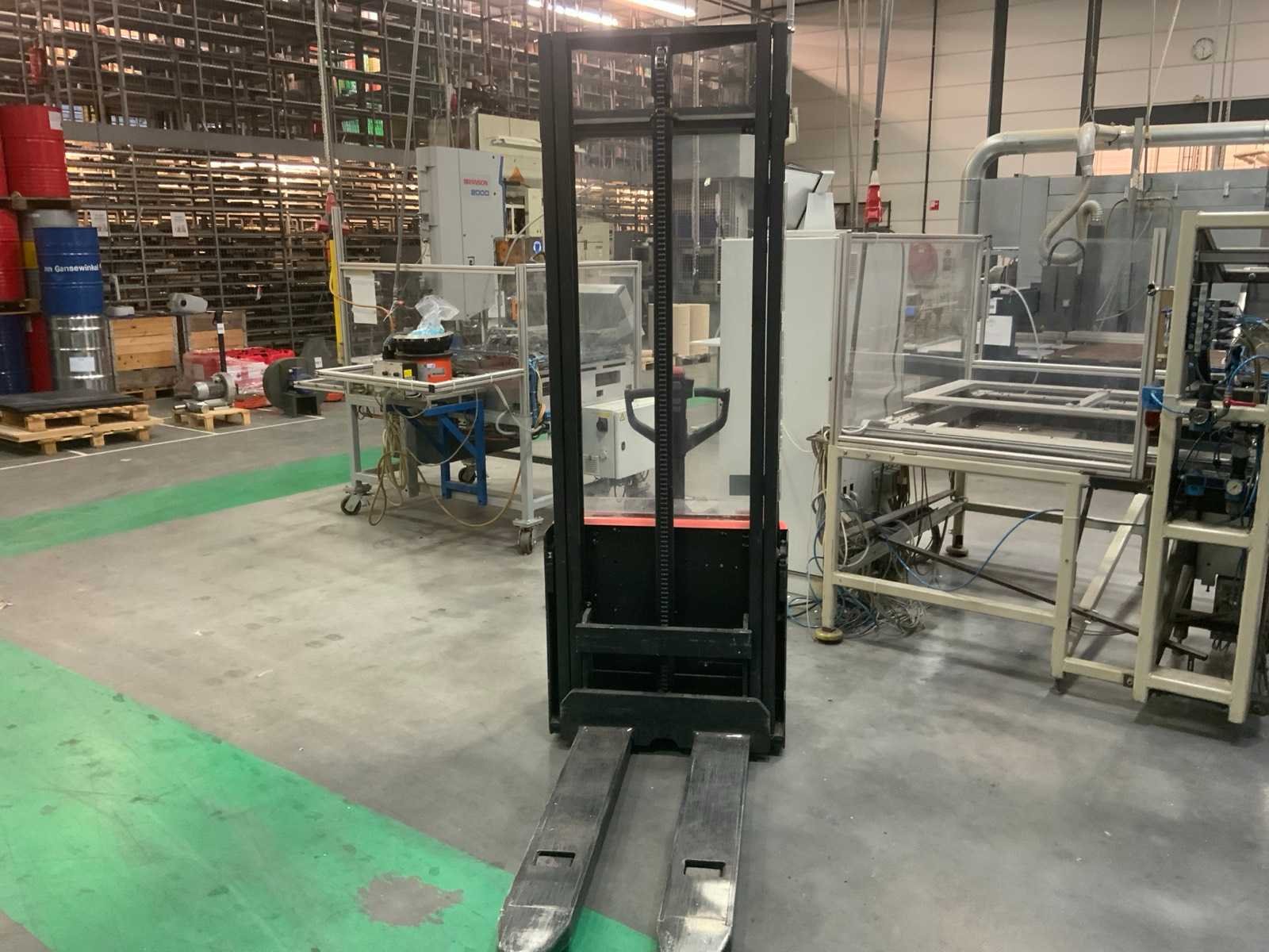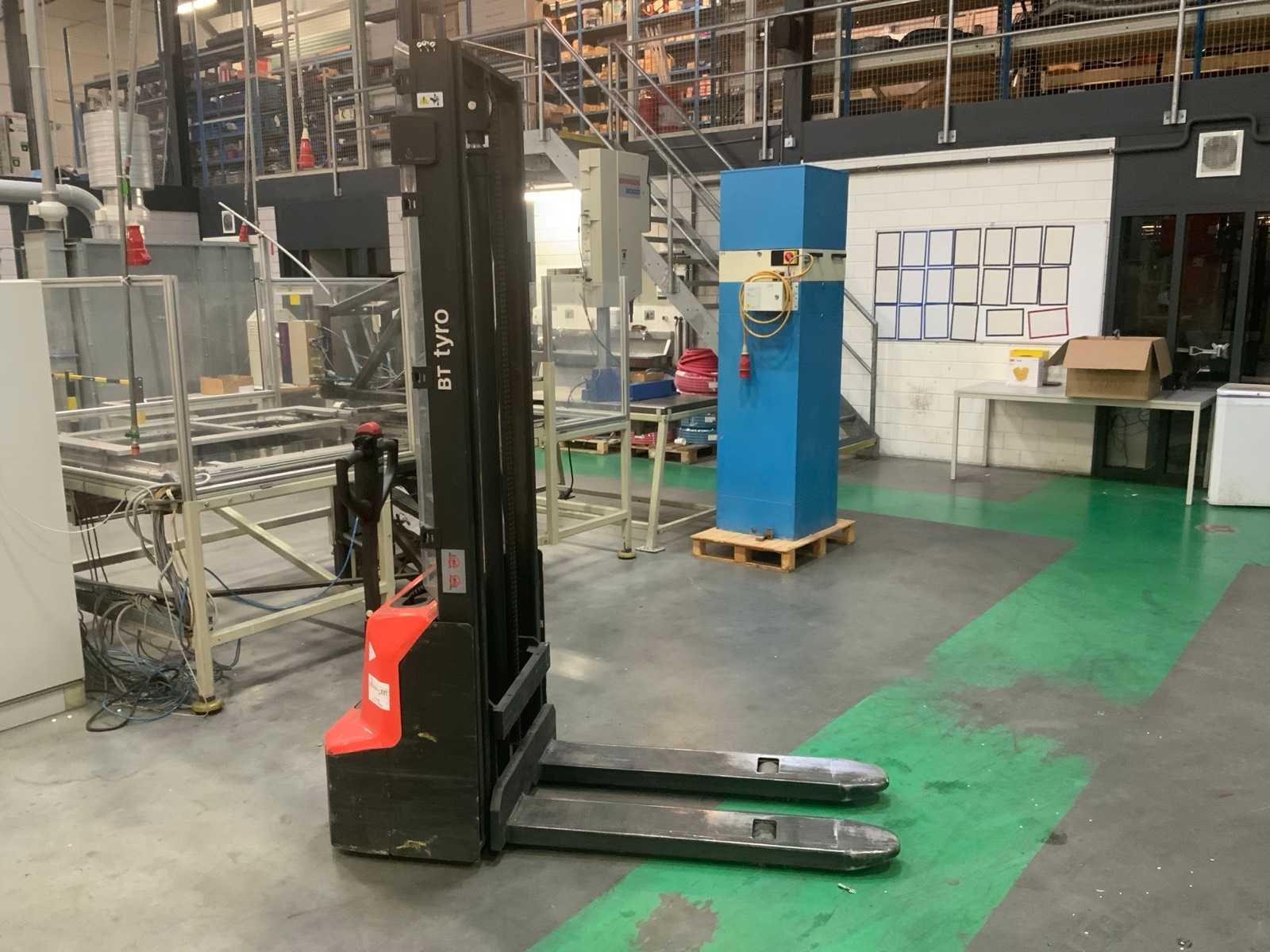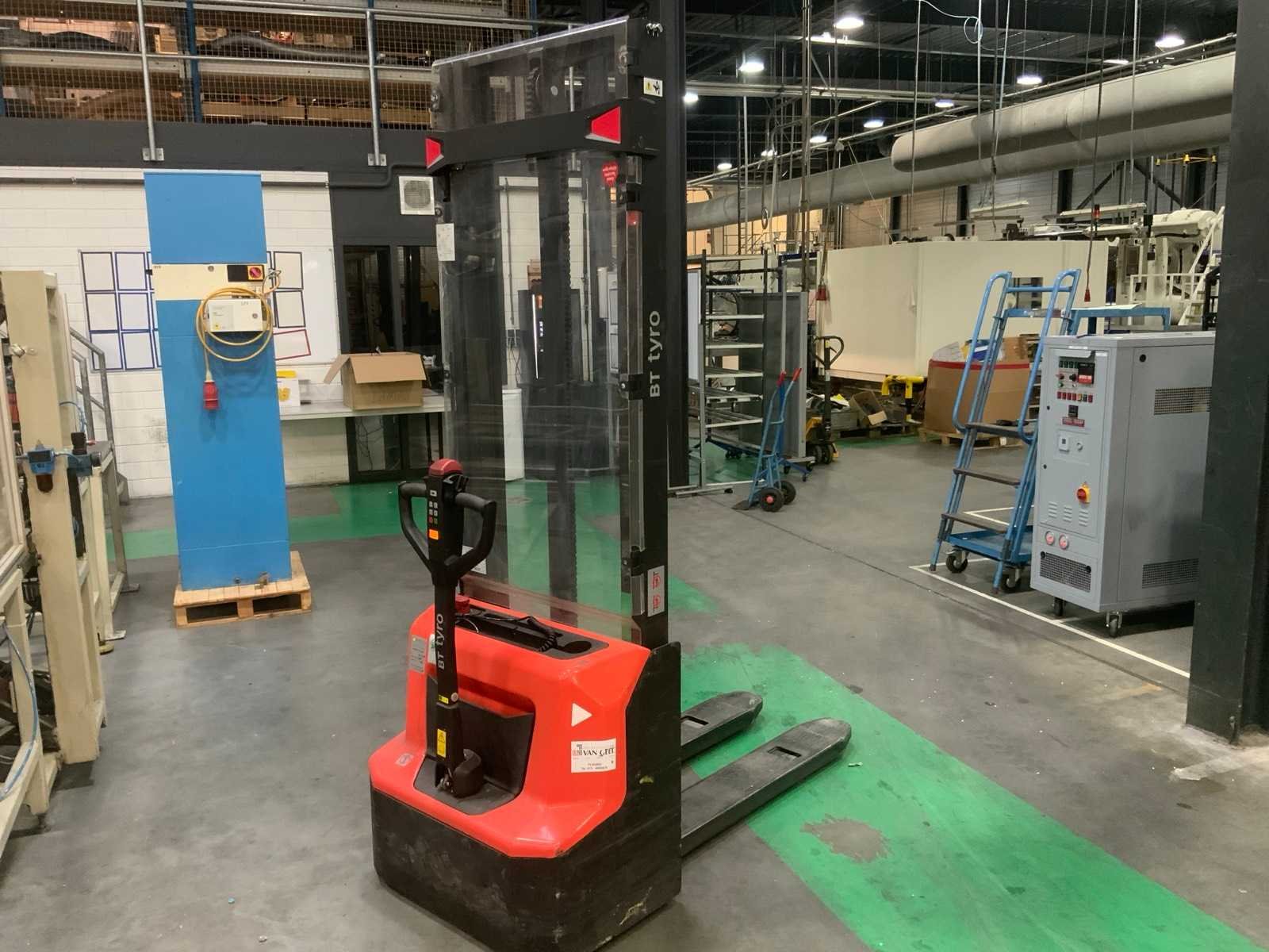 Merk: BT Tyro Type: SHE 100 Bouwjaar: 2021 Serienummer: 3021070114 Hefvermogen: 1000kg Hefhoogte: 3600mm Lepellengte: 1150mm Minimale doorrijhoogte: 2300mm Totale afmeting Breedte: 800mm Accu lader: true