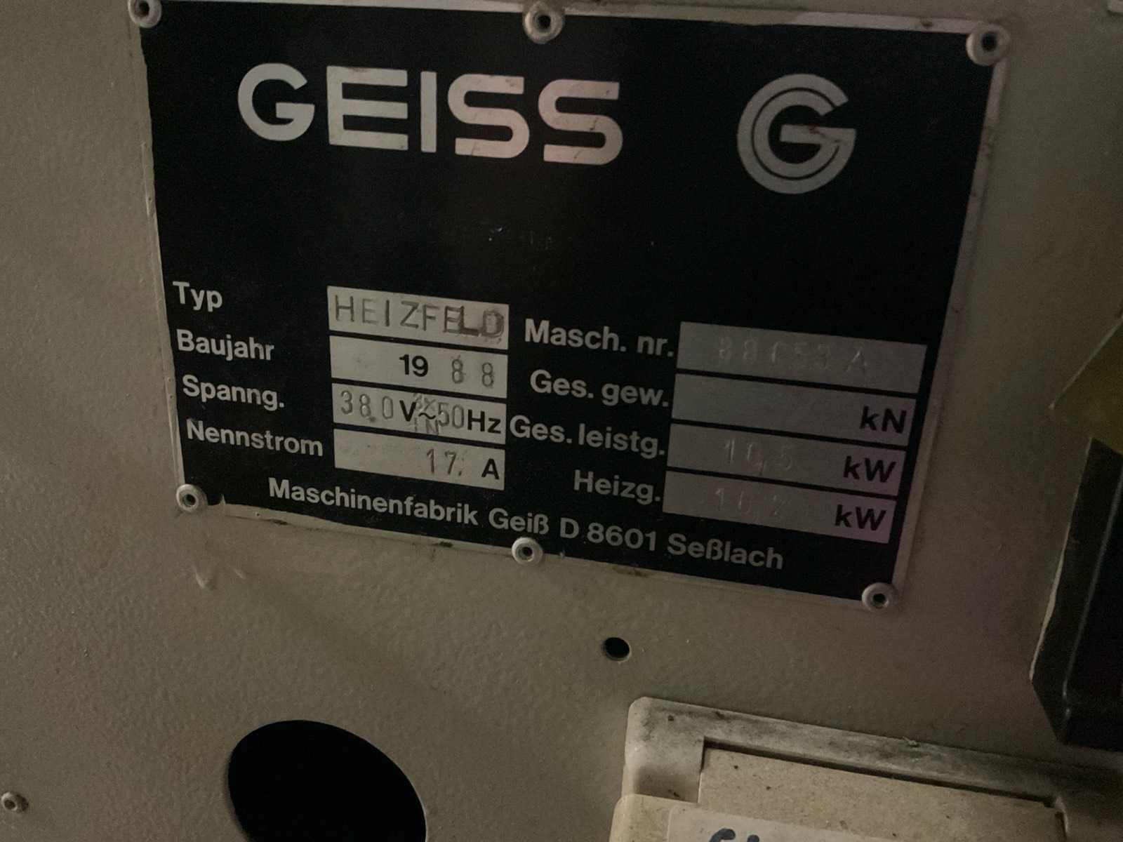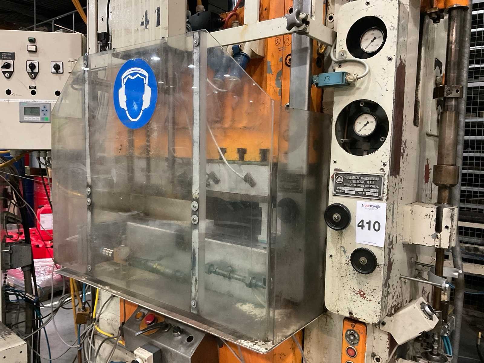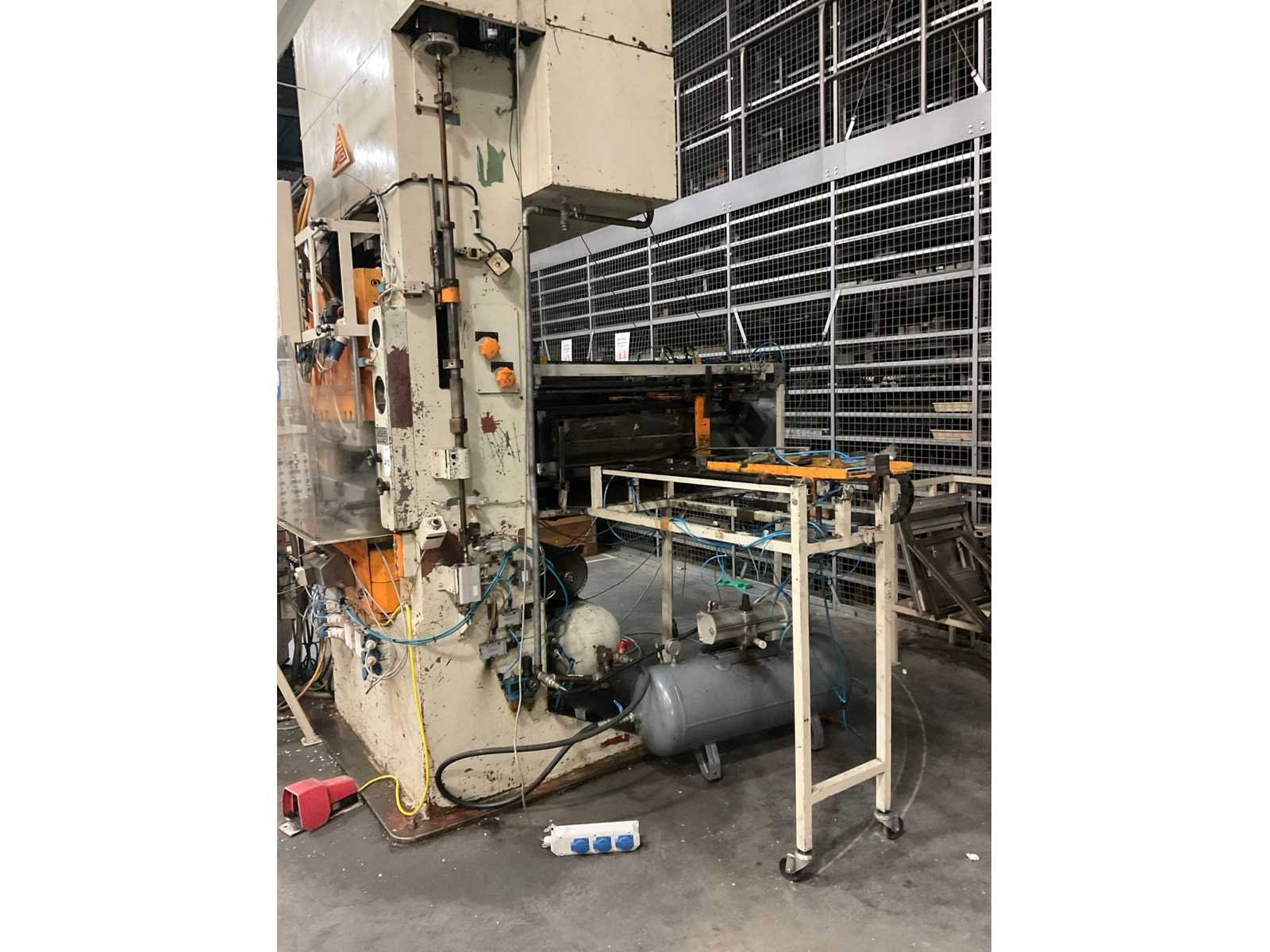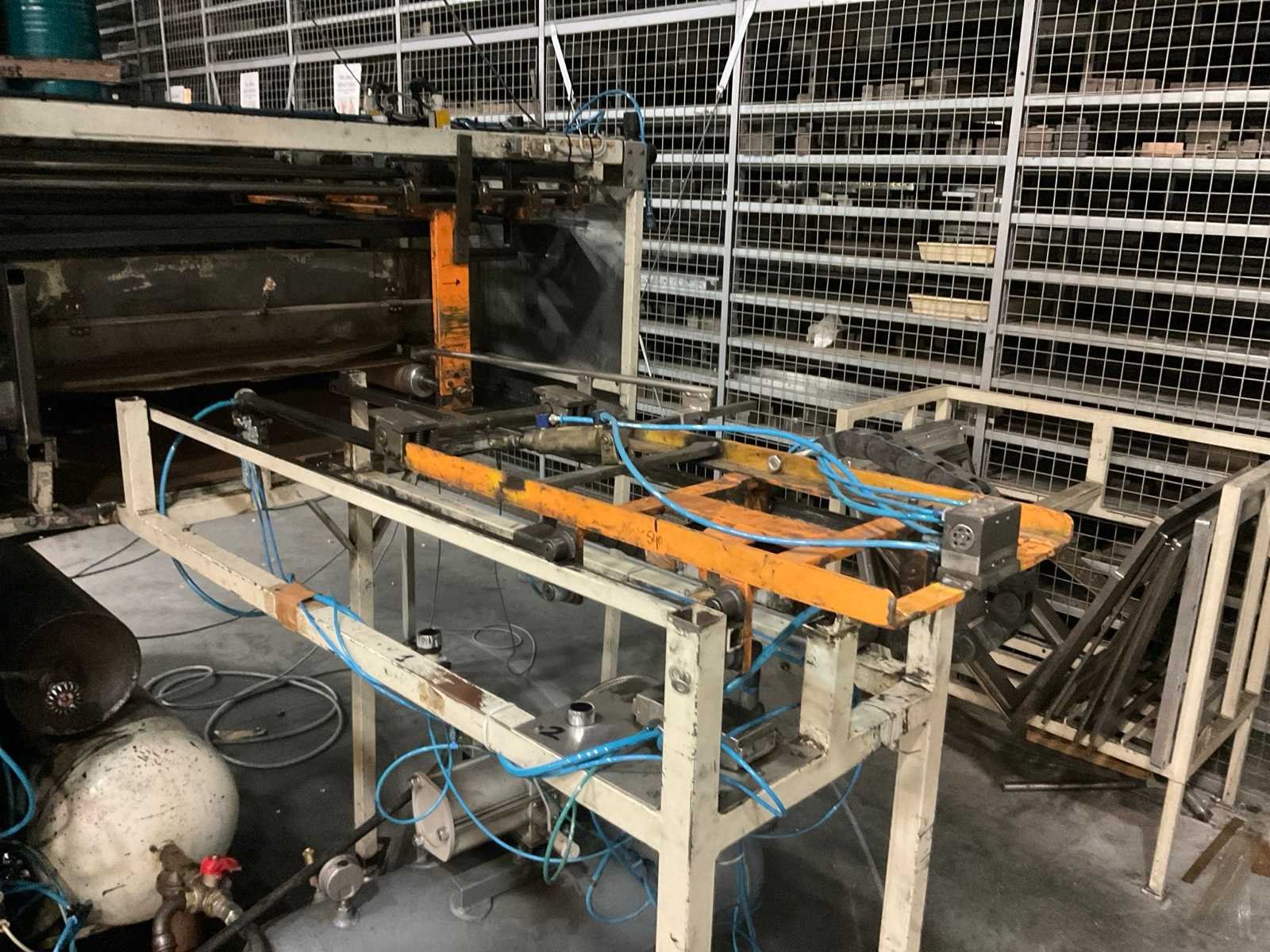 Voorzien van pers beveiliging, verrijdbaar frame, invoer inrichting, zij invoerinrichting, infrarood verwarmingsunit, temperatuur regelkast, pneumatische inrichting Alsmede pneumatische stanspers Merk: SMG Type: HZ PR60 II M Bouwjaar: 1954 Serienummer: 670/299 Capaciteit.: 60t Aansluiting: 400V Afmeting l: 4200mm Afmeting b: 3900mm Afmeting h: 3300mm