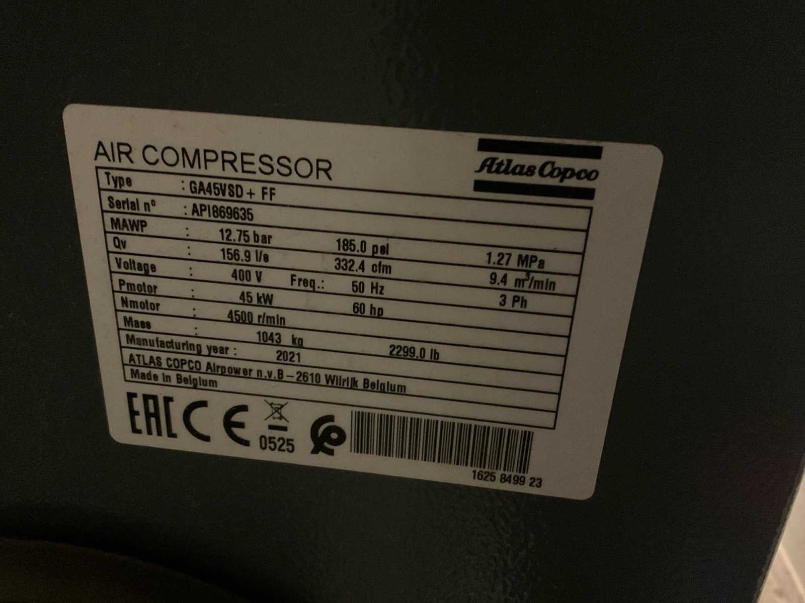 2021 atlas copco ga45vsd+ff schroefcompressor en olieafscheider