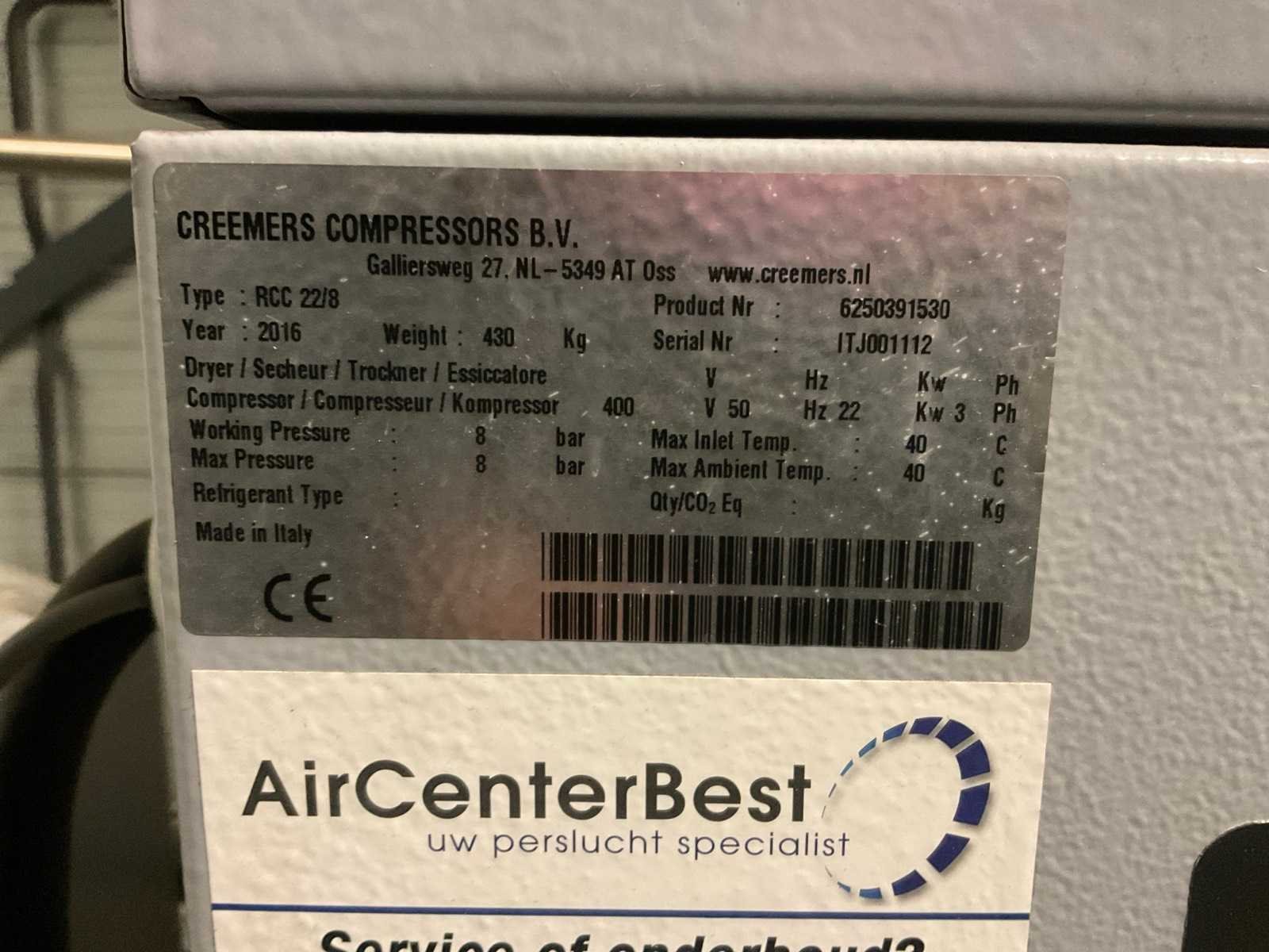2016 creemers rcc 22 freq schroefcompressor, droger, luchtketel