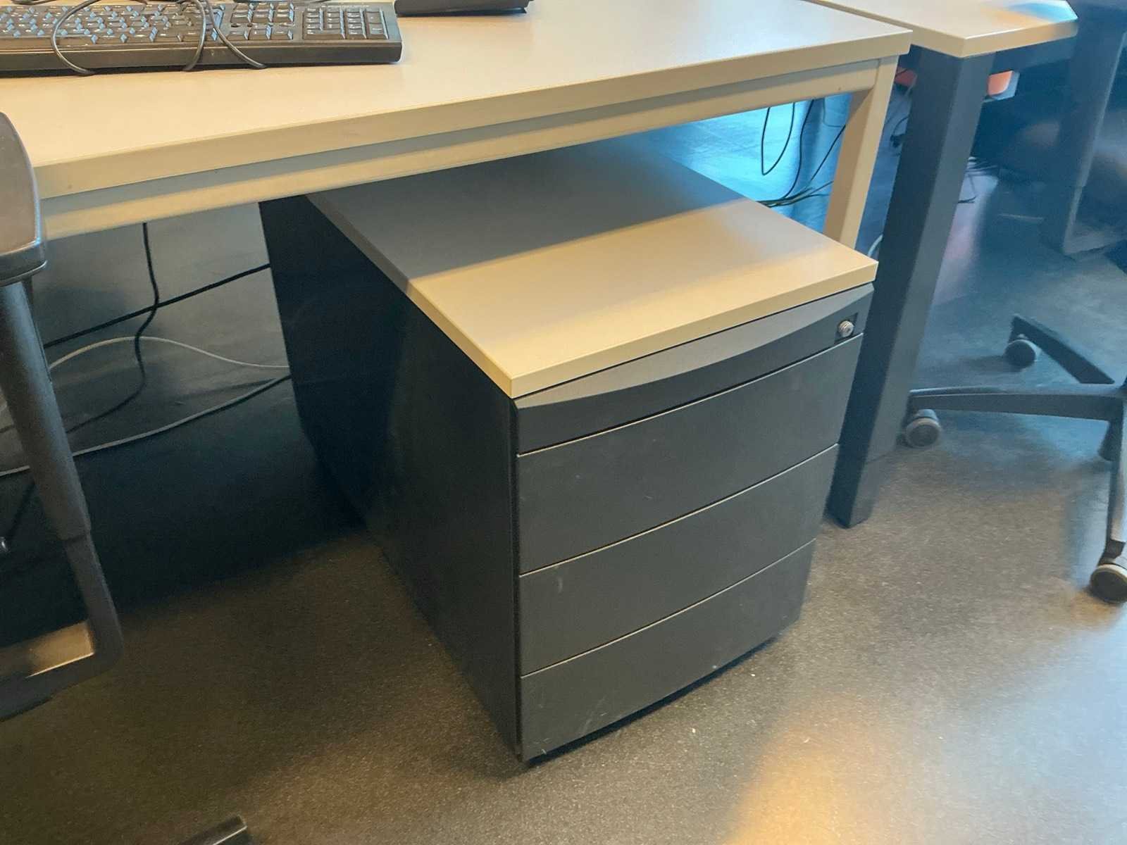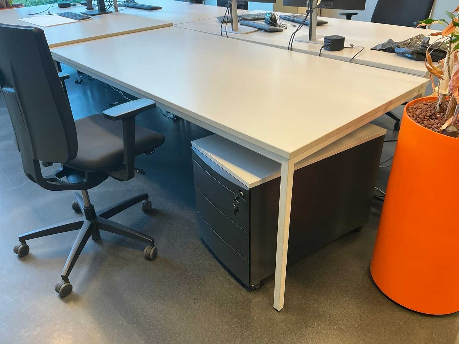 Kavel inclusief 3x Viasit bureaustoel, 4x ladeblok, diverse prullenbakken, 2x Hydrocultuur pot met inhoud. Lengte: 200cm Breedte: 100cm Hoogte: 76cm