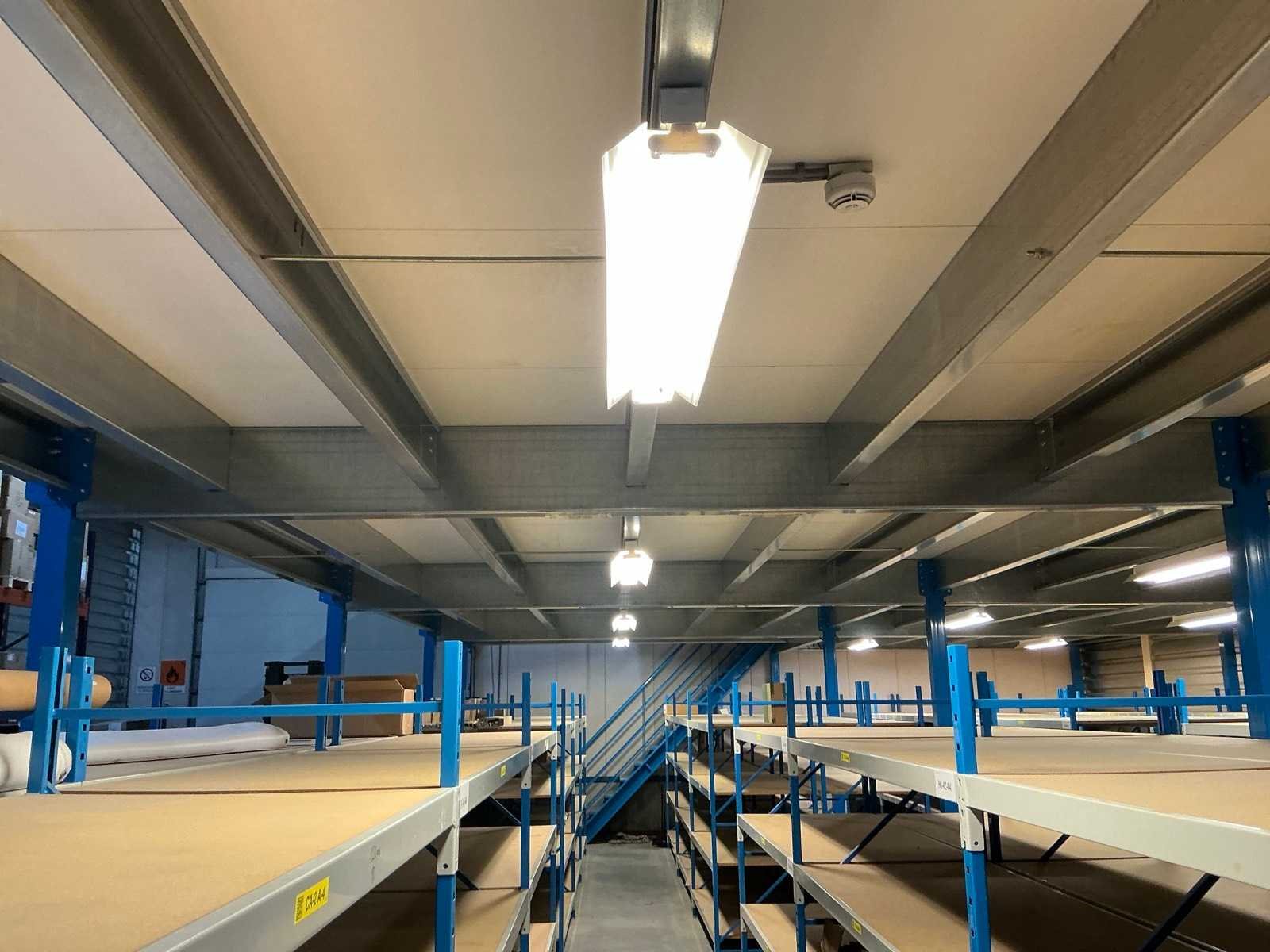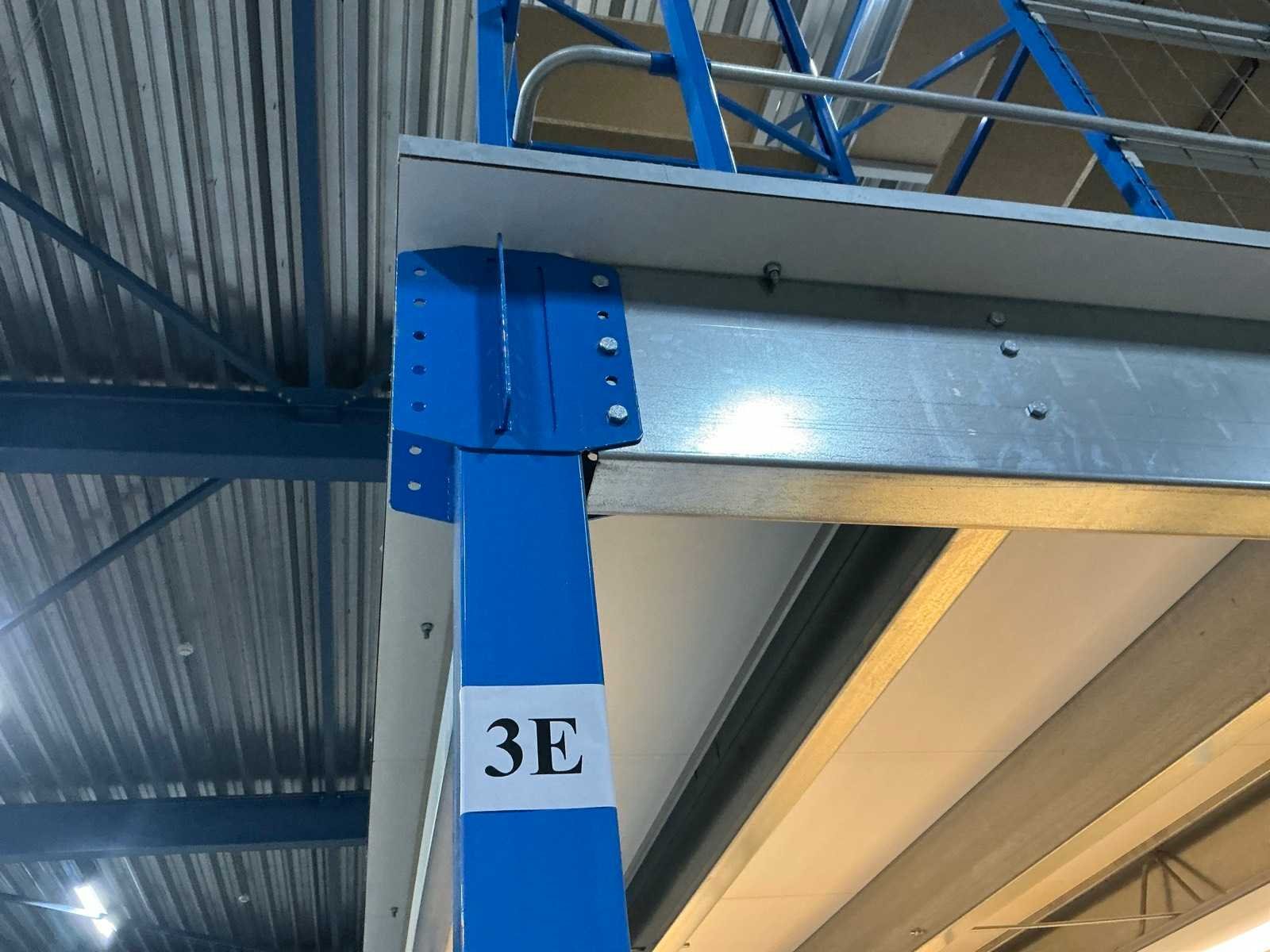 Maximale draaglast 400kg/m2, met verlichting, vaste trap. Stellingen op en onder de vloer niet inbegrepen. Merk: Manorga Bouwjaar: 2011 Totale afmeting L: 15000mm Totale afmeting Breedte: 9500mm Vloerhoogte: 3010mm Houten vloer: true Met trap: true