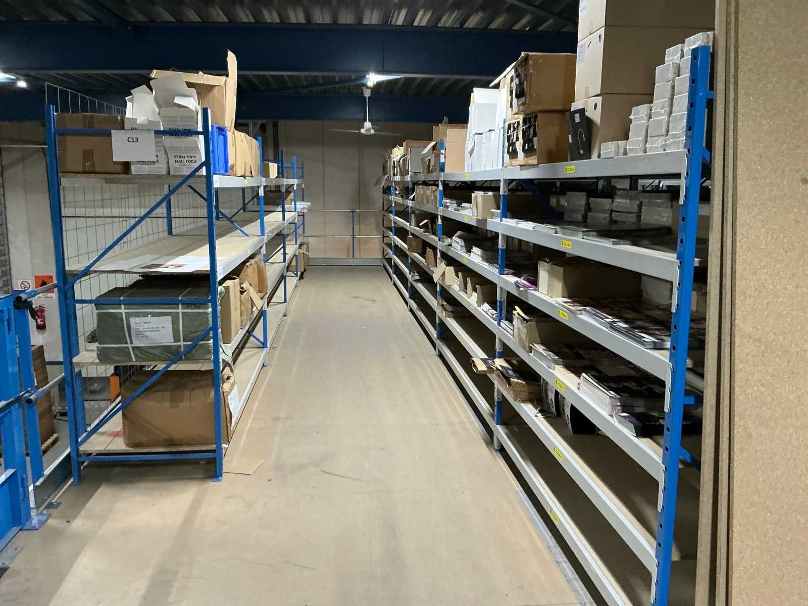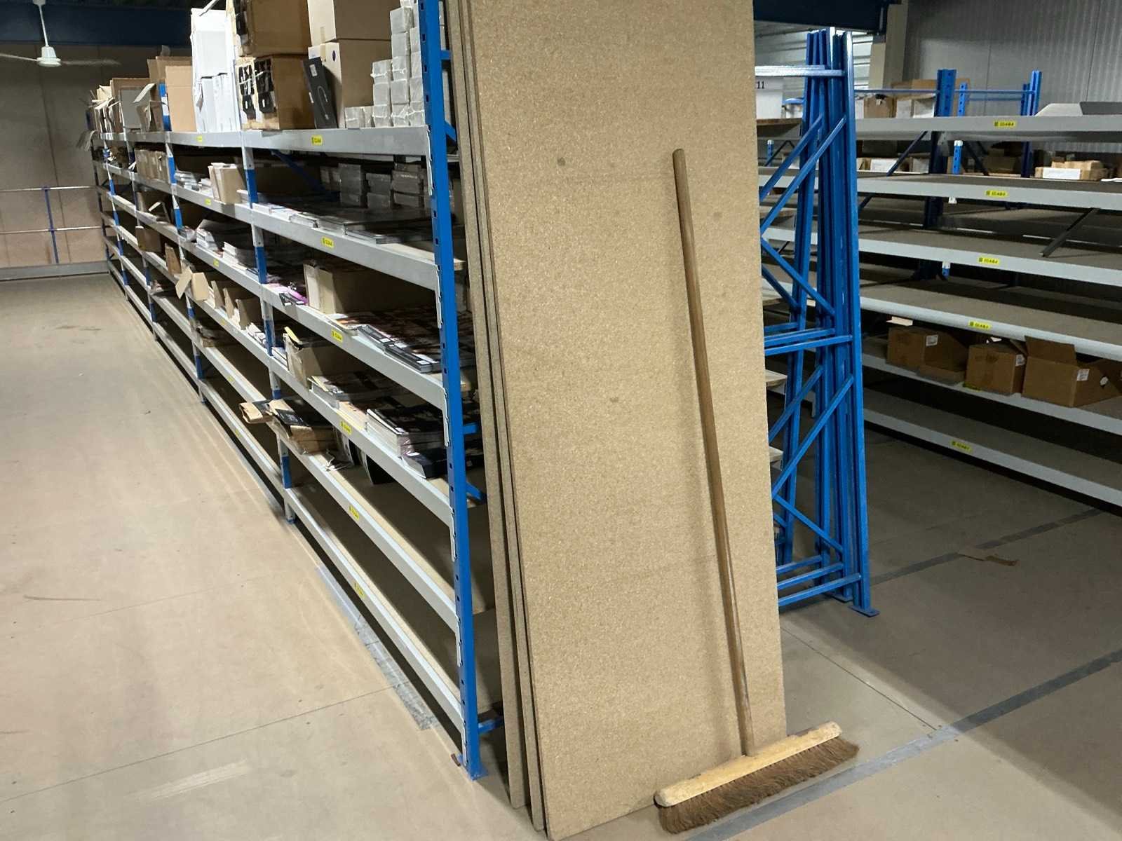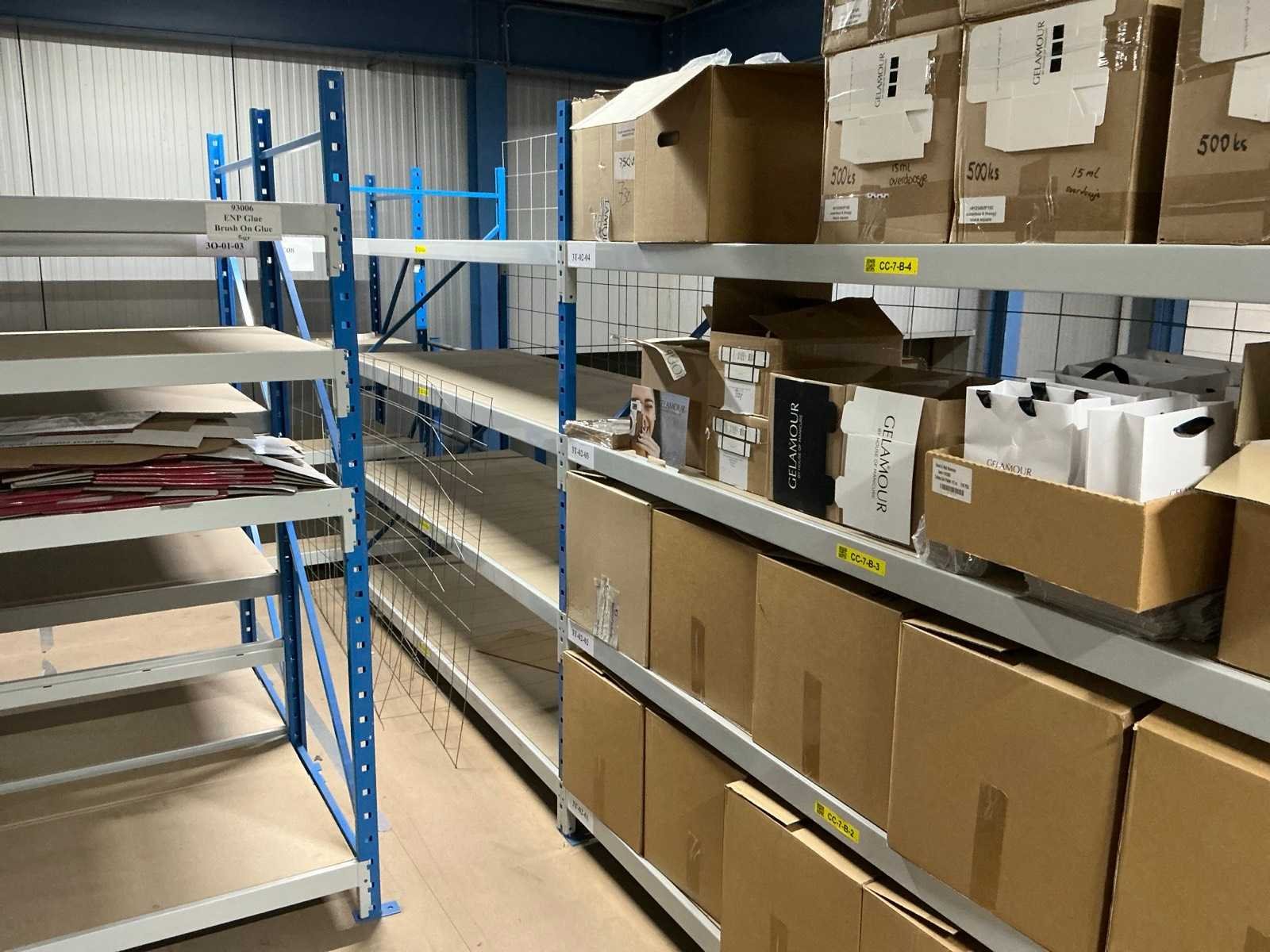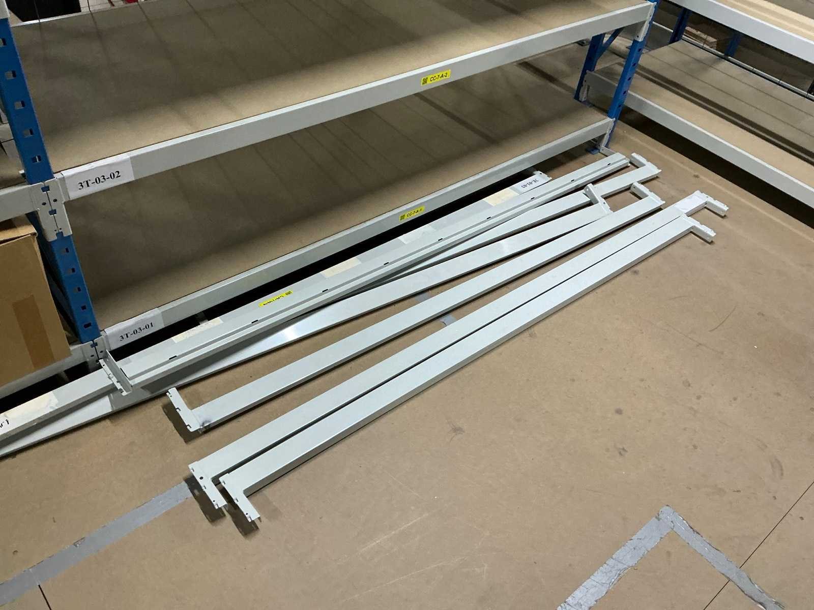 Breedte variërend tussen de 200 en 225cm; Staat op de verdieping van een entresolvloer. Geen lift/heftruck aanwezig. Aantal secties: 37 Sectie afm. b: 2250mm Sectie diepte: 800mm Sectie afm. h: 2000mm Aantal staanders: 42 Aantal liggers: 360 Demontabel: true Materiaal: Metaal