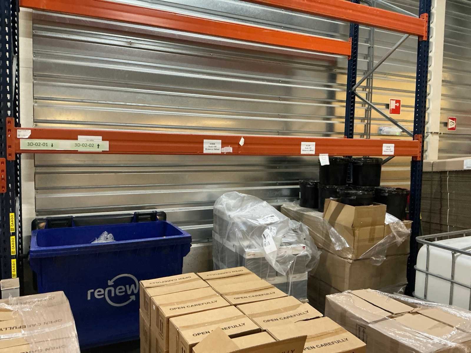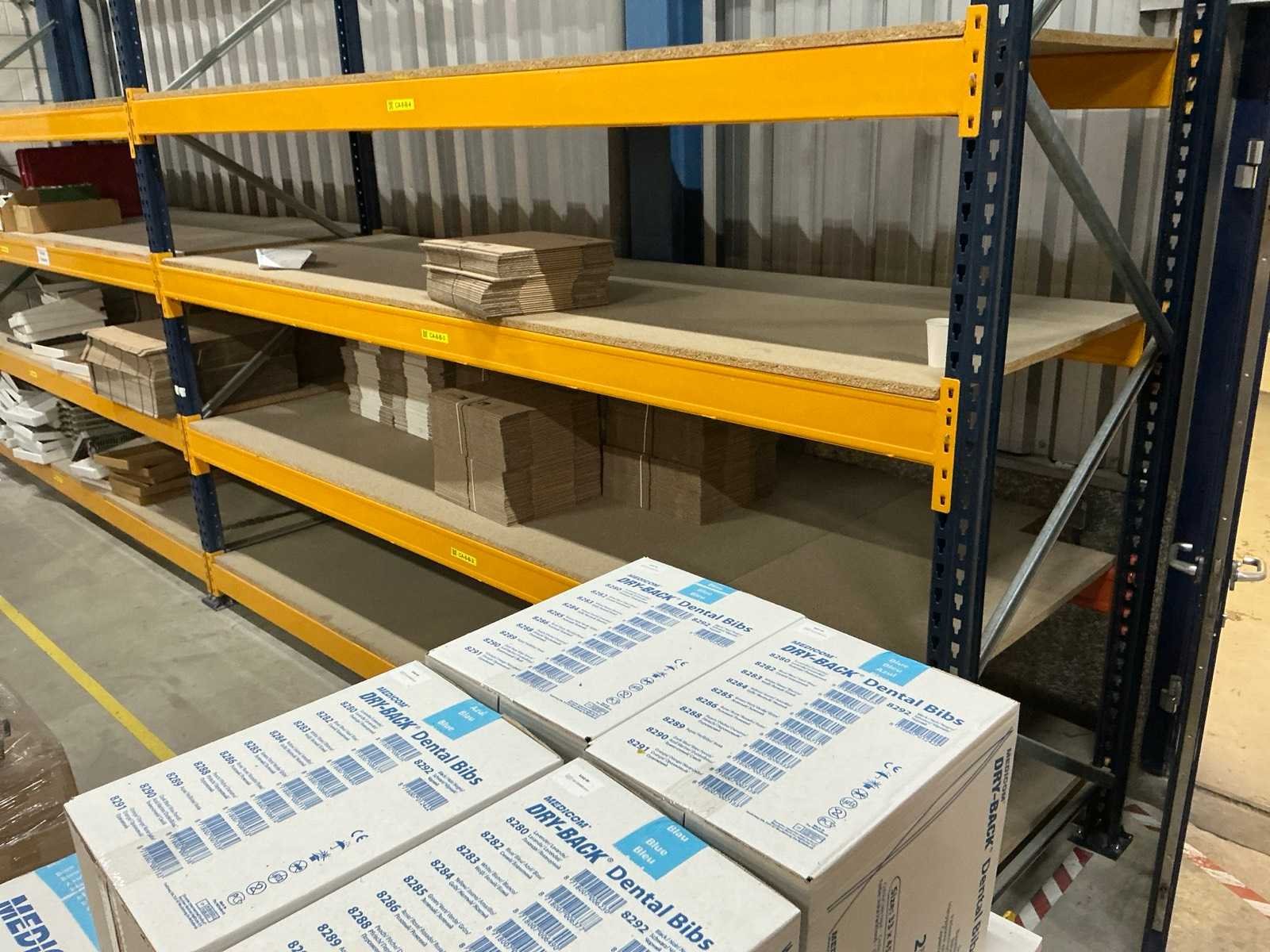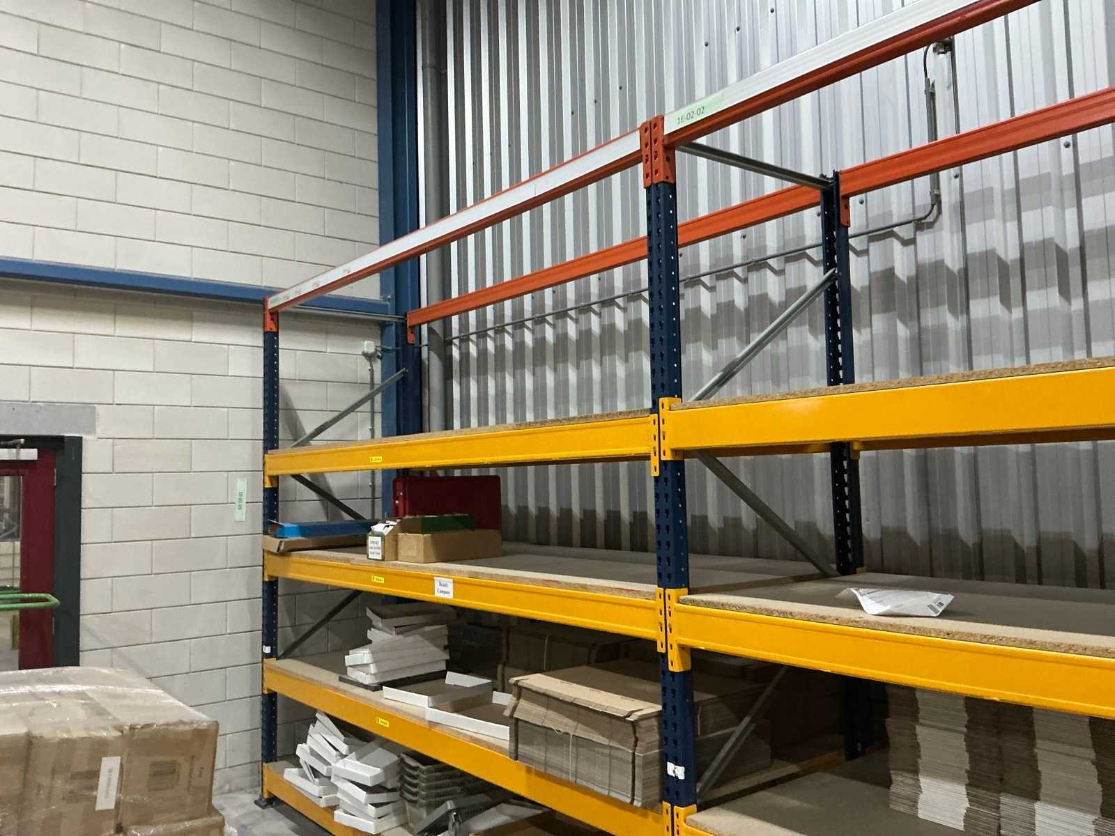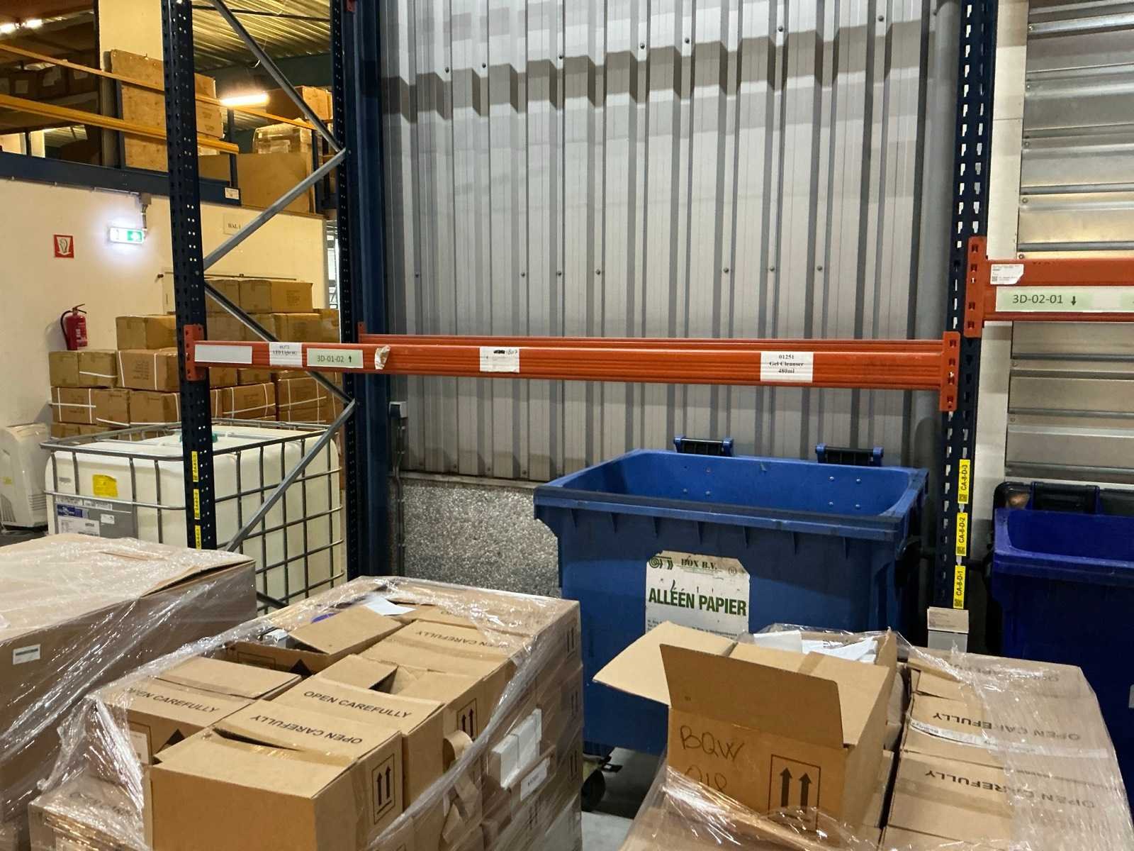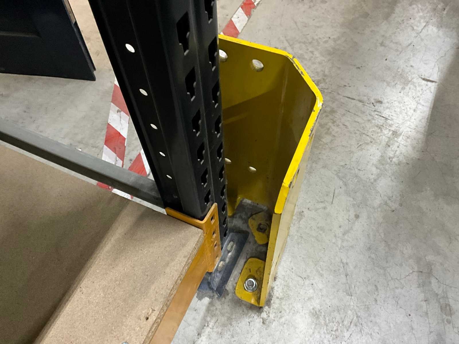 Bestaande uit: Mecalux palletstelling (2 secties) H400xB275/360xD110cm en grootvakstelling (2 secties) H300xB330xD100cm; inclusief aanrijdbeveiliging Merk: Mecalux