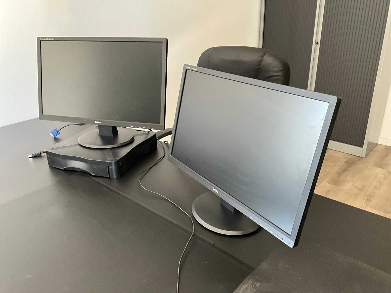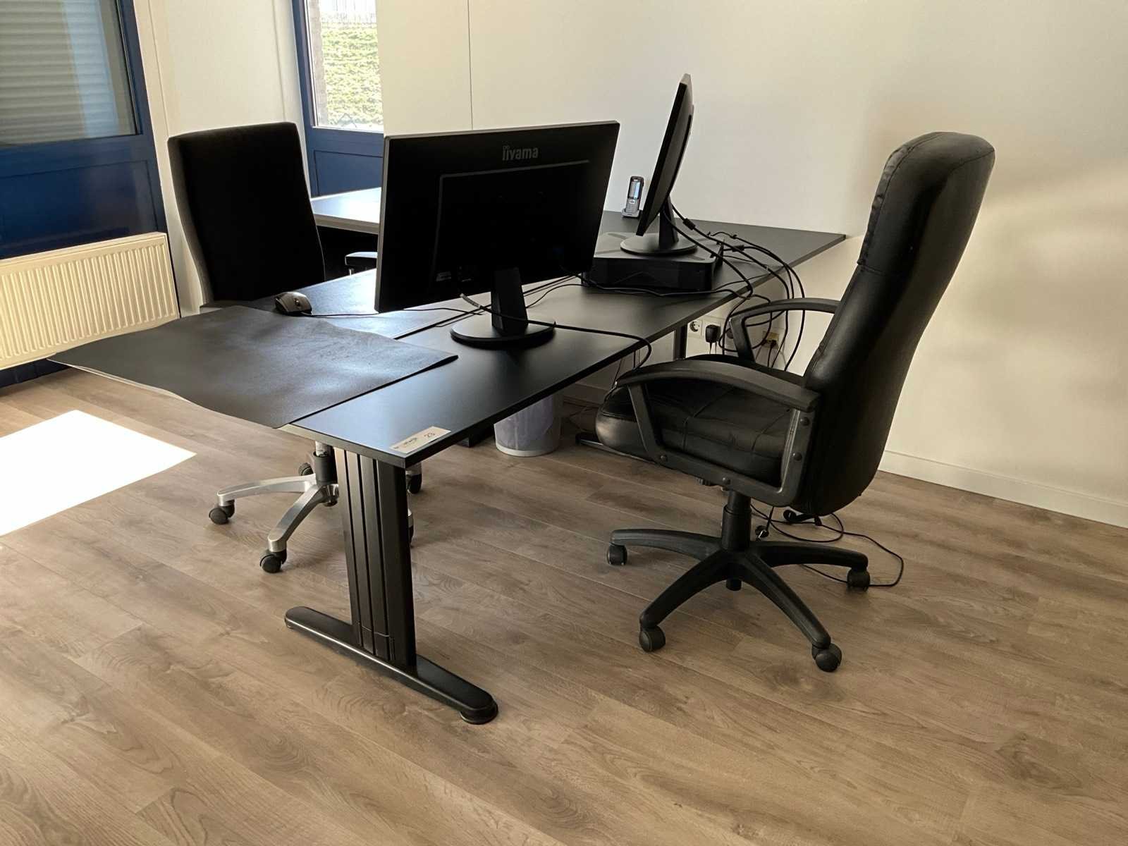 Kavel bestaat uit een tafel met 4 stoelen, 2x archiefkast, 1x bureautafel 204x90cm, 2 bureaustoelen, 2 monitoren met thinclient.