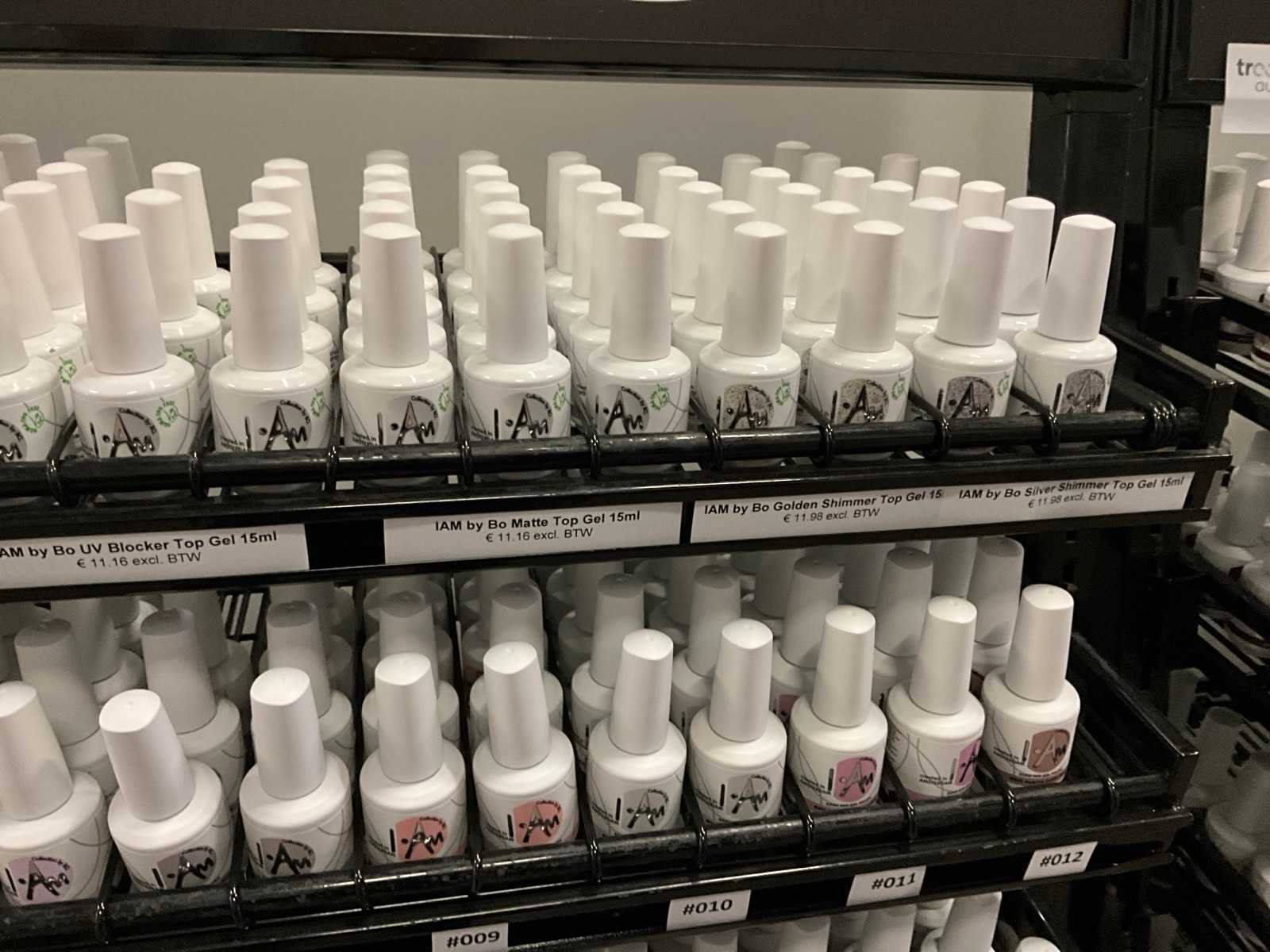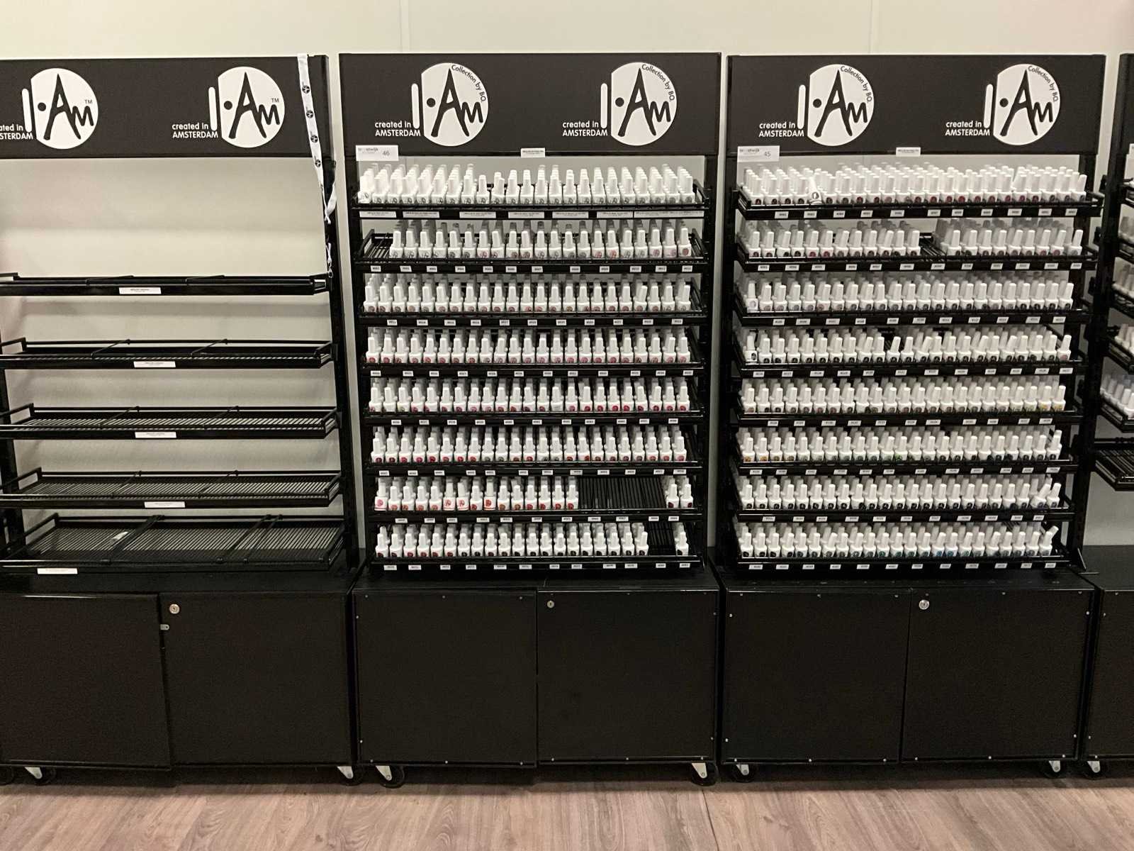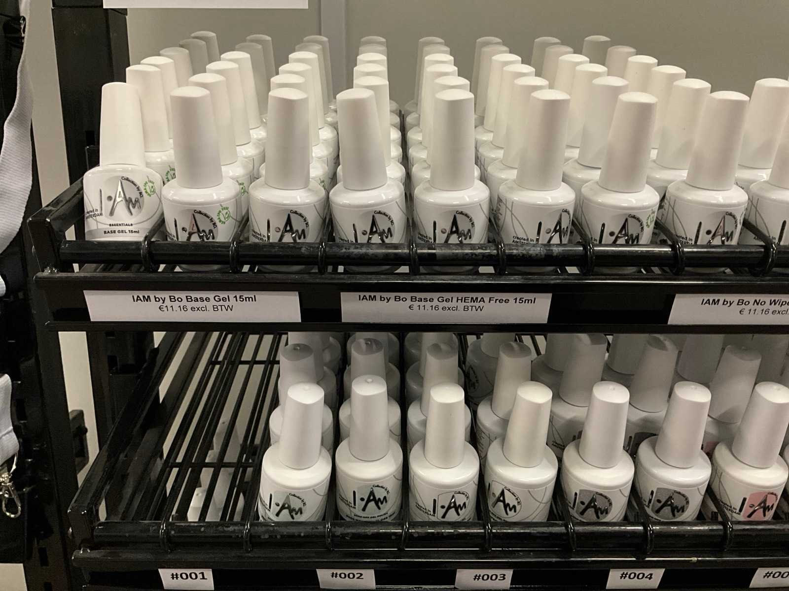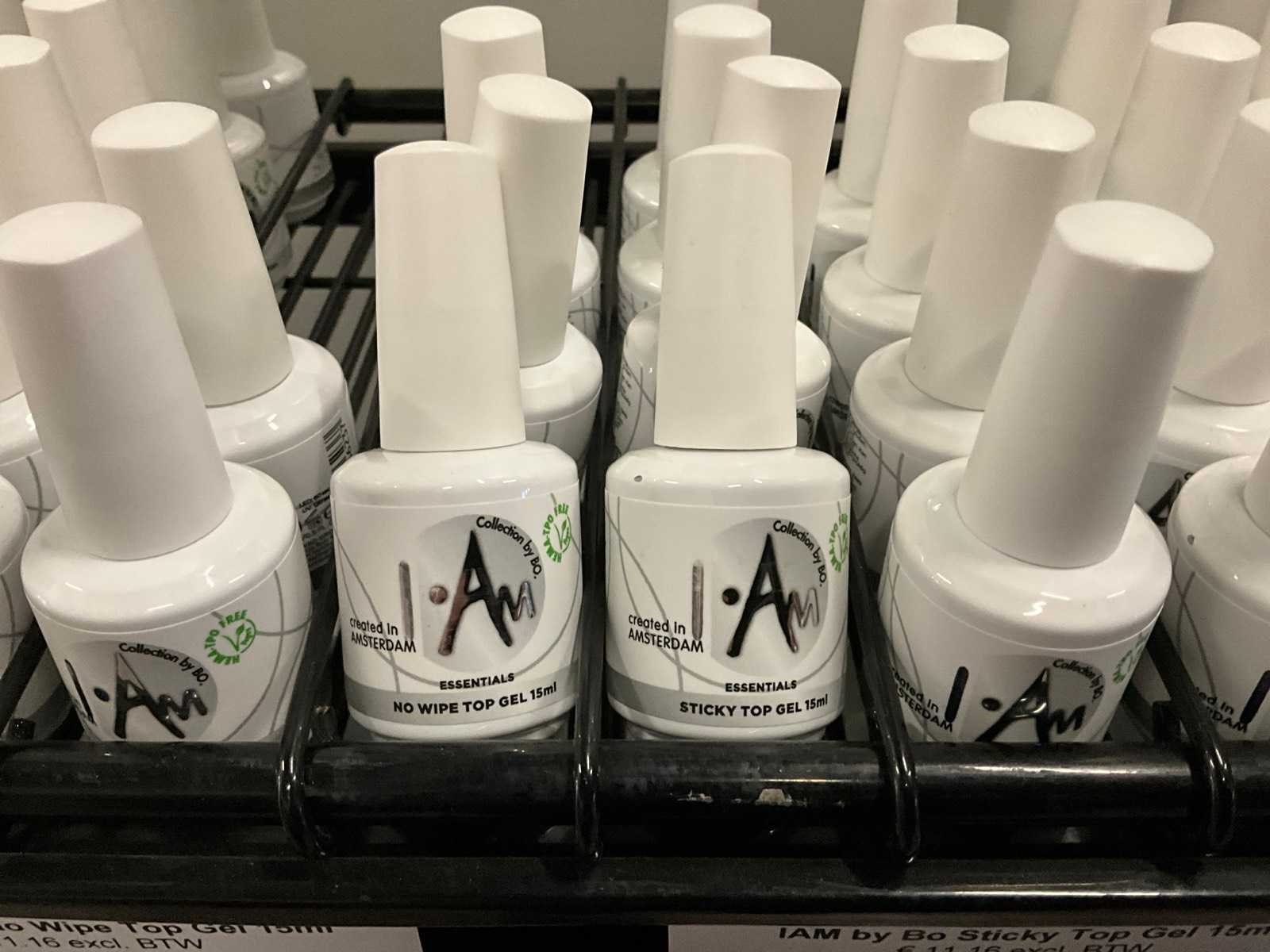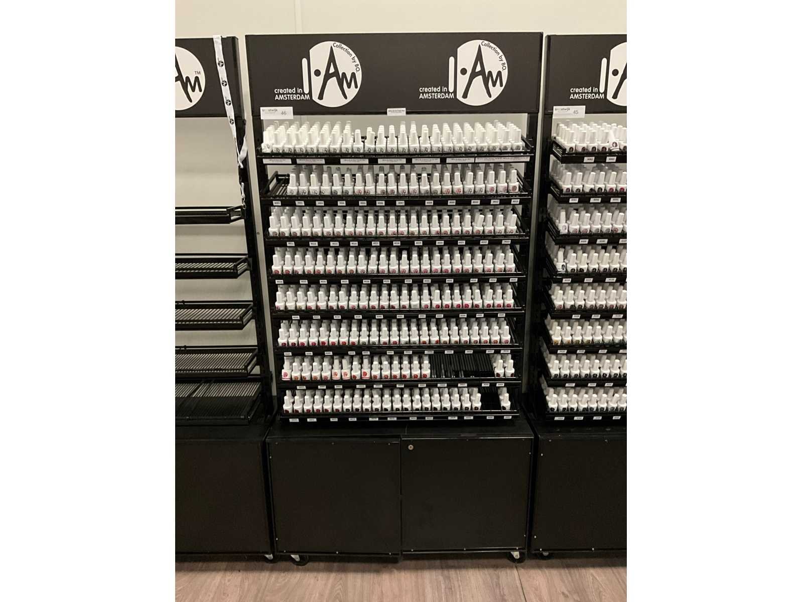 Bestaande uit: I AM By Bo Soak Off 15ml; diverse kleuren; I AM By Bo Essentials base gel/top gel/UV blokker top gel, etc; inclusief verrijdbare stelling H192xB95xD34cm Merk: I AM Kleur: Divers