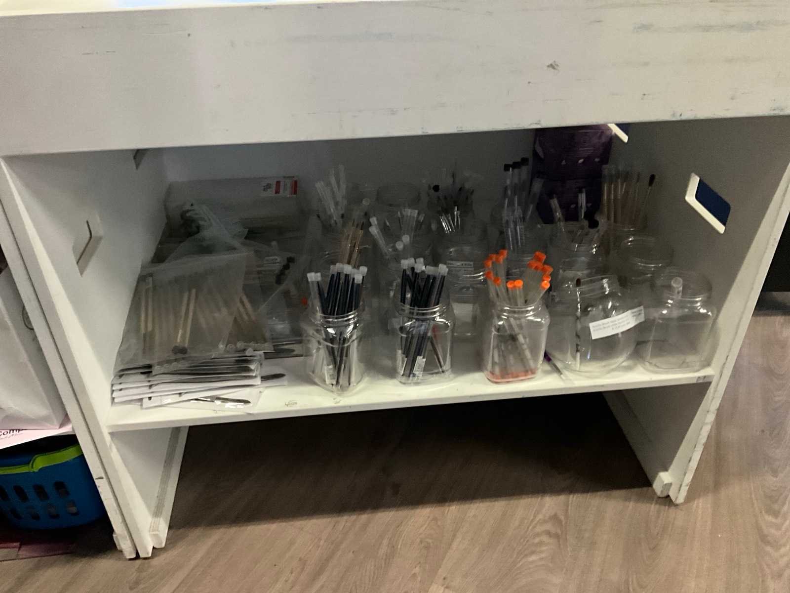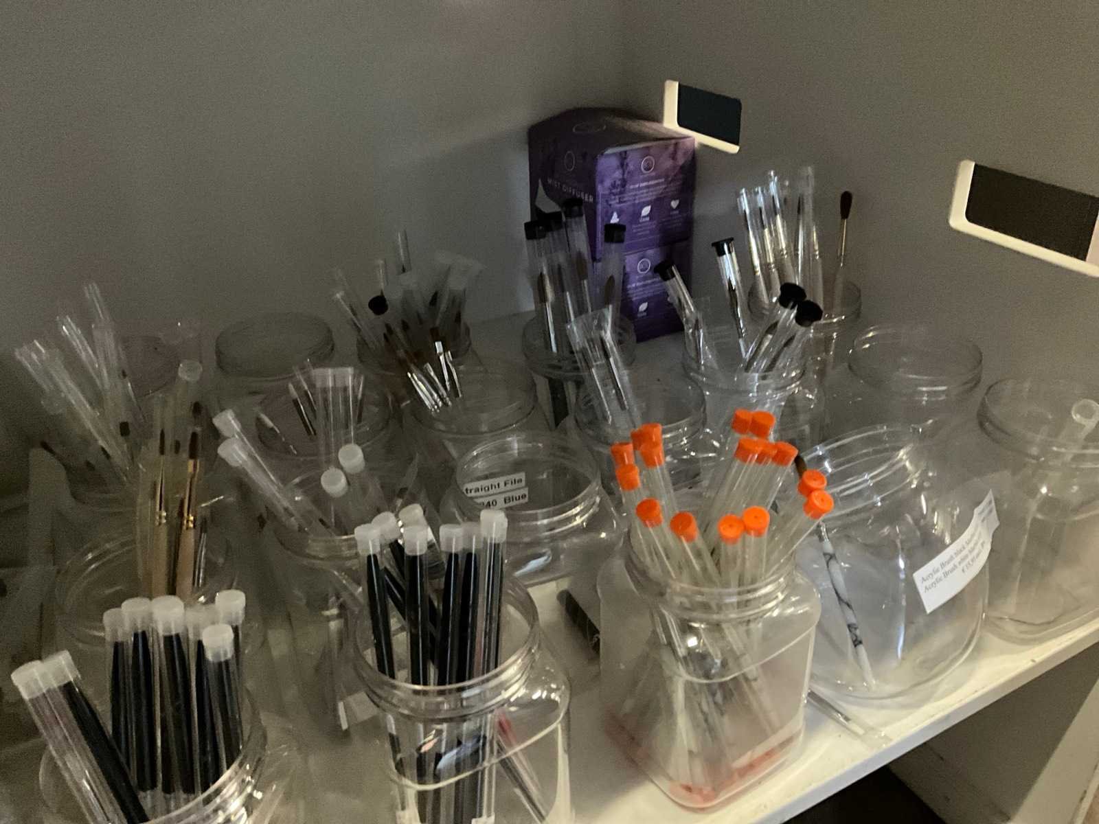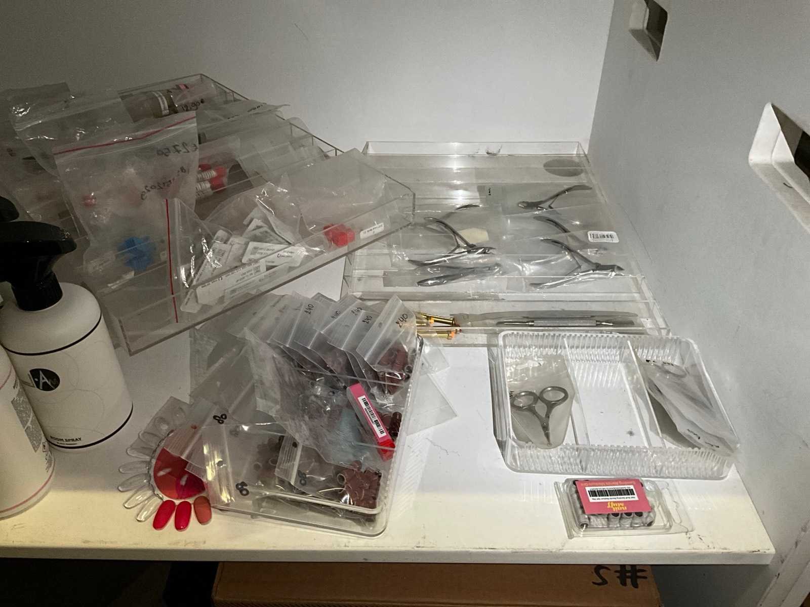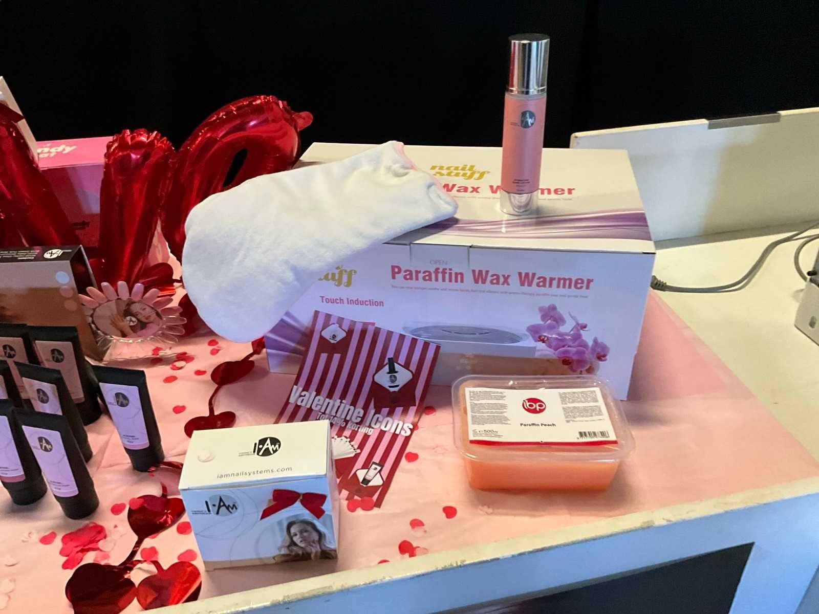 Bestaande uit: alles op balie en vakken erachter 1e: I.Am giftset Black Energy 2e: I.Am gift set Blushing bloom 3e: I.Am treatment kits 4e: I.Am acrylgel 5e: Candy Coat lamp 6e: Nail stuff Paraffine bad 7e: Kwasten 8e: Nagelschaartjes/knippers 9e: Etc