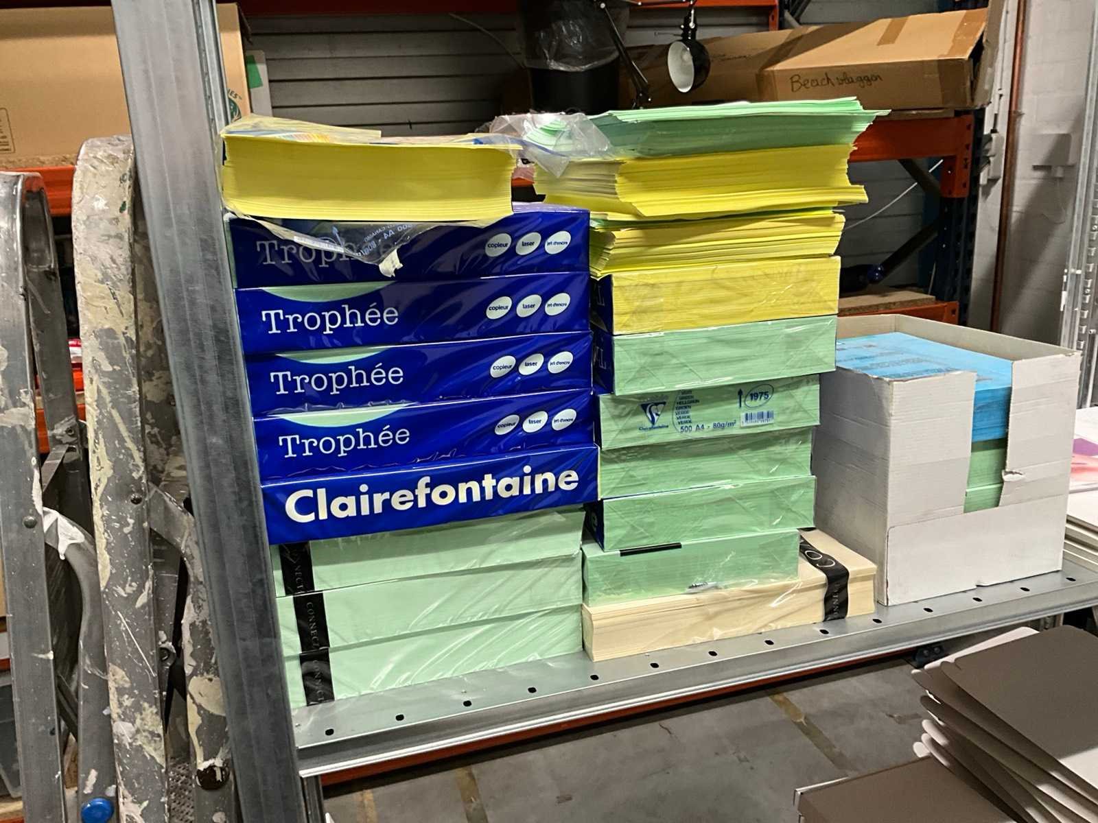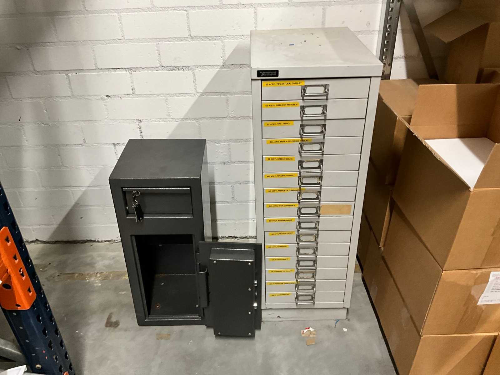 Bestaande uit: Inhoud van de stellingen 1e: Safescan geldtelmachine 2e: GBC ThermaBind T200 3e: Kantinestoelen 4e: Diverse trappen 5e: Printpapier 6e: Titanium baby autostoel 7e: IBD oil 8e: Clean Foam 9e: Monitor 10e: Kluis 11e: Triumph ladekast 12e: Etc