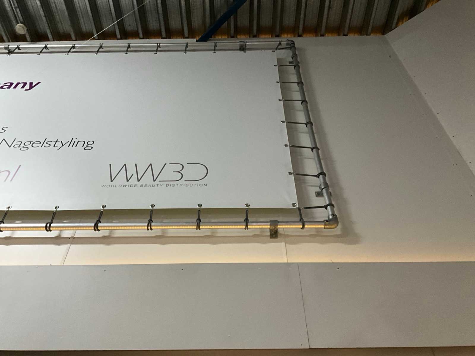 Circa 900x250cm; hangt op circa 3,5 meter hoogte, geen klimmaterialen aanwezig