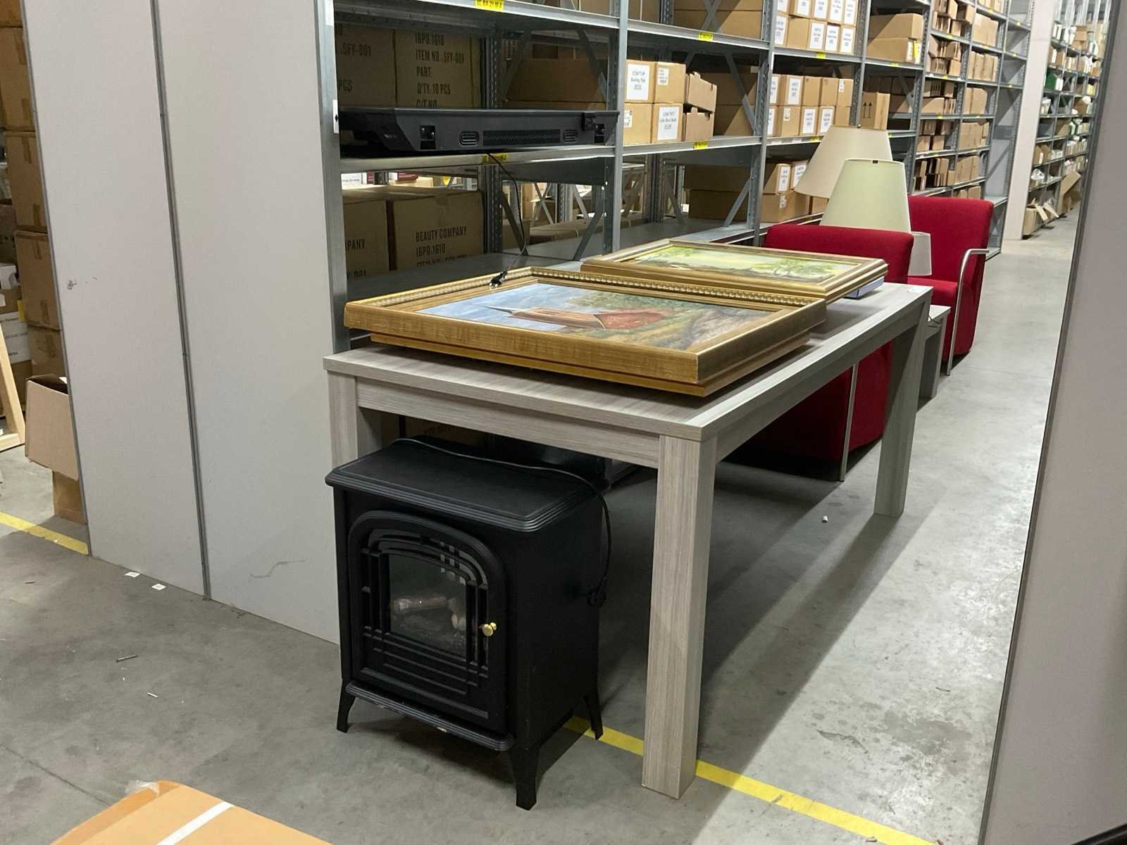 W.o. televisie; elektrische kachel; tafel; stoelen, lampen etc.