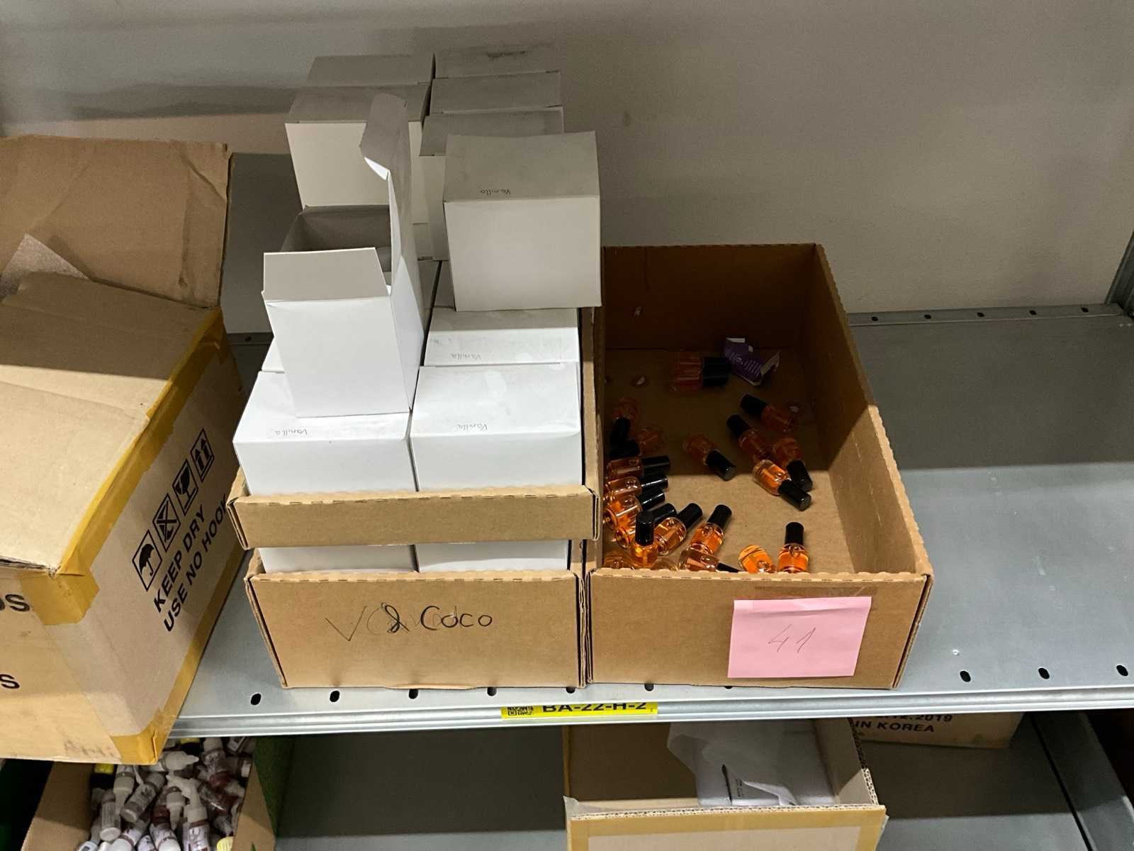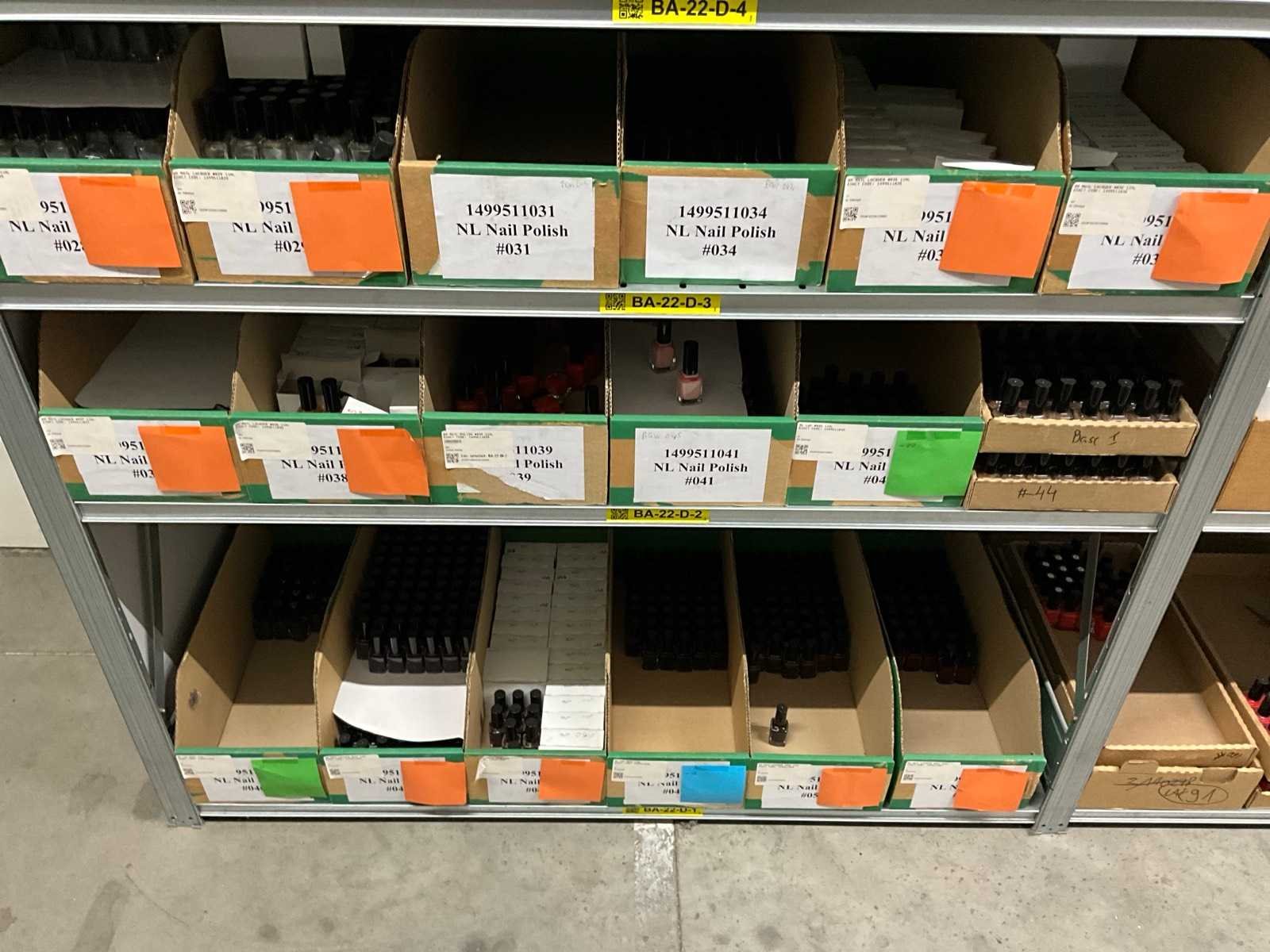 Diverse kleuren, voornamelijk zonder label; bestaande uit: nagellak, armsteunen, spons, etc; uit legbordstelling