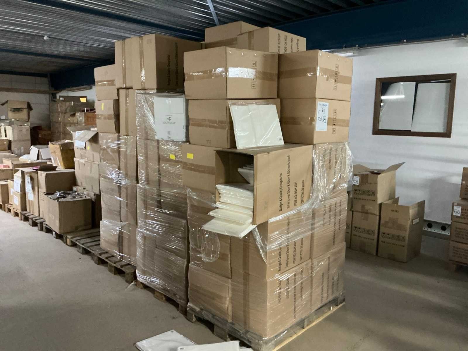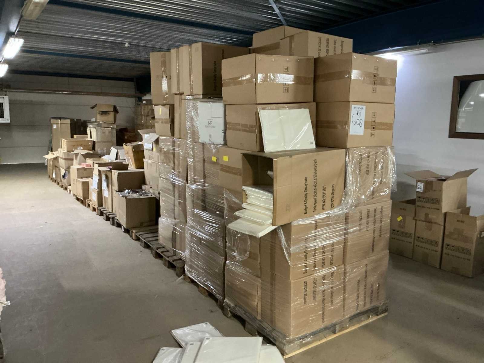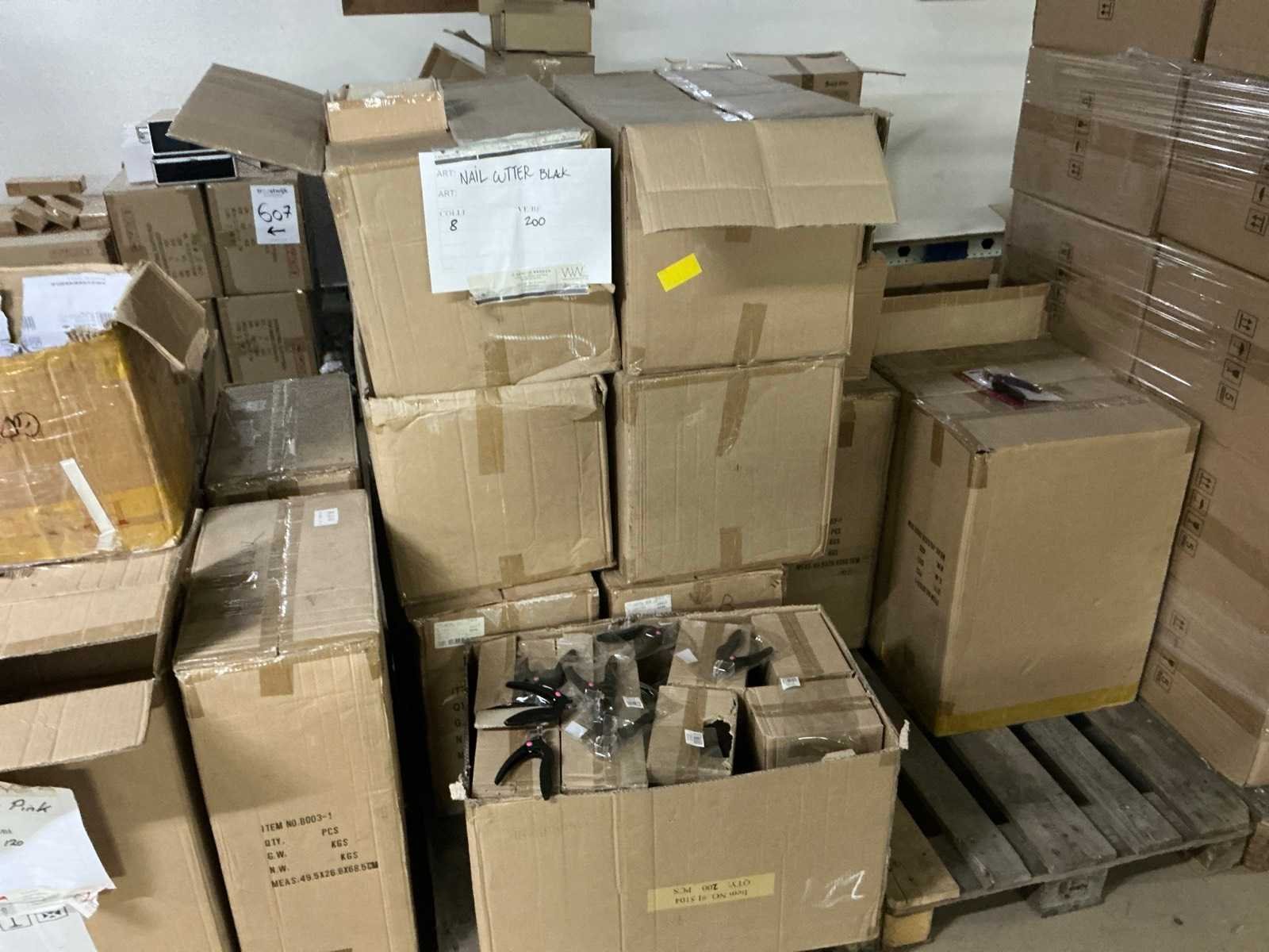 W.o.: cutters, oefenvingers, slippers, handschoenen en werkmaterialen. Op 16 pallets.