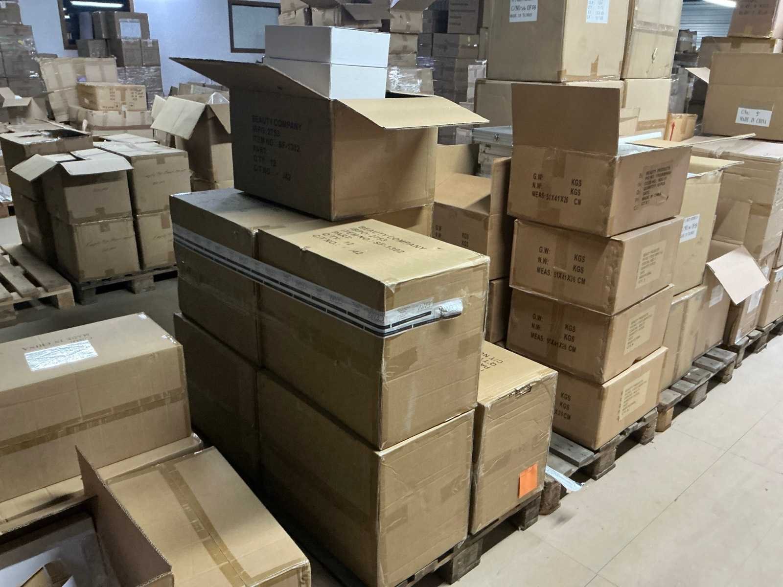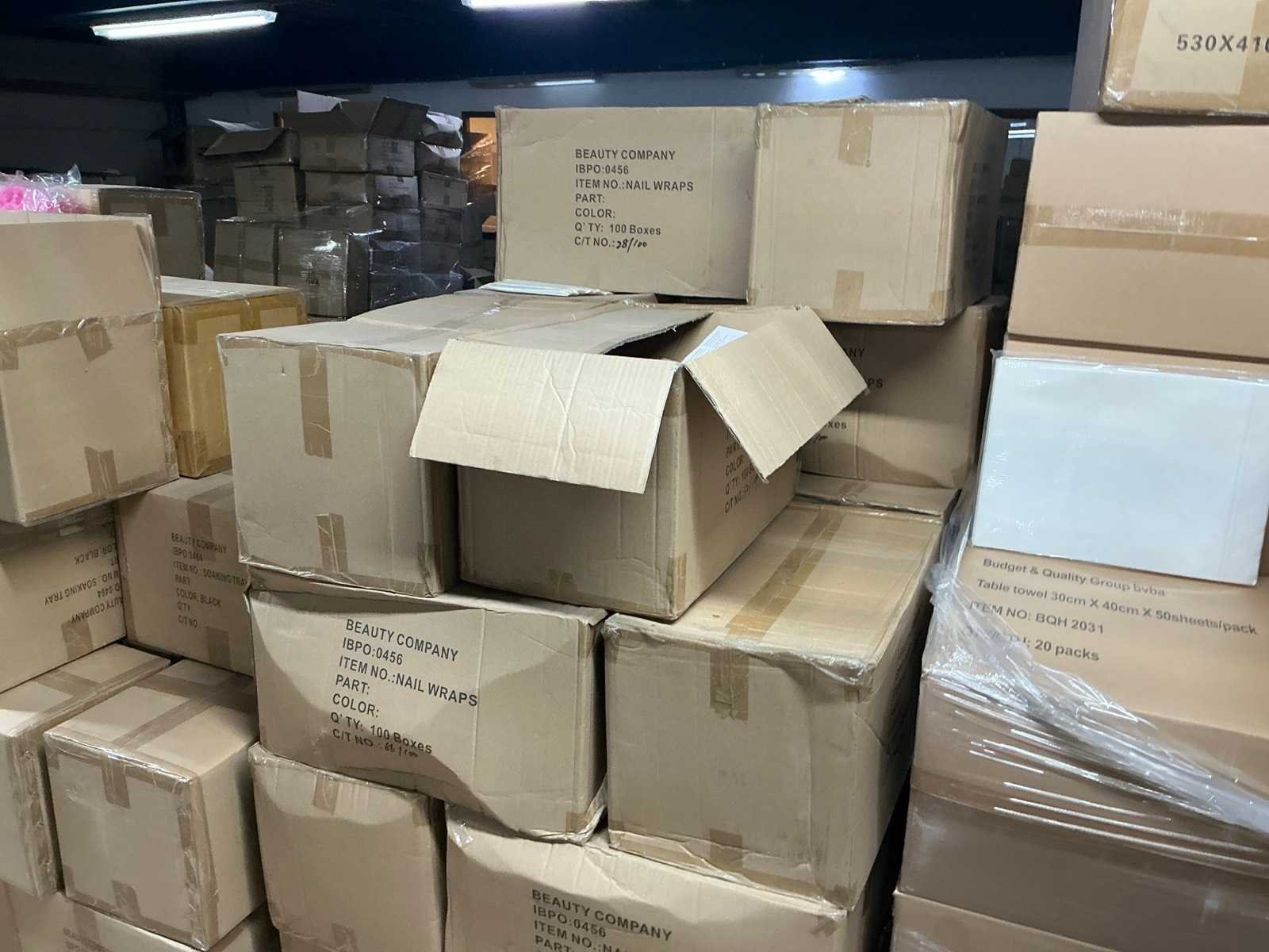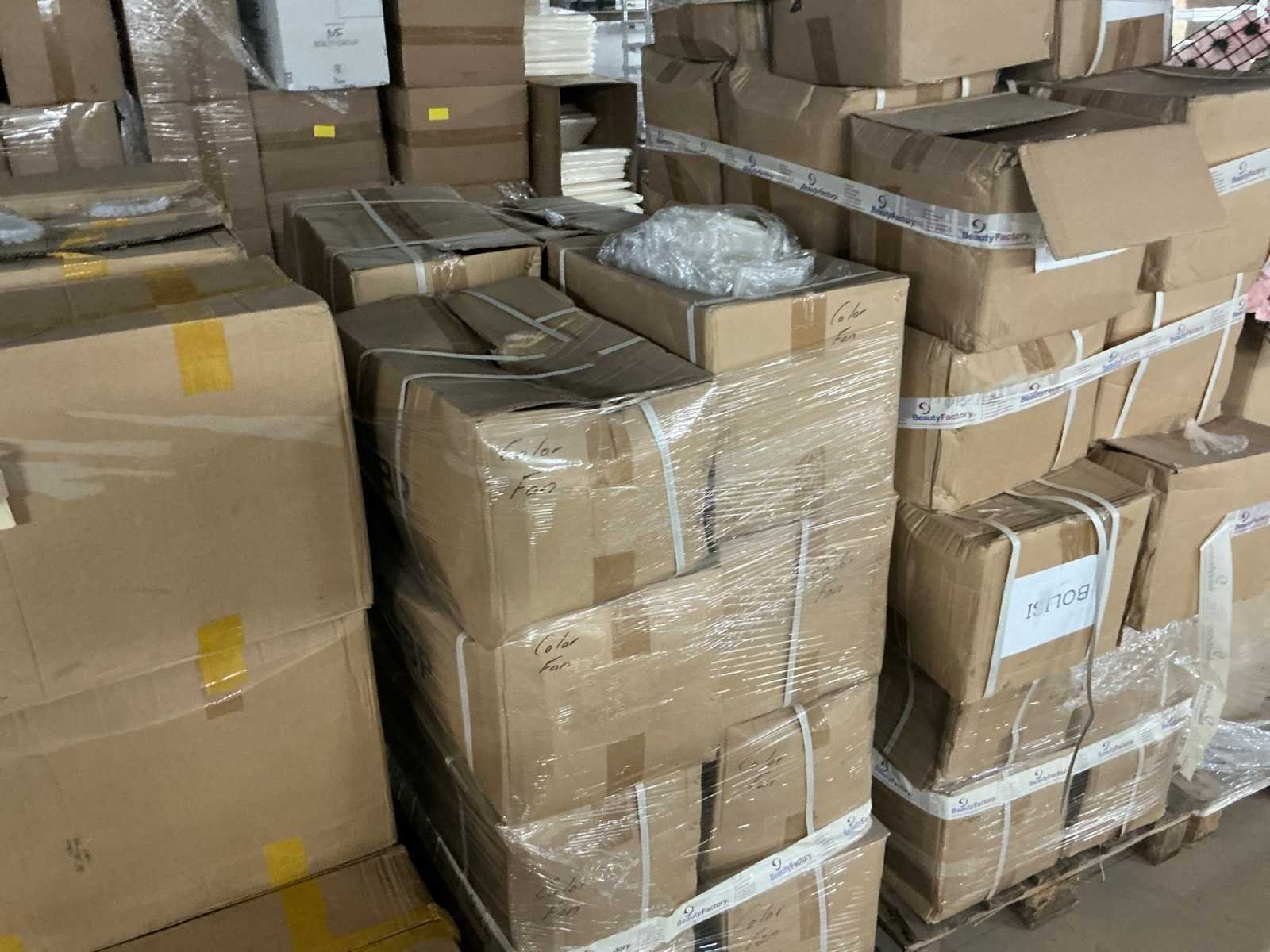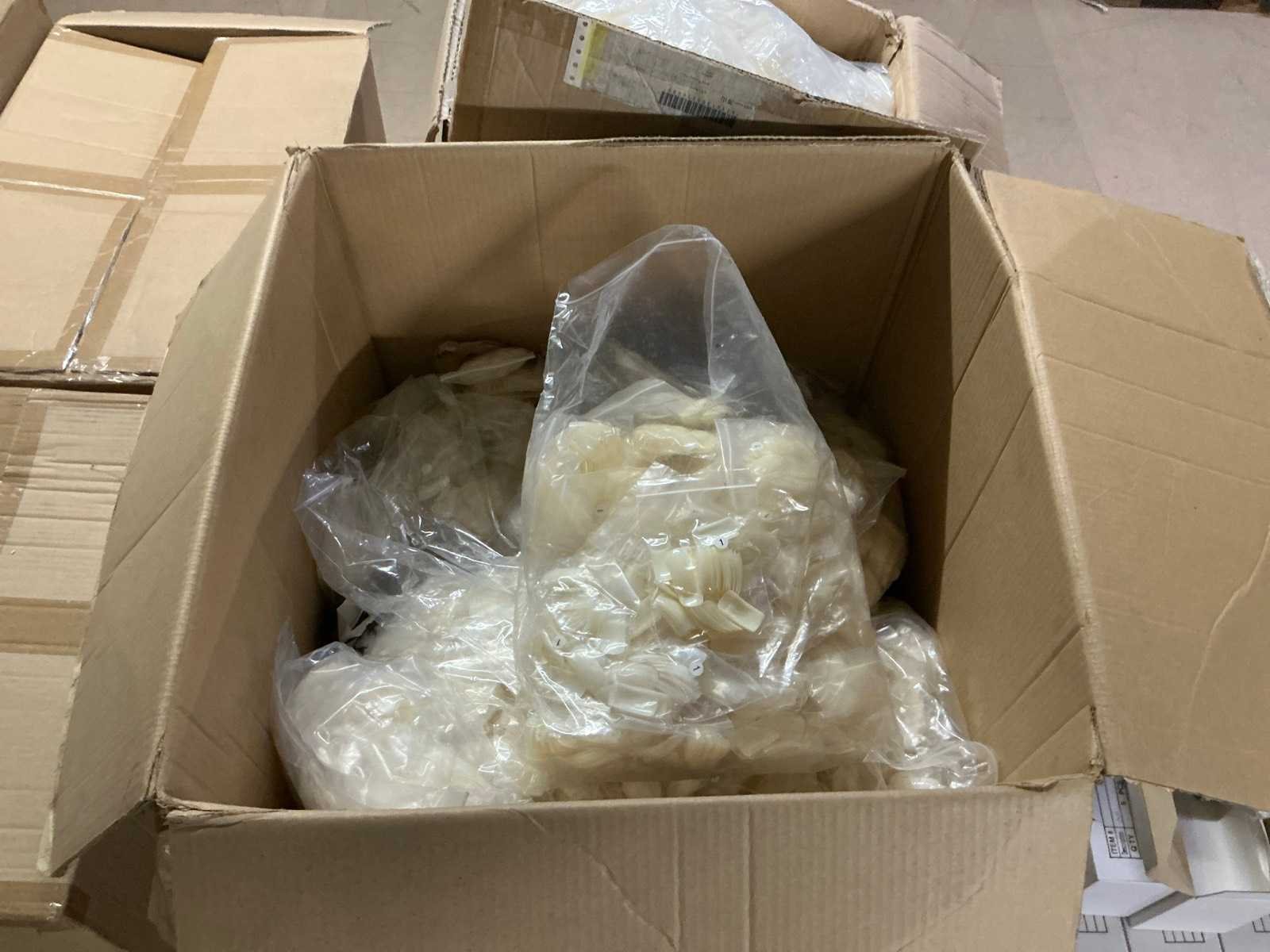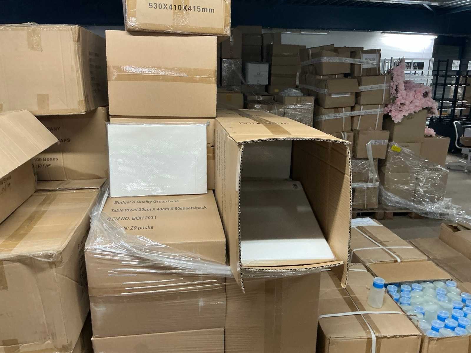W.o.: cutters, oefenvingers, slippers, handschoenen en werkmaterialen. Op 27 pallets