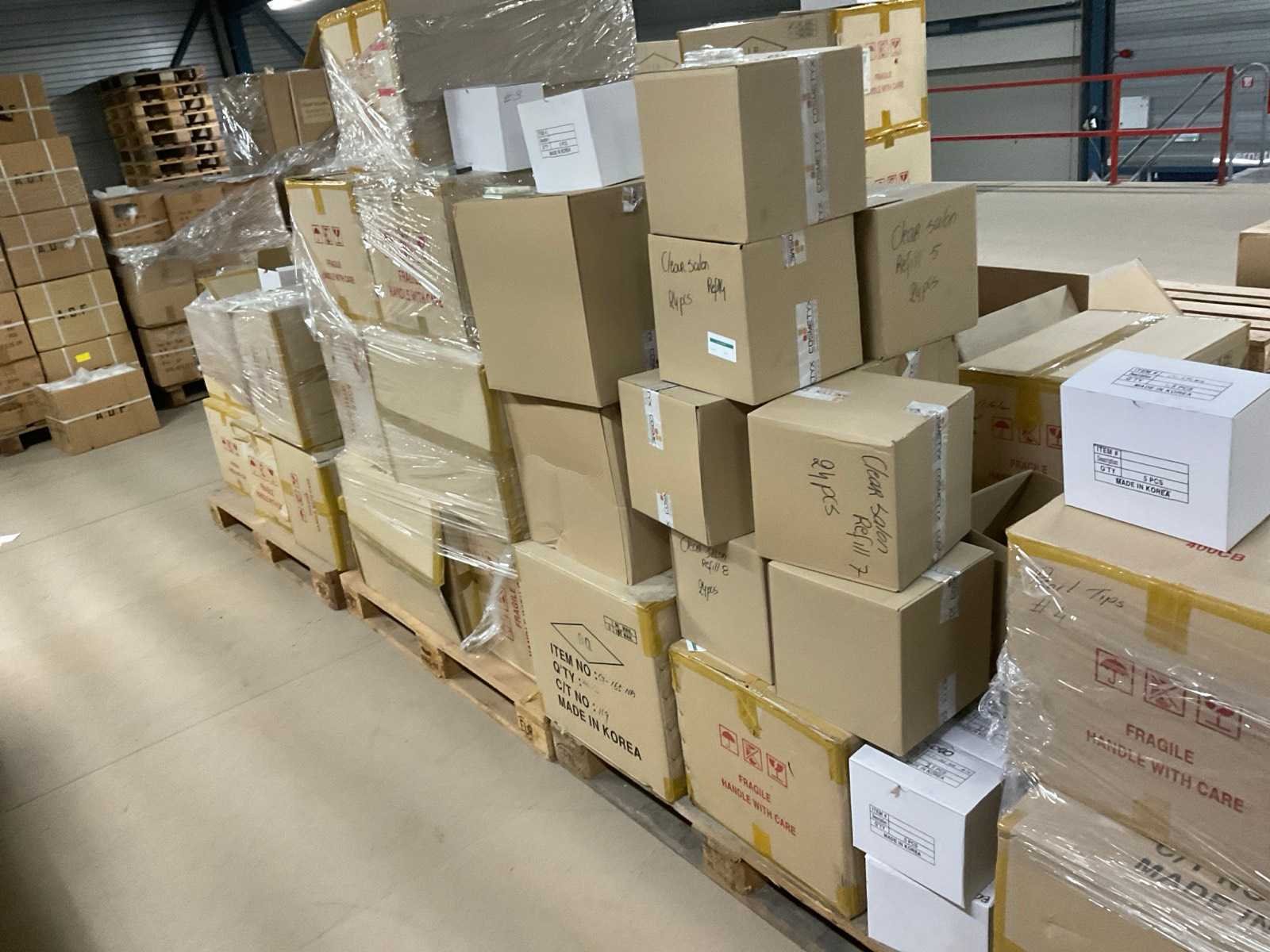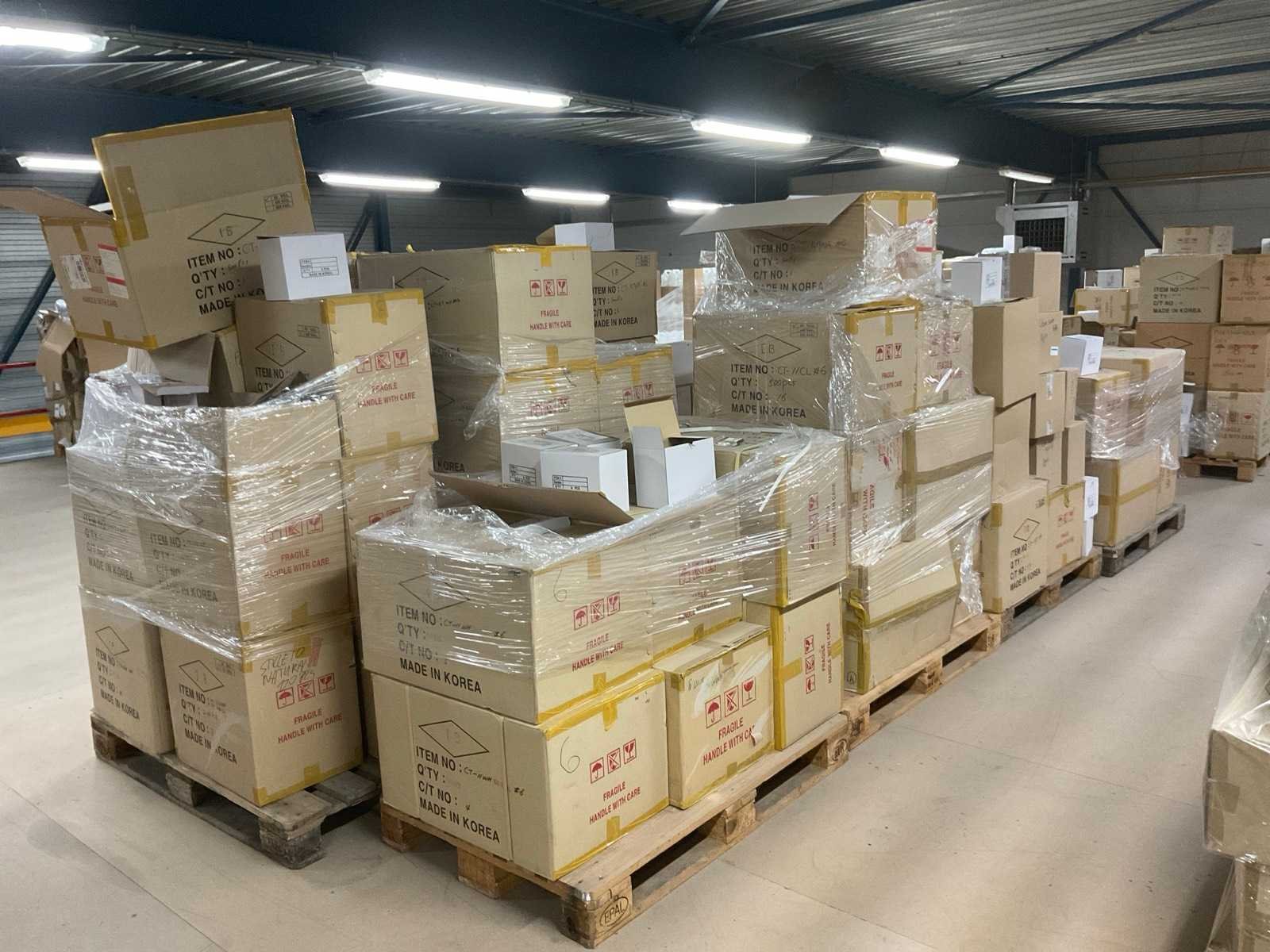 Diverse kleuren, vormen en typen. Op 10 europallets.