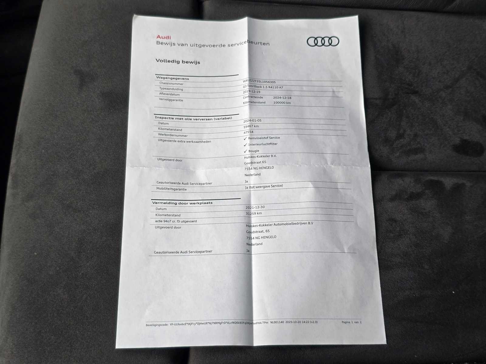 Let op! Voor Nederlandse kopers en kopers van buiten de EU komt de Rest-BPM bovenop het biedbedrag. De Rest-BPM bedraagt € 2086 en is niet inbegrepen in de totaalprijs bij het bieden. De totaalprijs is dus exclusief BPM. Deze regeling geldt uitsluitend voor kopers binnen Nederland en kopers buiten de EU. Voor kopers binnen de EU wordt een borg gevraagd die gelijk is aan de BPM. De Rest-BPM wordt na de correcte registratie van het voertuig in het vestigingsland binnen de EU per bank aan de koper teruggestort. Voor verdere informatie over BPM kunt u de veilinginformatie raadplegen, welke bovenaan de homepage van onze website te vinden is. Indien u vragen heeft over de BPM-regeling, kunt u contact opnemen met onze klantenservice en/of de belastingdienst. Kenteken: J-690-TB Merk: Audi Model: Q3 Sportback Type: 35 TFSI Pro Line S Bouwjaar: 2020 Afgelezen kilometerstand: 72989km Cilinderinhoud: 1498cc Vermogen (kW): 110kW Brandstof: Hybride Benzine Chassisnummer: WAUZZZF35L1056305 Laadvermogen: 0kg NAP status: Geen oordeel Datum eerste toelating: 2020-01-21 Datum eerste toelating (NL): 2020-10-14 APK vervaldatum: 2026-01-21 Vermogen (pk): 150hp Aandrijving: Start en rijdt Aantal zitplaatsen: 5 Kleur: grijs Transmissie: Automaat Emissieklasse: 6 Aantal deuren: 4 Aantal sleutels: 1 Ledig gewicht: 1505kg Bruto BPM (NL): 5932€ Aantal cilinders: 4 Carrosserie: hatchback Carfax Link: https://was.carfax.eu/v0/api/ccdid/5100016408/svc/201/vinreg/J690TB/checksum/eyJhbGciOiJIUzI1NiIsInR5cCI6IkpXVCJ9.eyJleHAiOjE3Njc2MjQyNDJ9.1TPaATR_8BUzbaViNFPIswRONrLjXpQyTI-YPMj4U8w Start en rijdt: Start and drive startinformatie : Start en rijdt