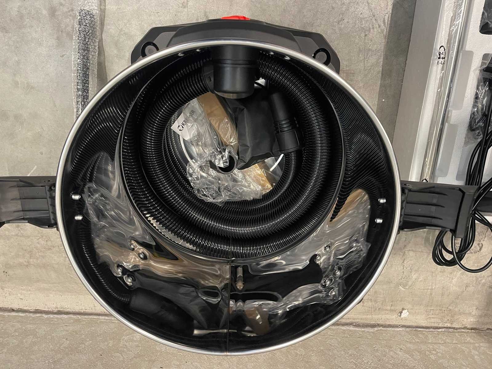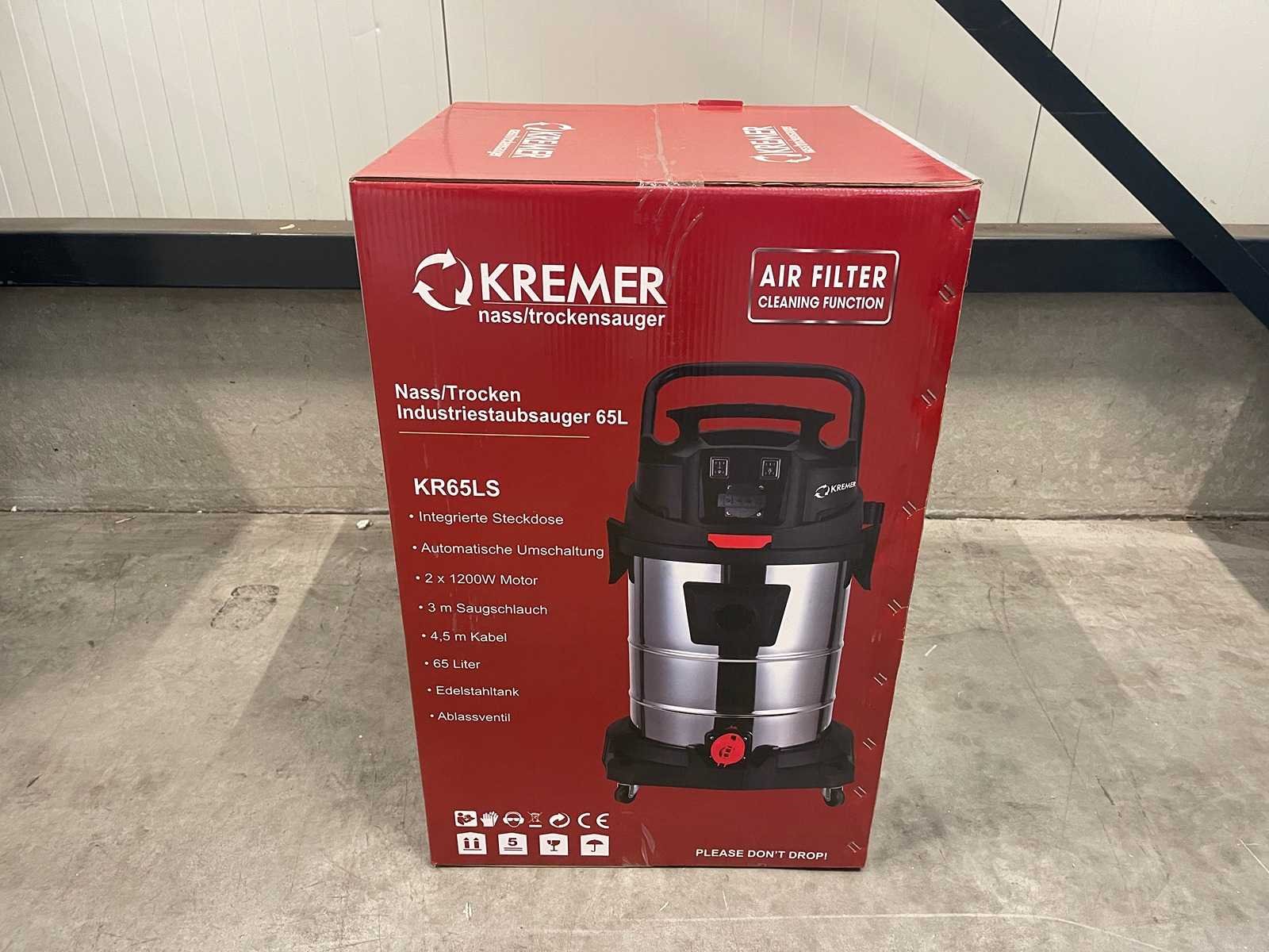 Voorzien van: 4,5 meter kabel 3 mtr zuigslang Nat- en droog stofzuiger Inhoud: 65 Liter RVS Ketel 2 Motoren onafhankelijk Vermogen: 2000W Klopfunctie Blaasfunctie Stopcontact Externe machine start Aflaat dop 4 Zwenkwielen Staat: Ongebruikt in doos Afmeting transport verpakking: 550 x 550 x 850 mm (l x b x h) Gewicht: 18 kg Bezorgtermijn 7 dagen Merk: Kremer Type: KR65LS Zakloos: true Nat/droog zuiger: true