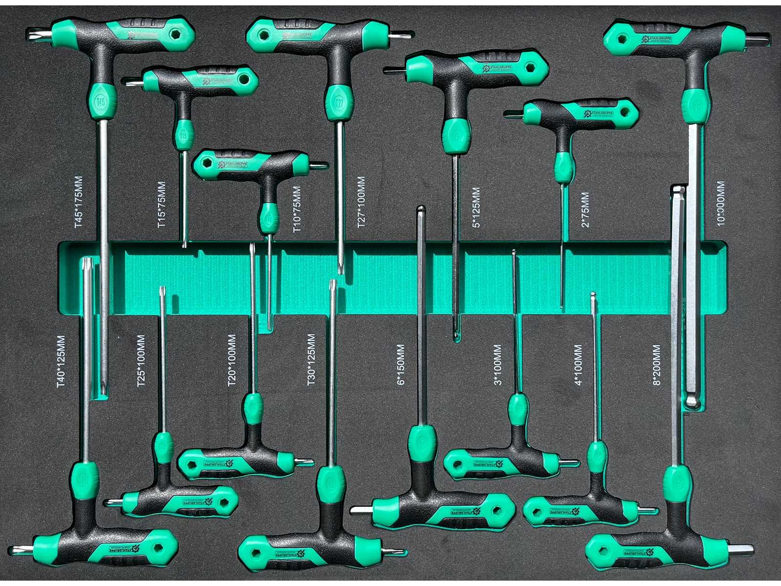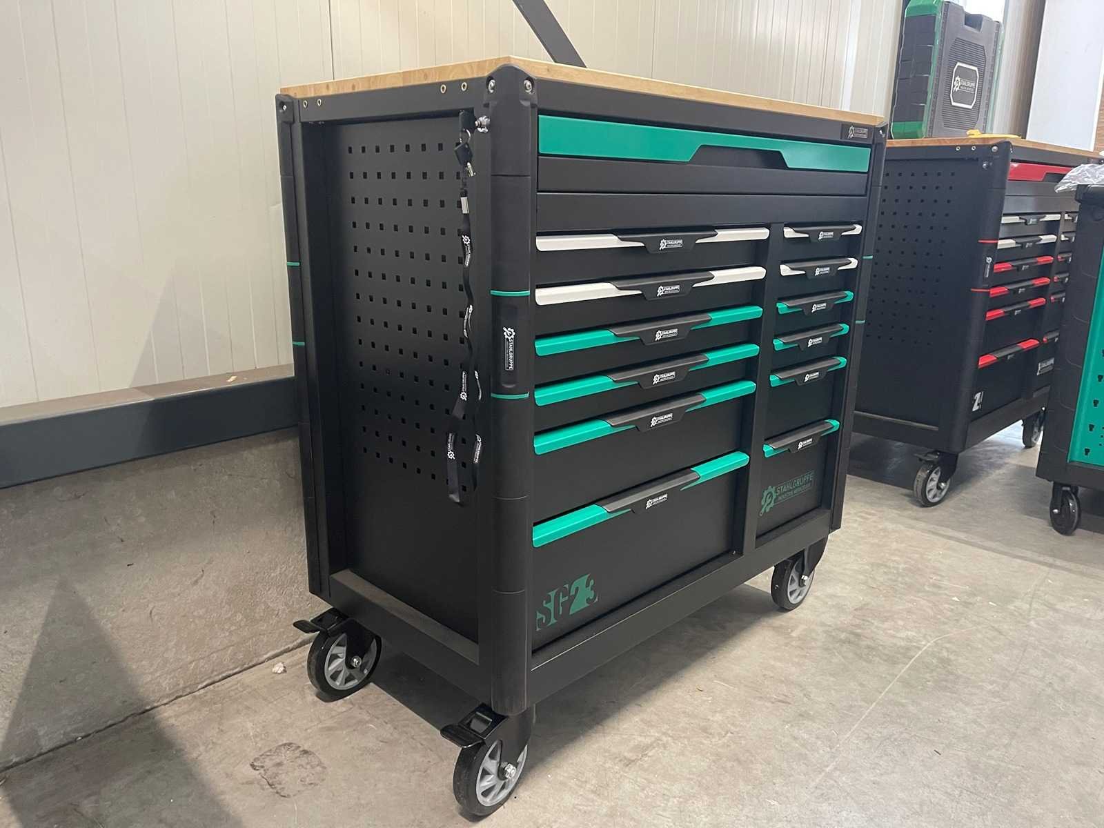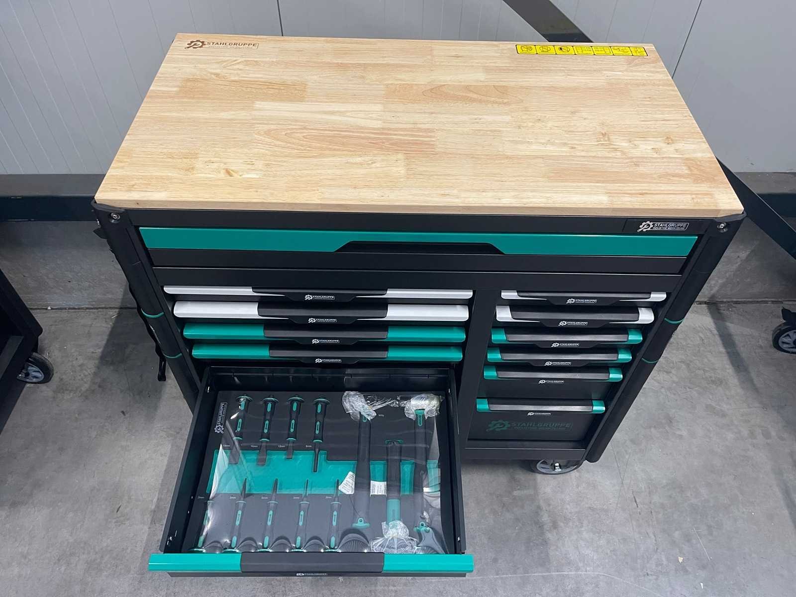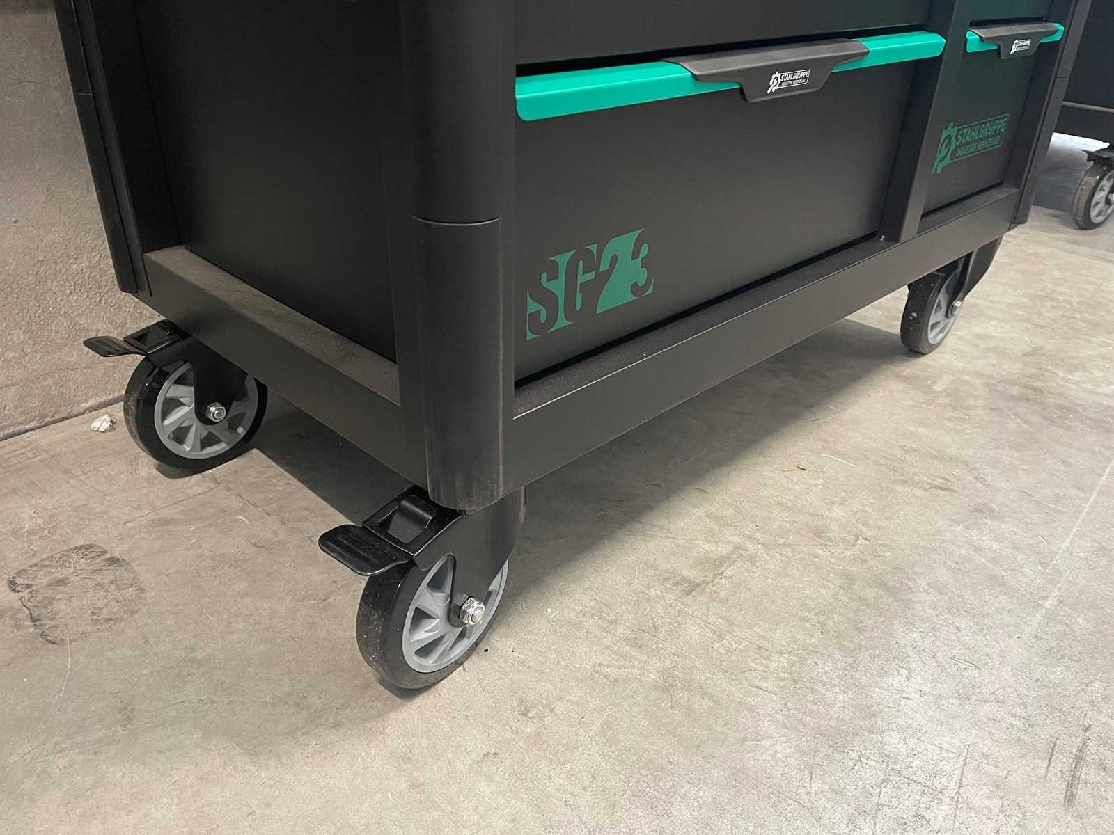 Stahlgruppe SG23 - Gereedschapswagen - <b>Inclusief gereedschap<b> 13 Laden - 11 Gevuld 448 pcs Gereedschap Lade grepen groen gespoten met kunststof greep 2 zwenkwielen geremd Mat zwart milieu vriendelijke poeder coating Inclusief bezorging in heel Nederland en Belgie, behalve de waddeneilanden</b></b> Bezorgtermijn 7 dagen Merk: Stahlgruppe Type: SG23 Aantal laden: 13 Met inhoud: true