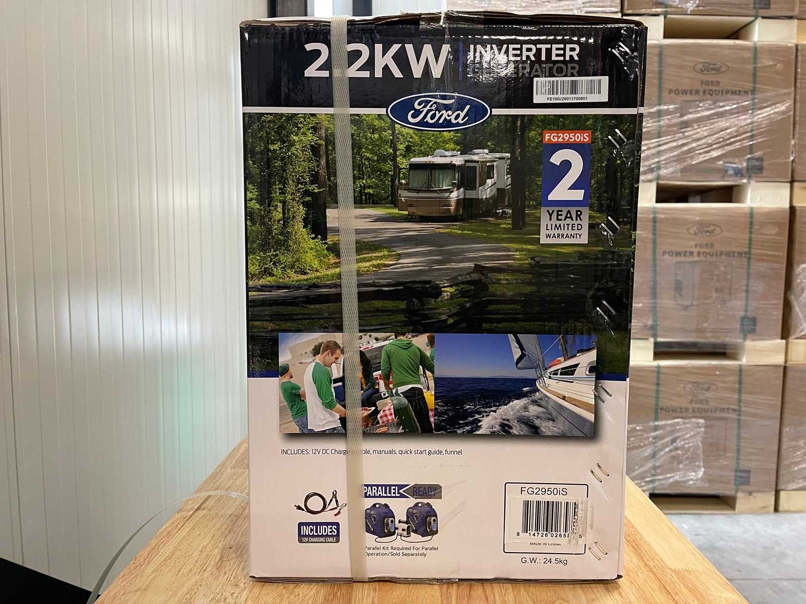 Merk: Ford Type: FG2950iS Bouwjaar: 2025 Benzine: Ja Type motor: Ford Aantal cilinders: 1 Luchtgekoeld: Ja Mobiel: Ja Machinegewicht: 24.5 kg Totale afmeting L: 550 mm Totale afmeting Breedte: 330 mm Totale afmeting Hoogte: 475 mm Beschrijving: Vermogen (COP): 2000W; Vermogen (MAX): 2200W; Spanning: 230V; Frequentie: 50Hz; Motor: 98cc, 4-takt; luchtgekoeld; Tank: 1,18 gallon / 4,5 liter loodvrije benzine; Olietype: SAE 10W30; Olie-inhoud: 11,8 oz / 350 ml; Trekstart; ongebruikt in doos. Bezorgtermijn 7 dagen Merk: Ford Type: FG2950iS