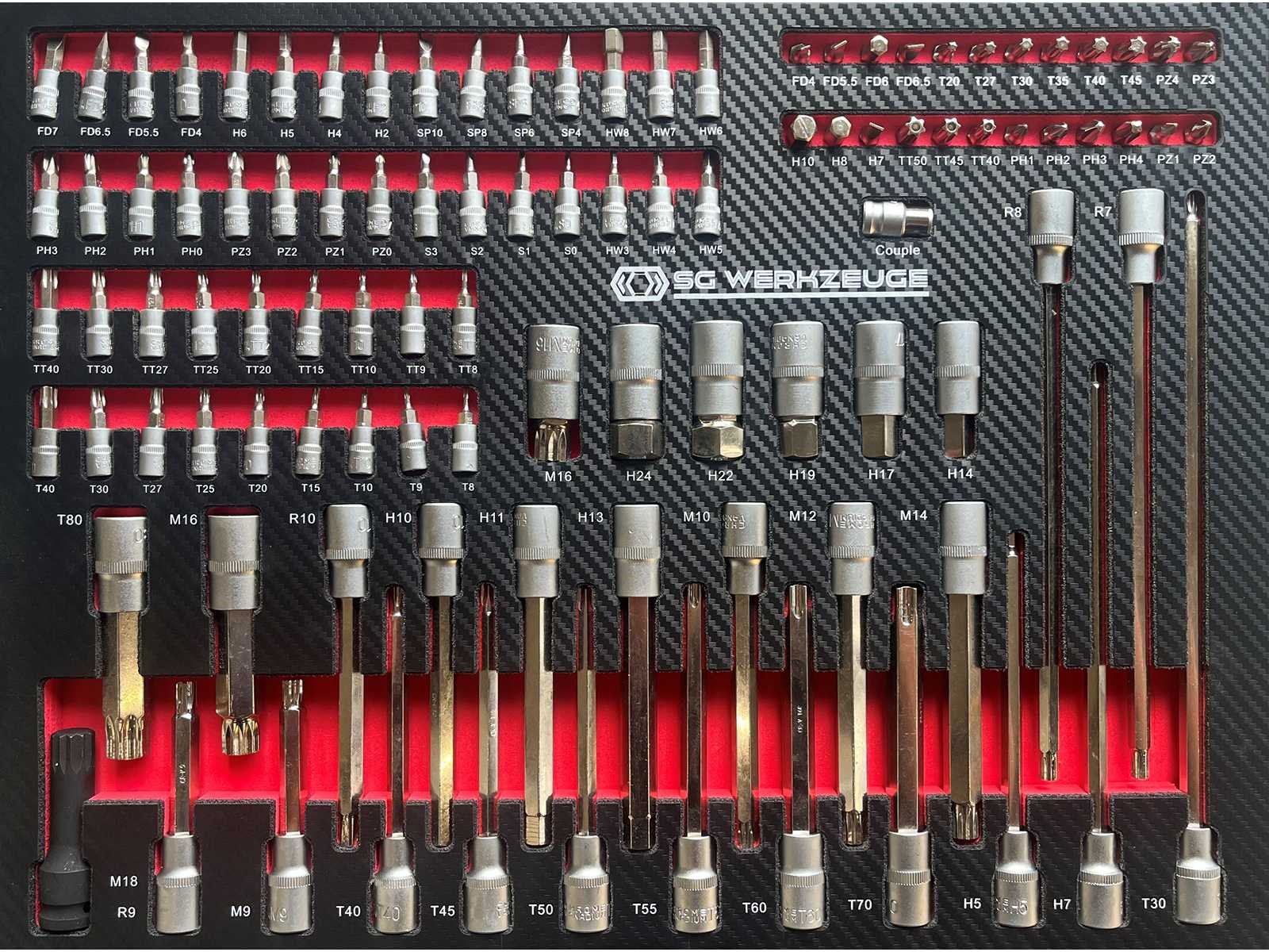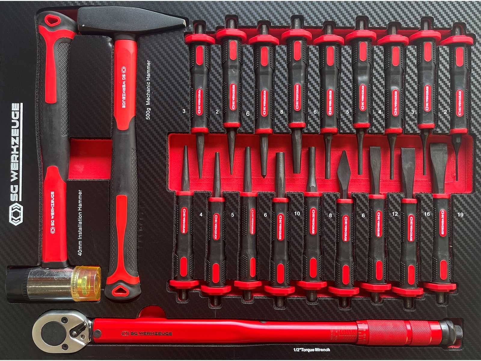SG Werkzeuge SG14-24 XXL - Gereedschapswagen - <b>Inclusief gereedschap</b> 7 Laden - 7 Gevuld 398 stuks Gereedschap Mat zwart Rood geanodiseerd aluminium ladegrepen 2 zwenkwielen geremd Inclusief bezorging in heel Nederland en Belgie, behalve de waddeneilanden Bezorgtermijn 7 dagen Merk: SG Werkzeuge Type: SG14-24 XXL Aantal laden: 7 Met inhoud: true