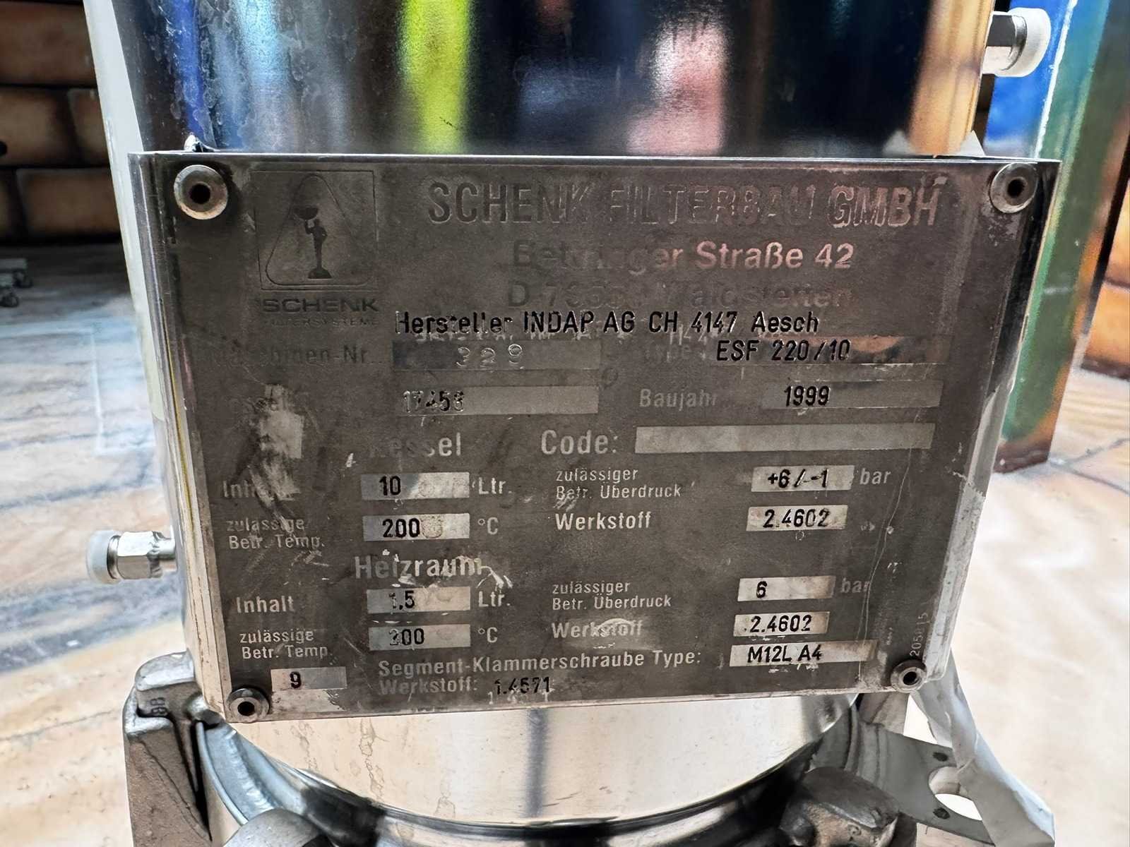 Merk: Schenk Filterbau Type: ESF 220/10 Bouwjaar: 1999 Totale afmeting L: 600mm Totale afmeting Breedte: 600mm Totale afmeting Hoogte: 1400mm