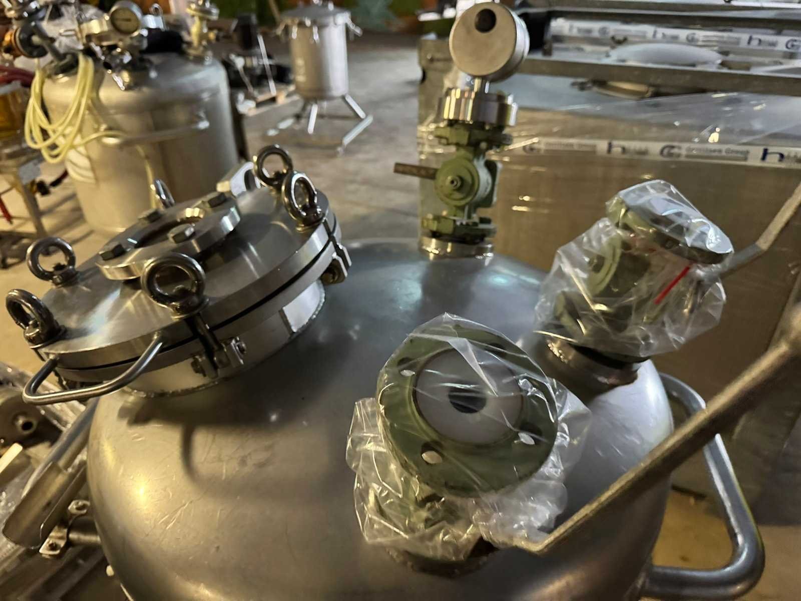 Mobile dispenser, stainless steel, 039-B302, 200 liters, 120°C, -1/atm bar Hastelloy Merk: Fischer Bouwjaar: 2002 Rvs: true Totale afmeting L: 900mm Totale afmeting Breedte: 900mm Totale afmeting Hoogte: 1700mm