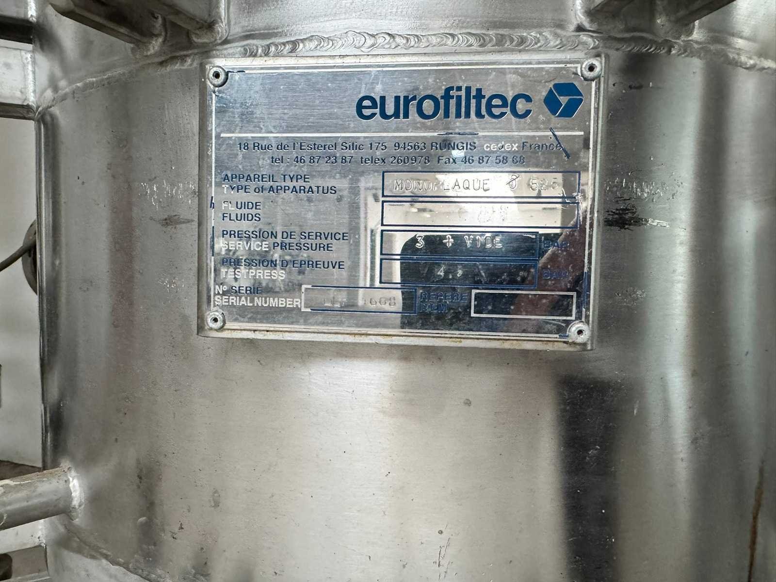 RDN filter dryer; 80 liters, made of 316L stainless steel, polished, max. 100°C, - 1/3 bar, filter area 0.21 m³, double jacket Merk: Eurofiltec Rvs: true Totale afmeting L: 1100mm Totale afmeting Breedte: 900mm Totale afmeting Hoogte: 2200mm