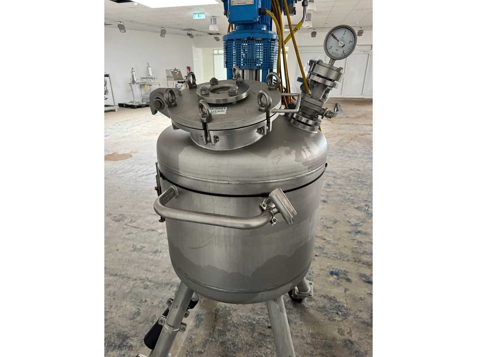 Mobile dispenser with stirrer and motor, 250 L, -1/atm bar, material Hastelloy C22 Merk: Fischer Bouwjaar: 2002 Serienummer: 02-333 Rvs: true Totale afmeting L: 900mm Totale afmeting Breedte: 900mm Totale afmeting Hoogte: 2100mm