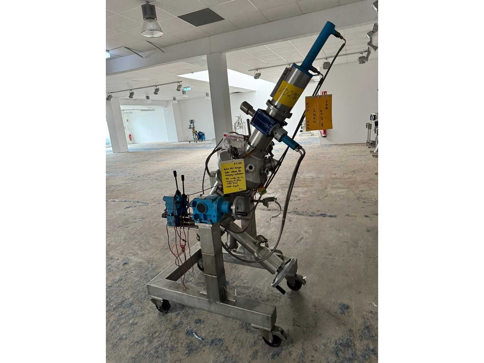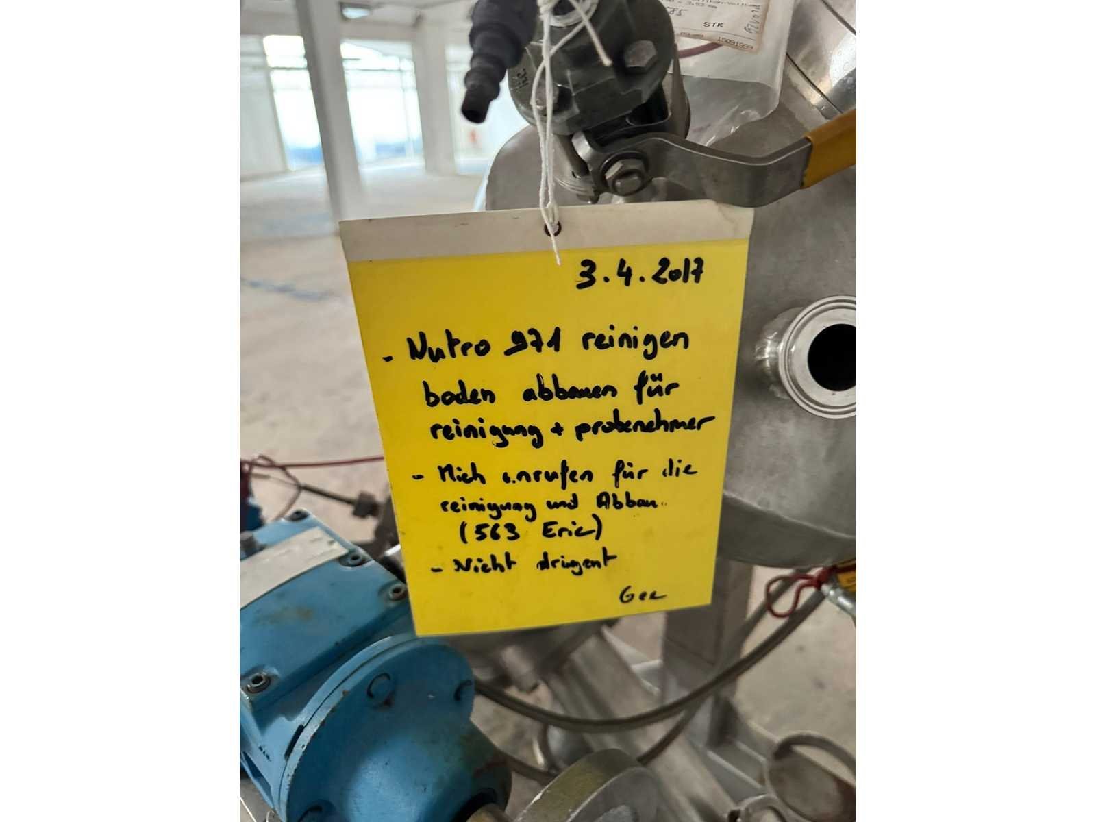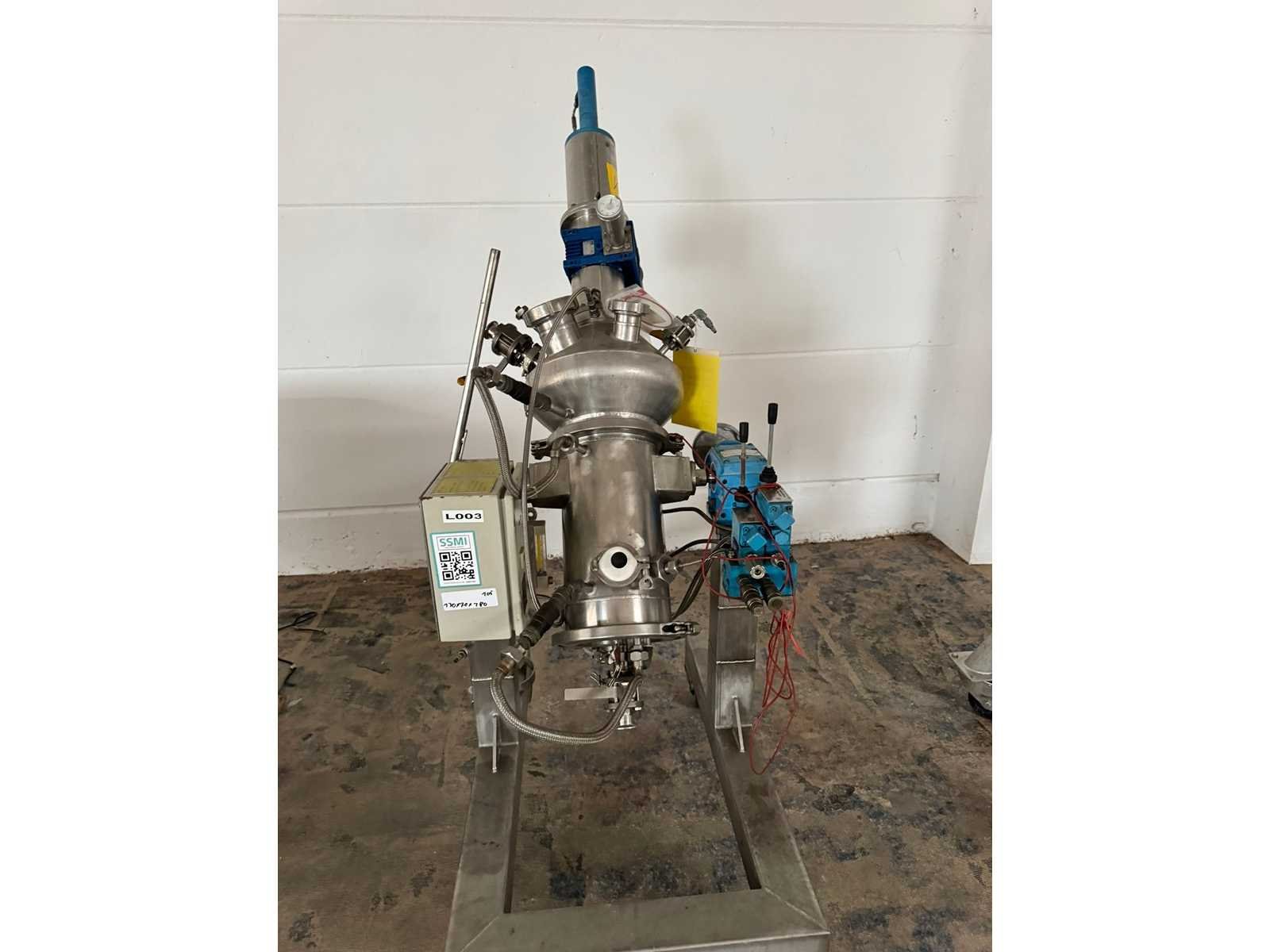 RDN filter dryer; 80 liters, made of 316L stainless steel, polished, max. 100°C, - 1/3 bar, filter area 0.21 m³, double jacket Eigen gewicht: 273kg Totale afmeting L: 1300mm Totale afmeting Breedte: 700mm Totale afmeting Hoogte: 1800mm