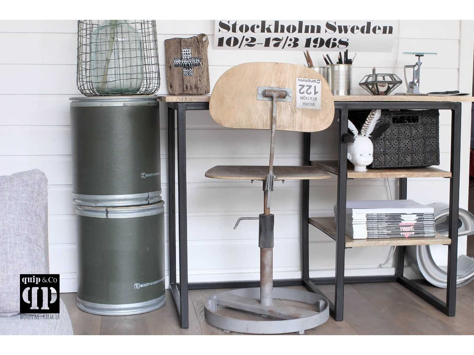 Merk: Quip & Co Kleur: Zwart Lengte: 100cm Breedte: 52cm Hoogte: 80cm Materiaal: Mango hout, Metaal