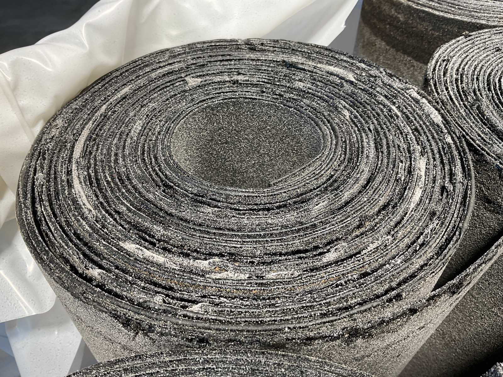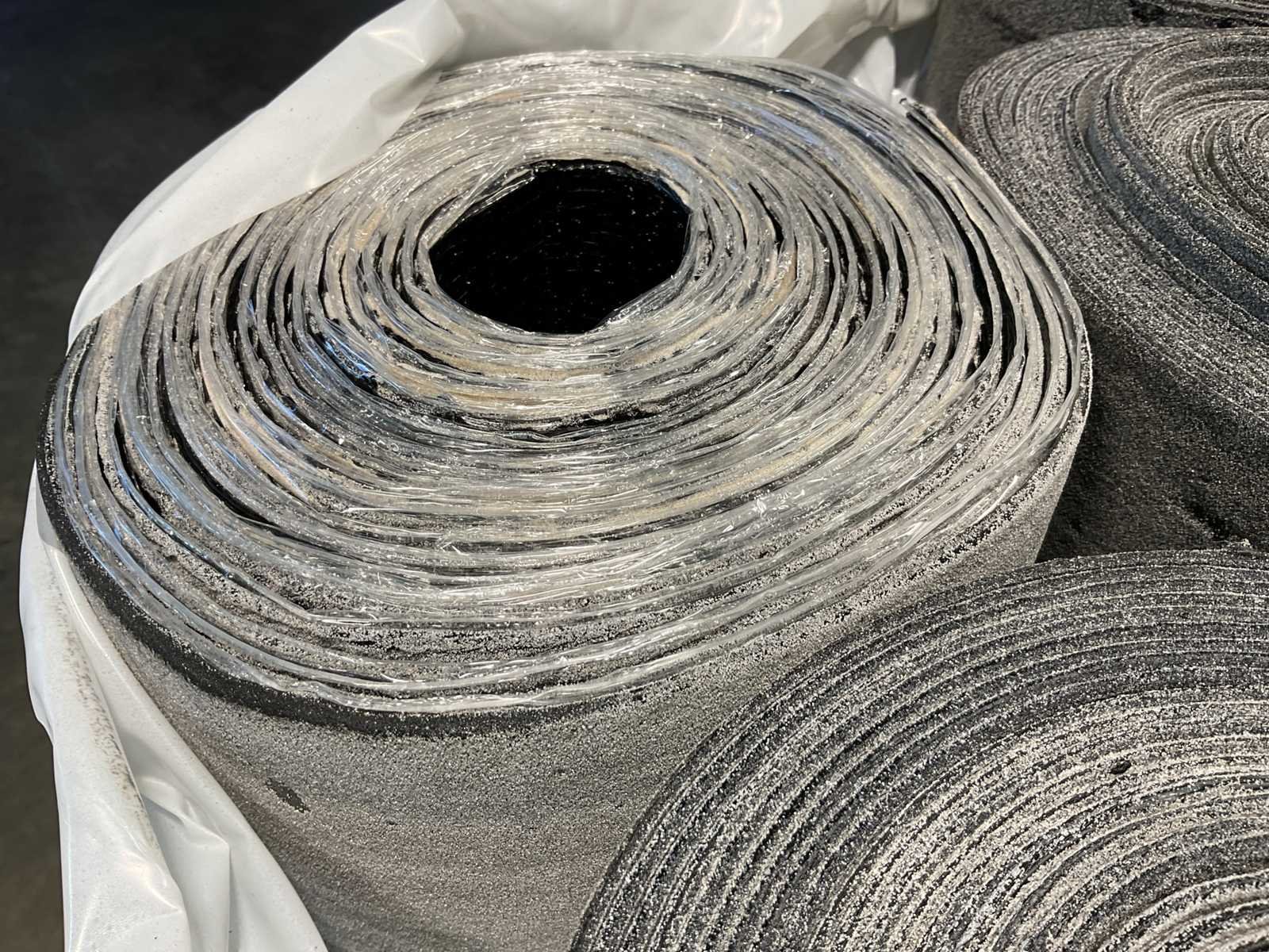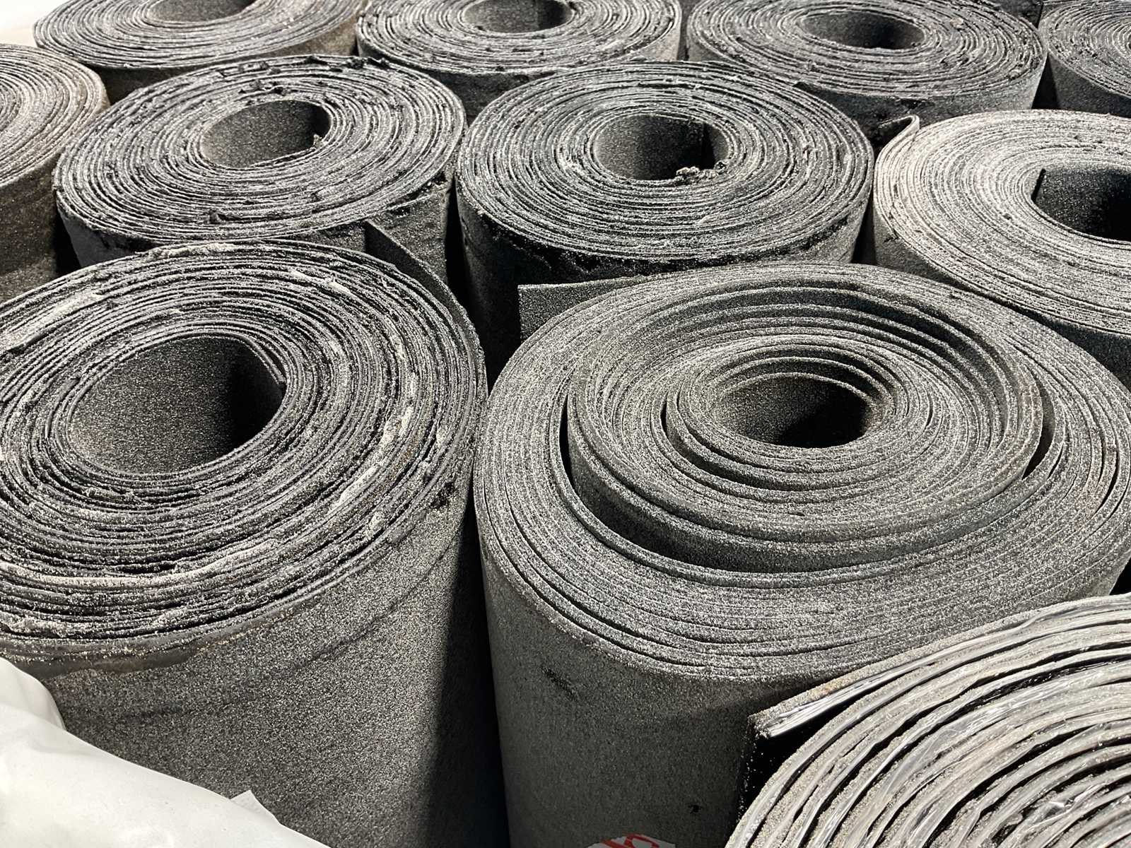 Pallet met 25 rollen bitumen dakleer.