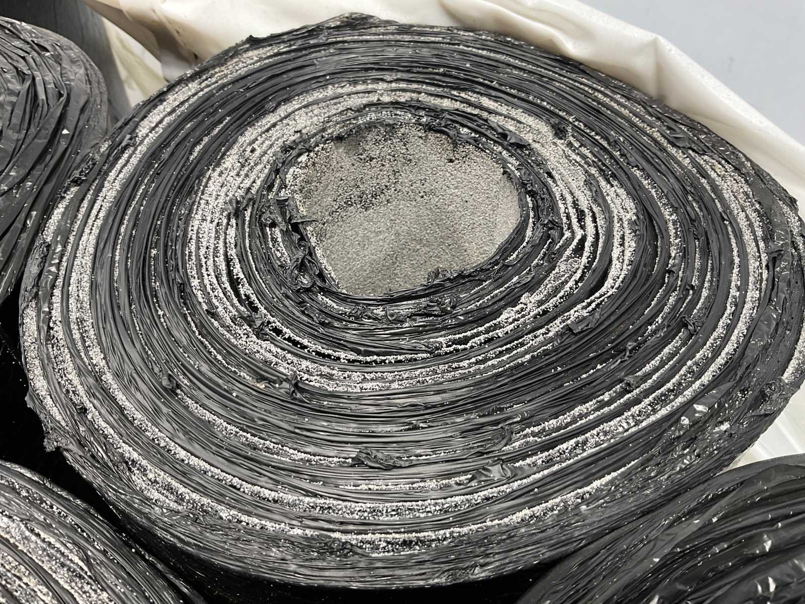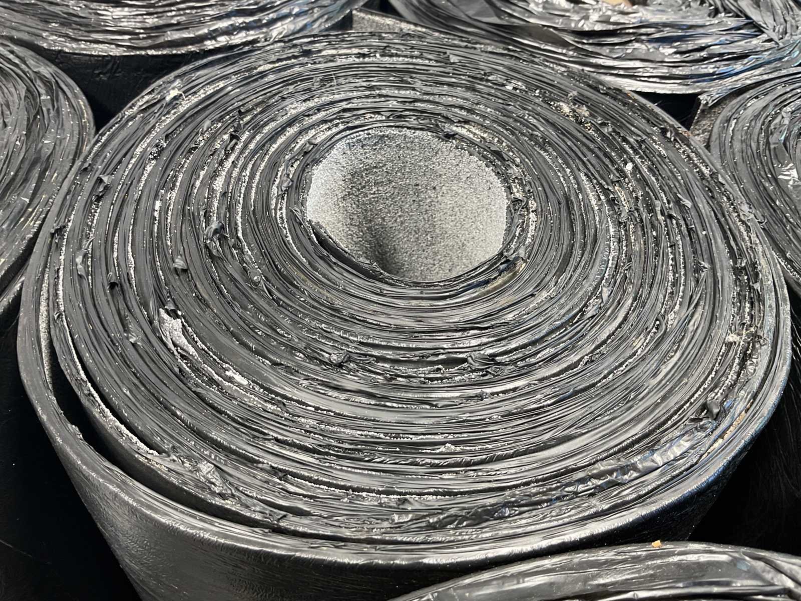 Pallet met 21 rollen bitumen dakleer.