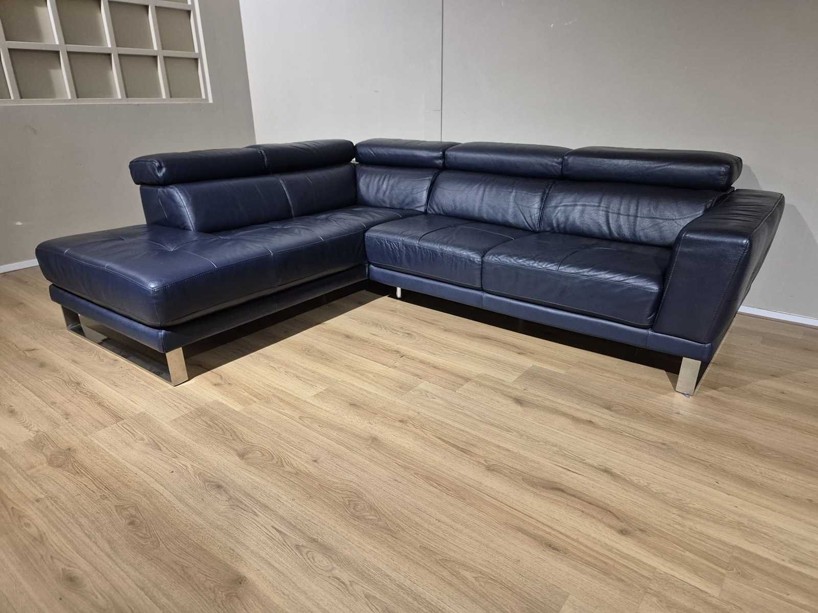 Jong gebruikt Merk: Montel Model: Temptation Product type: Hoekbank Kleur: Blauw Gewicht: 40kg Lengte: 265cm Breedte: 210cm Hoogte: 77cm Zithoogte: 43cm Diepte: 56cm Materiaal: Leer