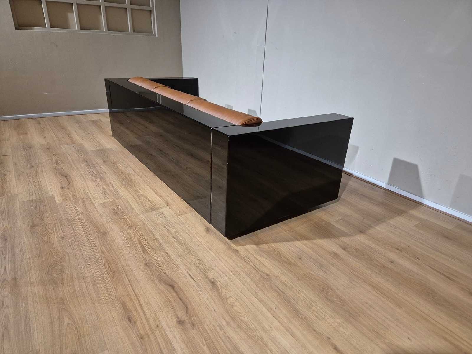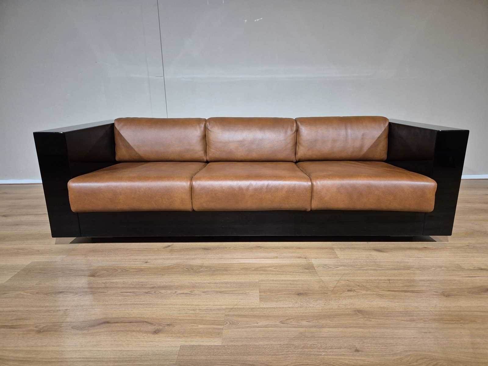 Vintage Merk: Poltronova Model: Saratoga Product type: Vintage 3 zits Bank Kleur: Bruin - Zwart Gewicht: 60kg Lengte: 210cm Breedte: 90cm Hoogte: 61cm Zithoogte: 40cm Diepte: 56cm Materiaal: Hout - Leer