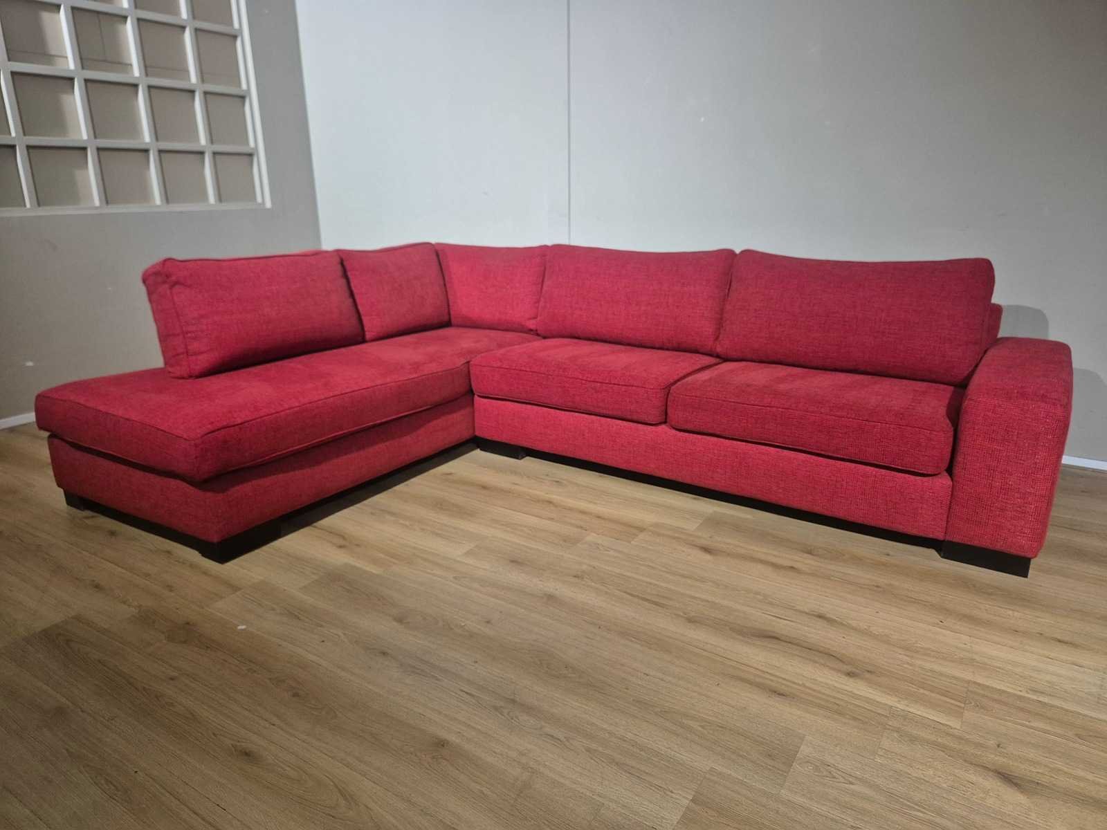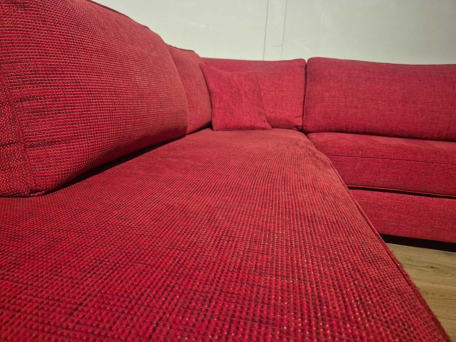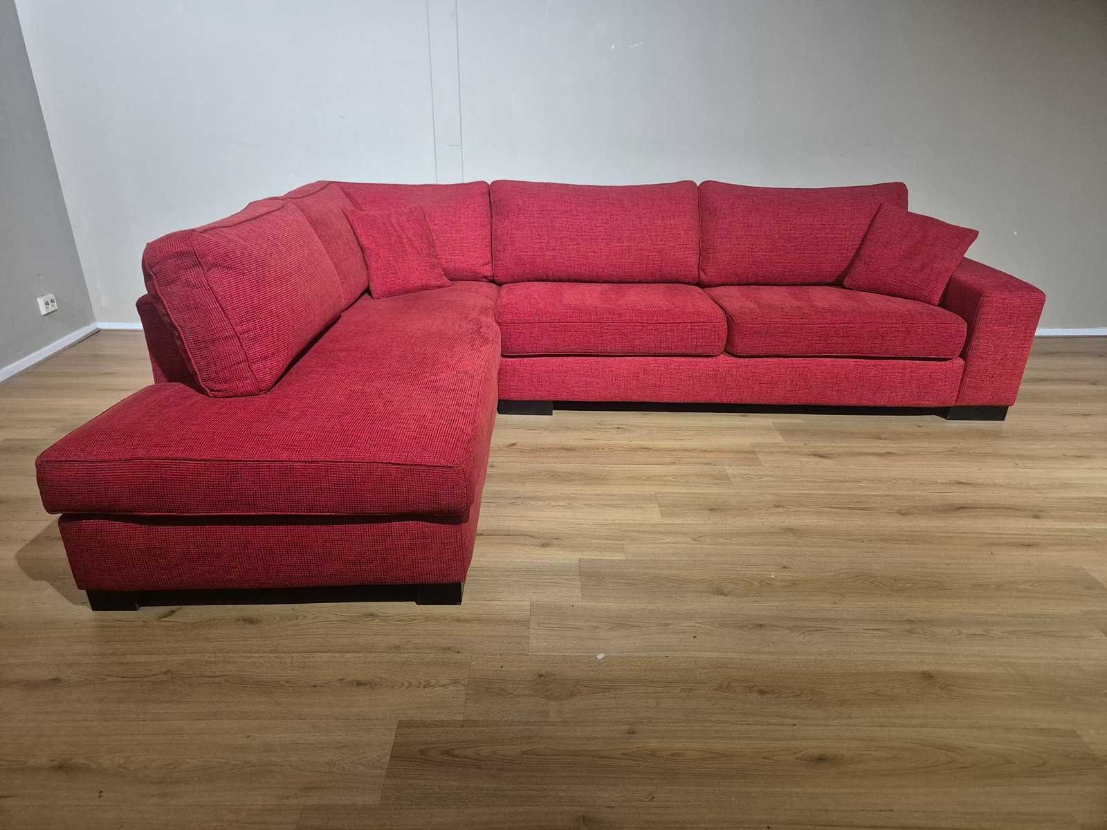 Jong gebruikt Merk: Goossens Model: Saltillo Product type: Hoekbank Kleur: Rood Gewicht: 60kg Lengte: 300cm Breedte: 220cm Hoogte: 80cm Zithoogte: 44cm Diepte: 55cm Materiaal: Stof