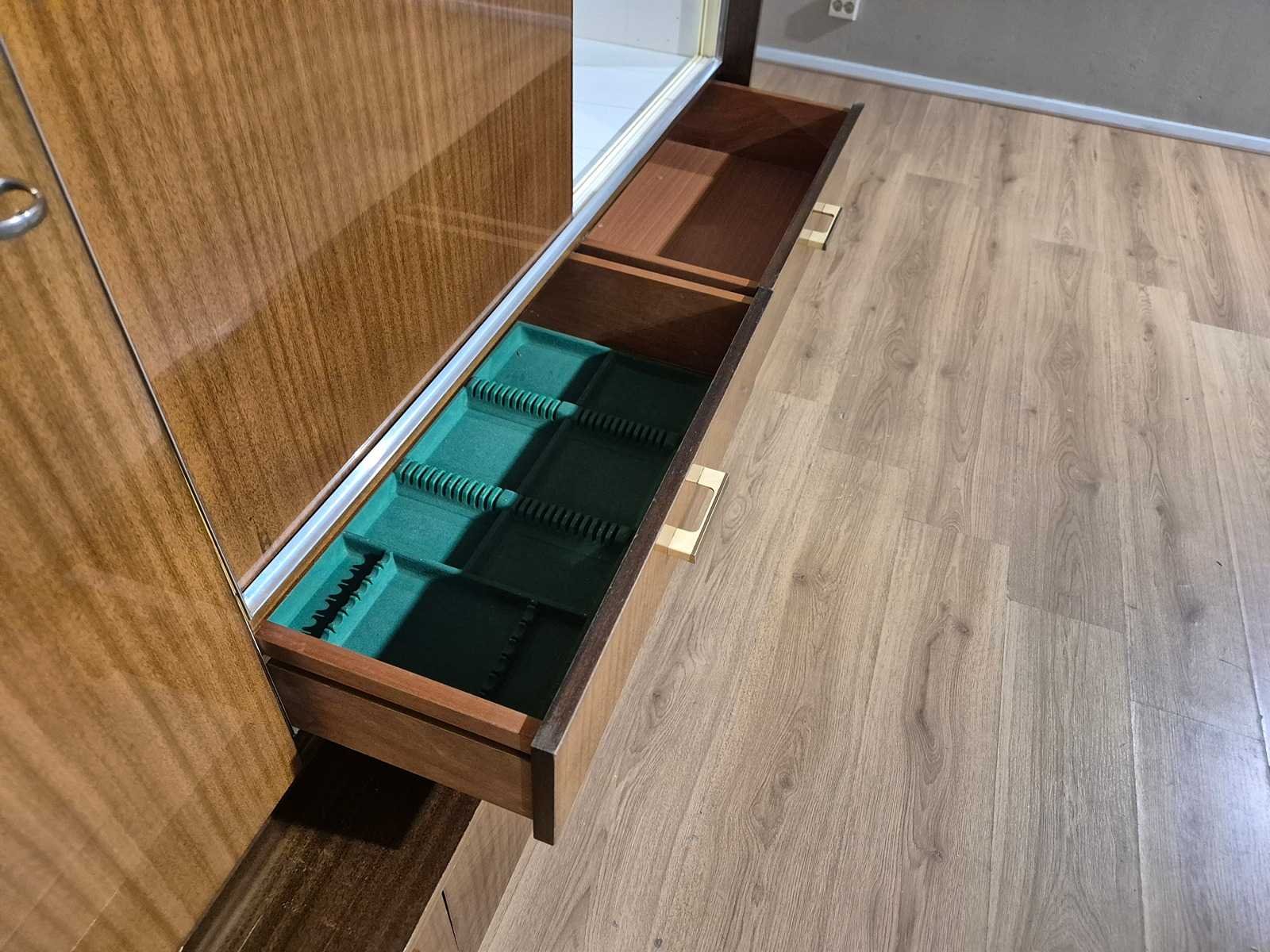 Vintage Merk: Vintage Model: Jaren 60/70 Design Product type: Bar Cabinet Kleur: Bruin Gewicht: 80kg Lengte: 175cm Breedte: 45cm Hoogte: 150cm Materiaal: Hout