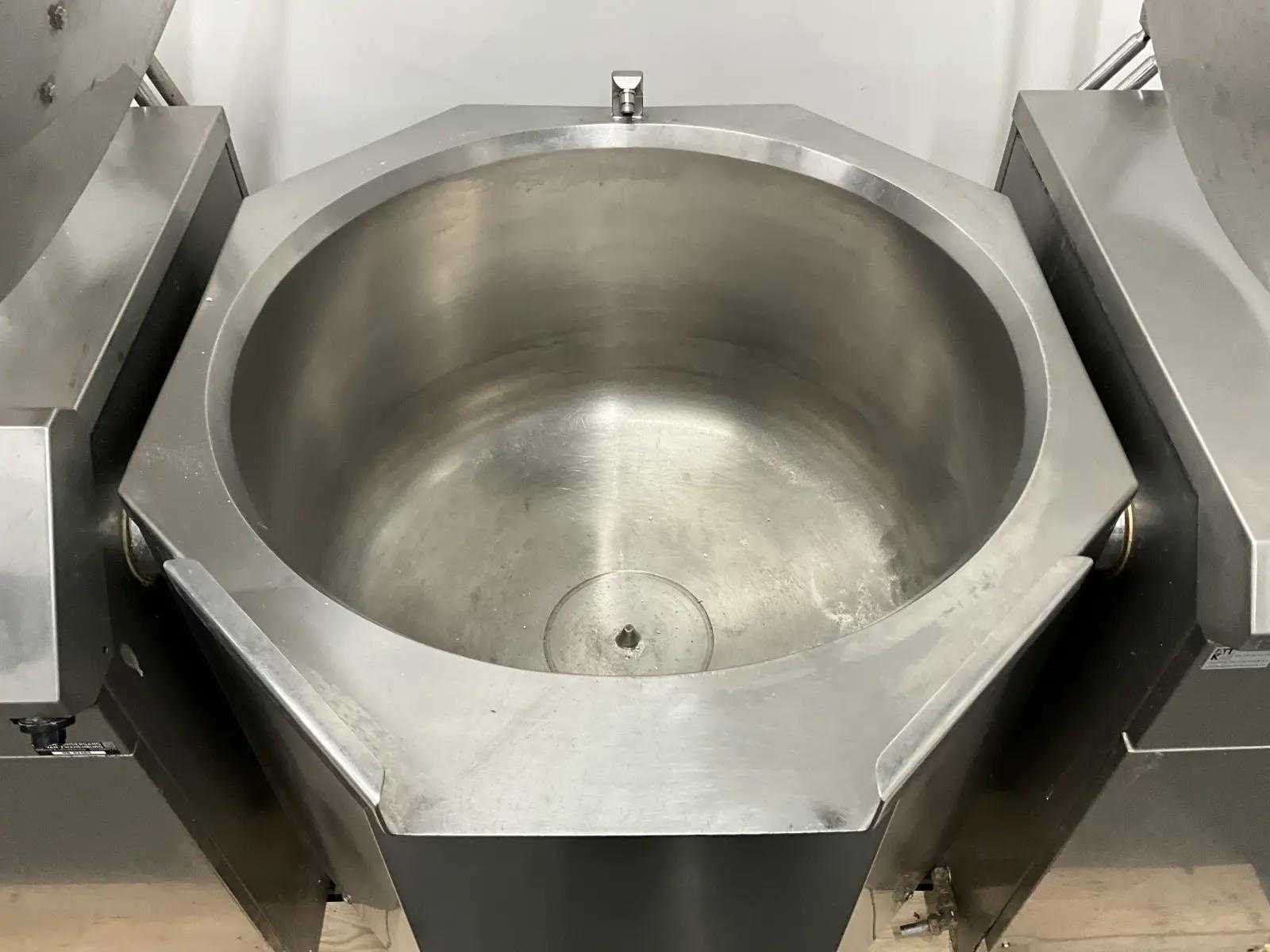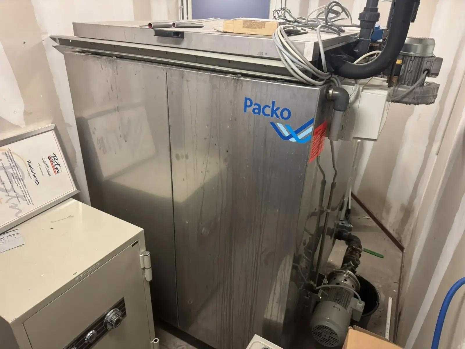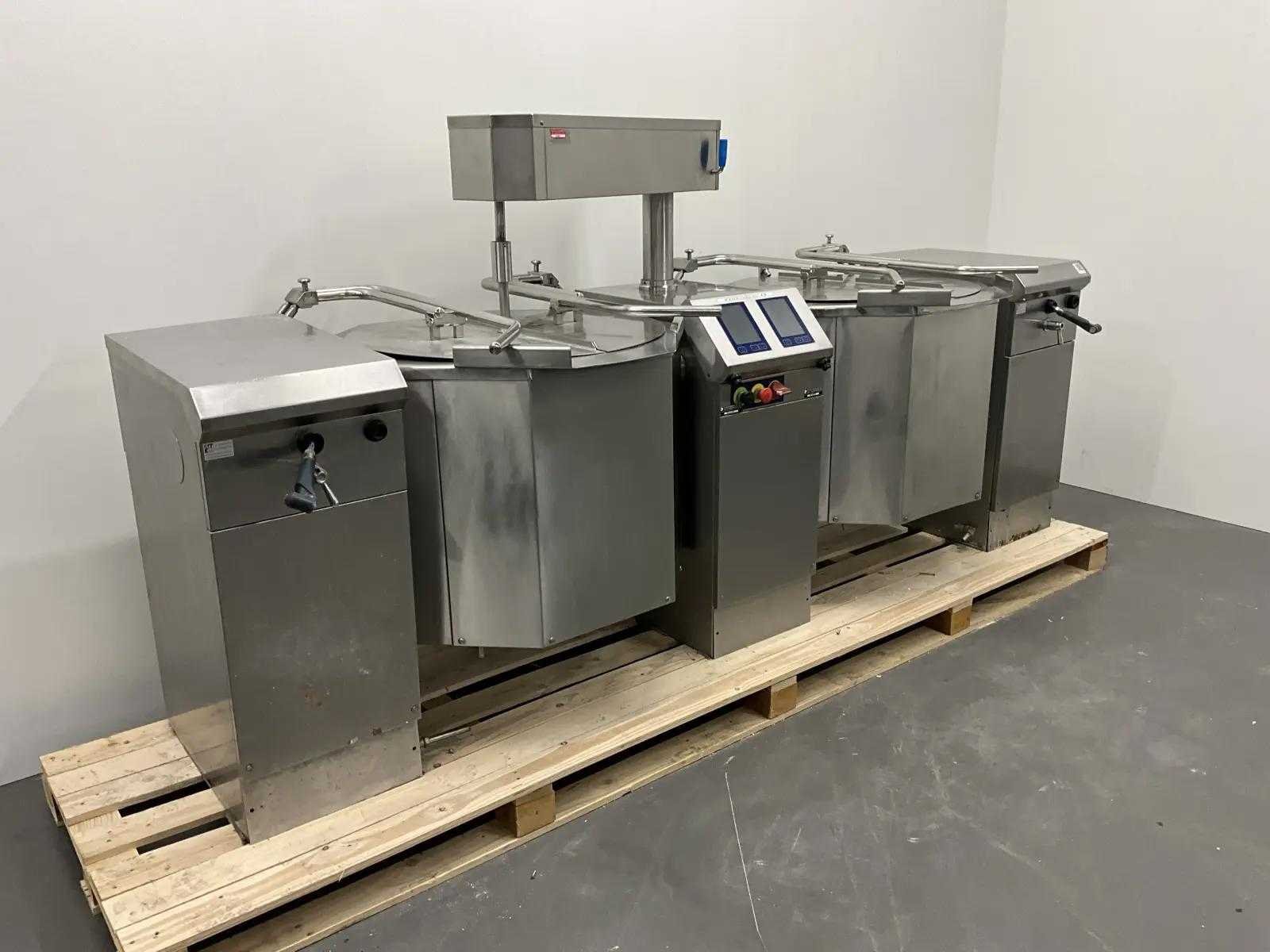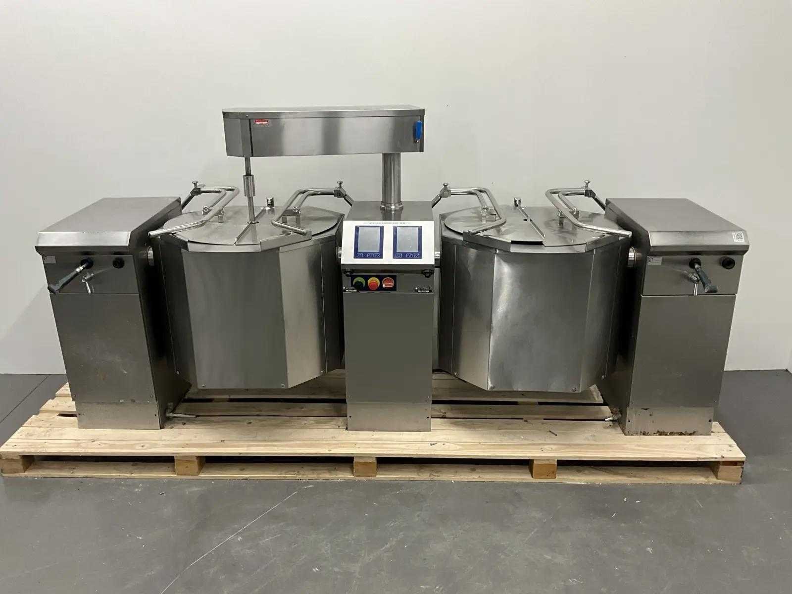Elektrisch kantelbare dubbele "Cook & Chill" ketel met mixer-unit. V.v. Packo PIB25 Industriële ijsaccumulator tbv terugkoeling van de ketels. Vermogen 28kW per ketel. Merk: Dieta Model: EMX 165.165 Lengte: 285cm Breedte: 90cm Hoogte: 90cm Totale afmeting Breedte: 900mm Totale afmeting L: 2850mm Totale afmeting Hoogte: 900mm Spanning: 400