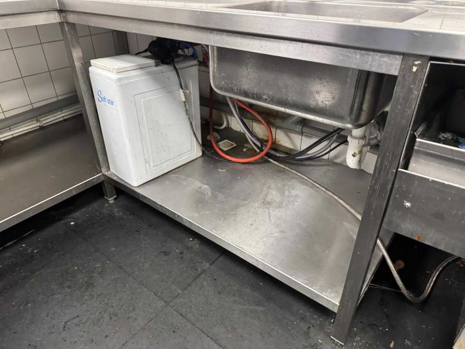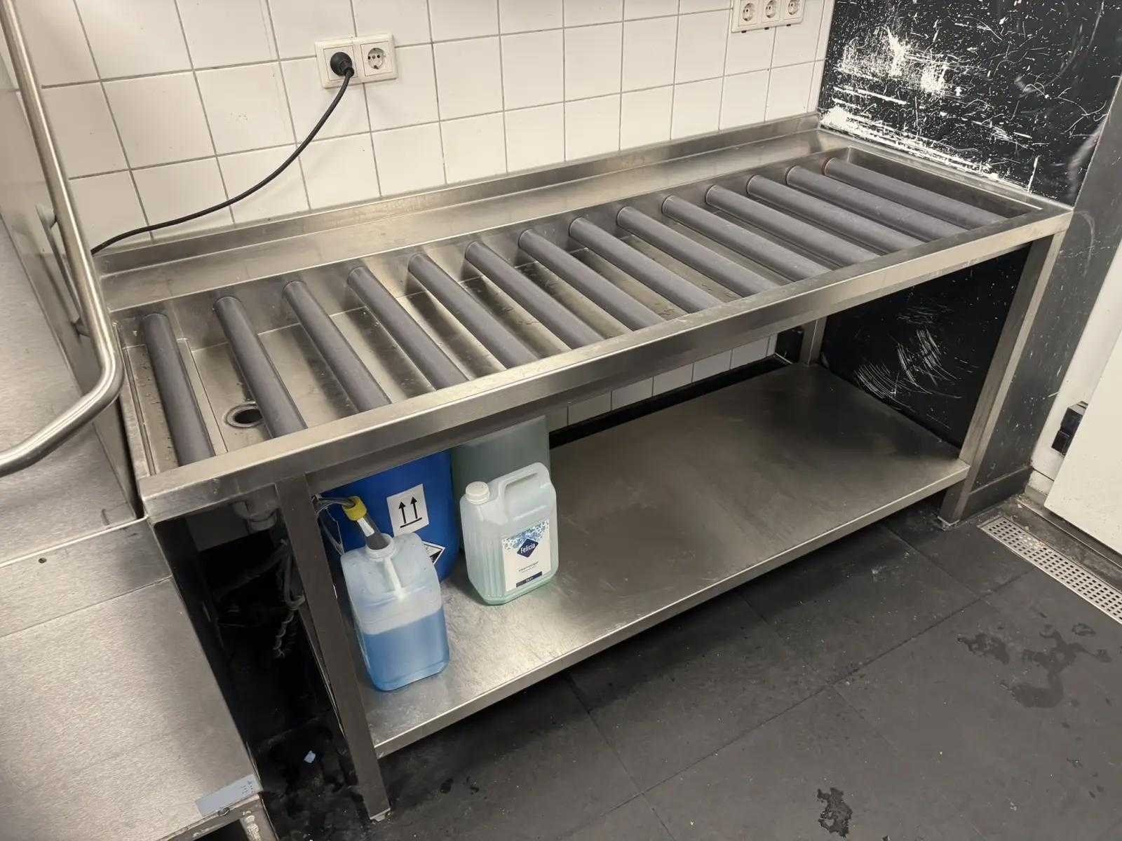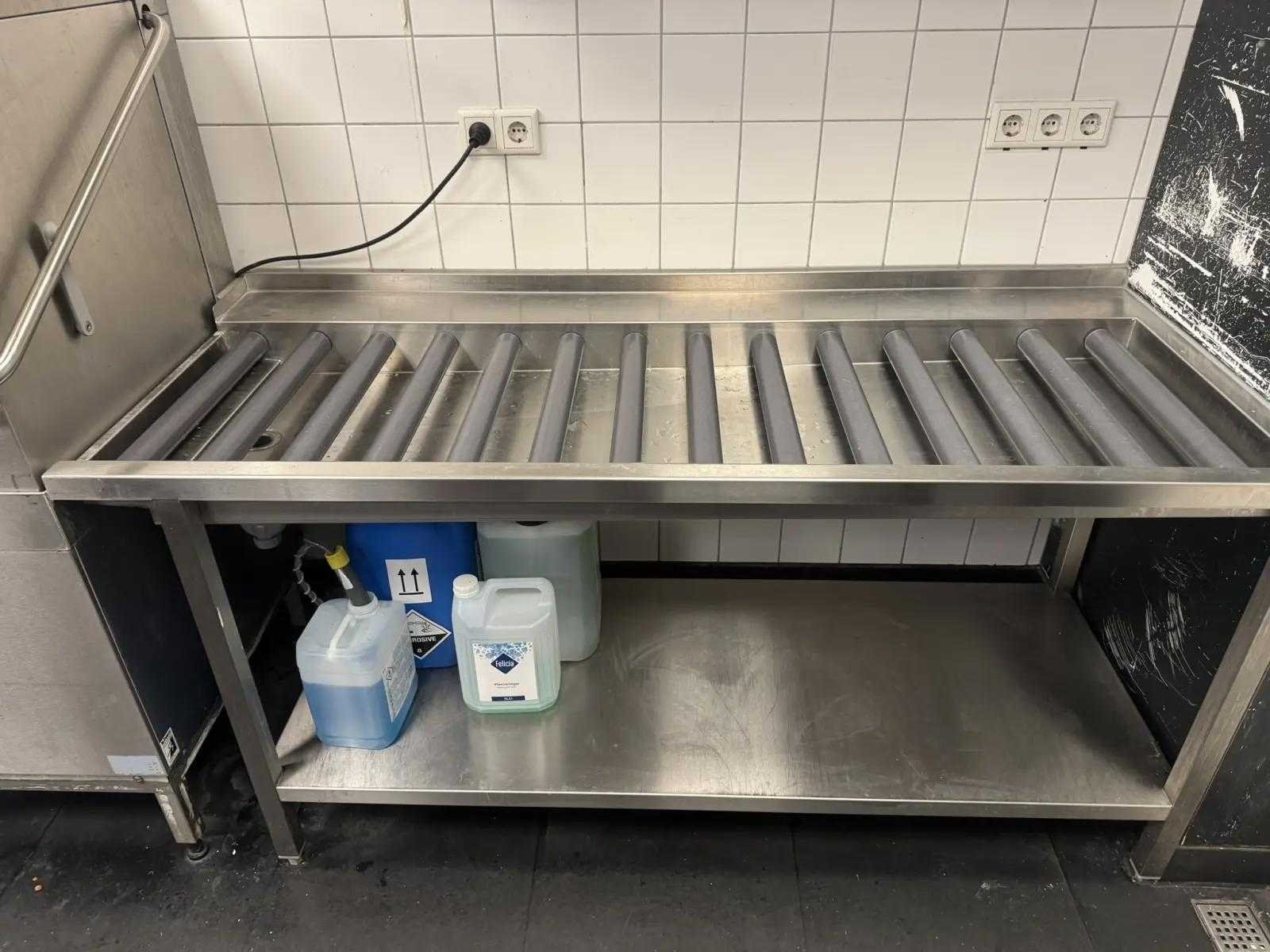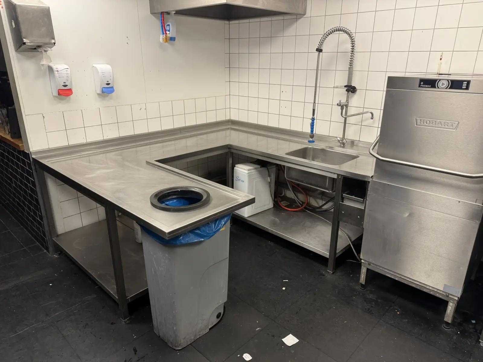 V.v. spoeltafel met voorspoeldouche en afvalstort, rollenbaan korvenafvoertafel, Lubron Softstar waterontharder, en dampkap. Reeds professioneel gedemonteerd en zorgvuldig getransporteerd naar de afhaallocatie. LET OP! Voor bovenstaande kunnen additionele kosten van toepassing zijn. Merk: Hobart Type: Premax