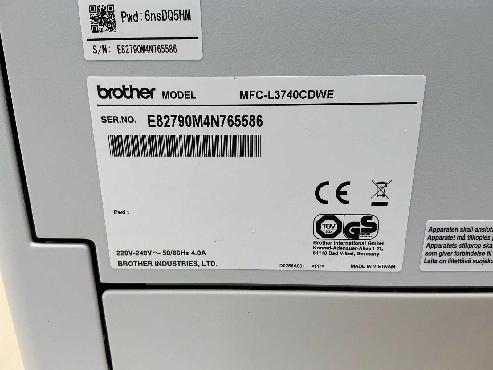 Het bezorggebied van de kavels is standaard gericht op Nederland en België. Indien u als koper gevestigd bent in een ander EU-land, kunt u tijdens het afrekenen een buitenlands afleveradres opgeven of het volgende adres invullen voor afhaling: Edisonstraat 23, 8861NA Harlingen, Nederland. Na afronding van de bestelling wordt contact met u opgenomen om de verzendmogelijkheden en de bijbehorende additionele kosten voor levering buiten Nederland en België te bespreken. De kavels worden vervolgens klaargezet voor afhaling op het opgegeven adres of tegen een meerprijs verzonden naar het buitenlandse afleveradres. Merk: Brother Model: MFC-L3740CDWE Product type: Printer Kleur: Grijs Gewicht: 20kg Lengte: 44.4cm Breedte: 41cm Hoogte: 40.1cm