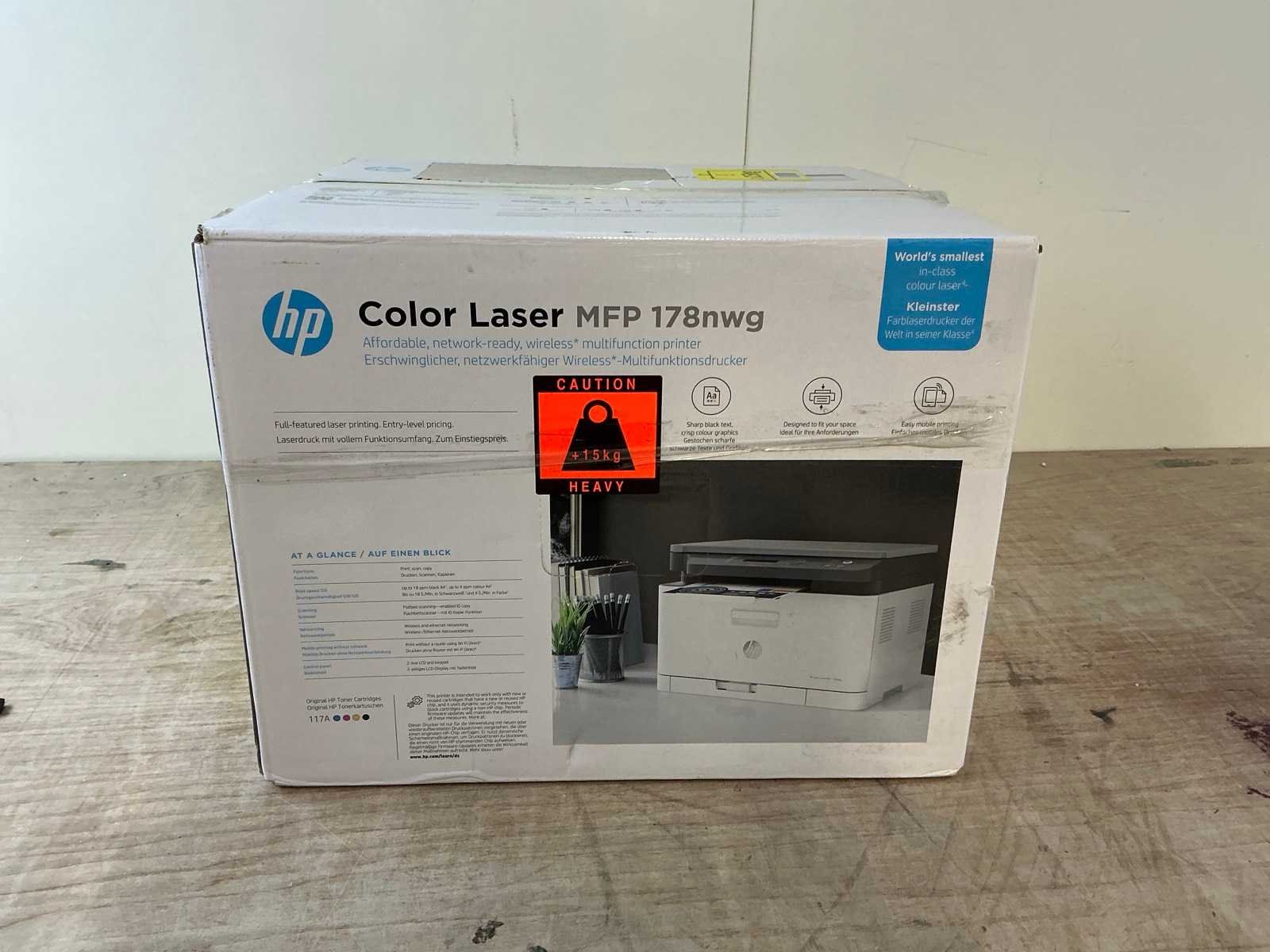 Met kabel, Het bezorggebied van de kavels is standaard gericht op Nederland en België. Indien u als koper gevestigd bent in een ander EU-land, kunt u tijdens het afrekenen een buitenlands afleveradres opgeven of het volgende adres invullen voor afhaling: Edisonstraat 23, 8861NA Harlingen, Nederland. Na afronding van de bestelling wordt contact met u opgenomen om de verzendmogelijkheden en de bijbehorende additionele kosten voor levering buiten Nederland en België te bespreken. De kavels worden vervolgens klaargezet voor afhaling op het opgegeven adres of tegen een meerprijs verzonden naar het buitenlandse afleveradres. Merk: HP Model: Color laser Product type: MFP 178nwg Kleur: Wit