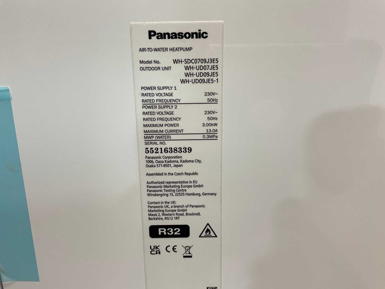 Panasonic WH-SDC0709J3E5 binnenunit zonder installatie. Deze binnenunit behoort tot de Aquarea J-generatie en betreft een lucht-water warmtepomp in bi-bloc uitvoering. De unit is ontworpen voor toepassing in split warmtepompsystemen en wordt gecombineerd met een separate buitenunit. De unit werkt met R32 koudemiddel en is geschikt voor verwarmen en koelen binnen residentiële installaties. De binnenunit is geschikt voor systemen in de 7 tot 9 kW klasse en wordt toegepast als hydraulische module binnen het systeem. De unit werkt op 230 V (1-fase). Volgens het typeplaatje bedraagt het maximale vermogen 3,0 kW en de maximale stroom 13,0 A. De binnenunit heeft afmetingen van circa 892 x 500 x 340 mm (h x b x d) en een nettogewicht van circa 42 kg. Merk: Panasonic Type: WH-SDC0709J3E5 Vermogen: 7-9kW Aansluiting: 230V Eigen gewicht: 42kg Totale afmeting L: 340mm Totale afmeting Breedte: 500mm Totale afmeting Hoogte: 892mm