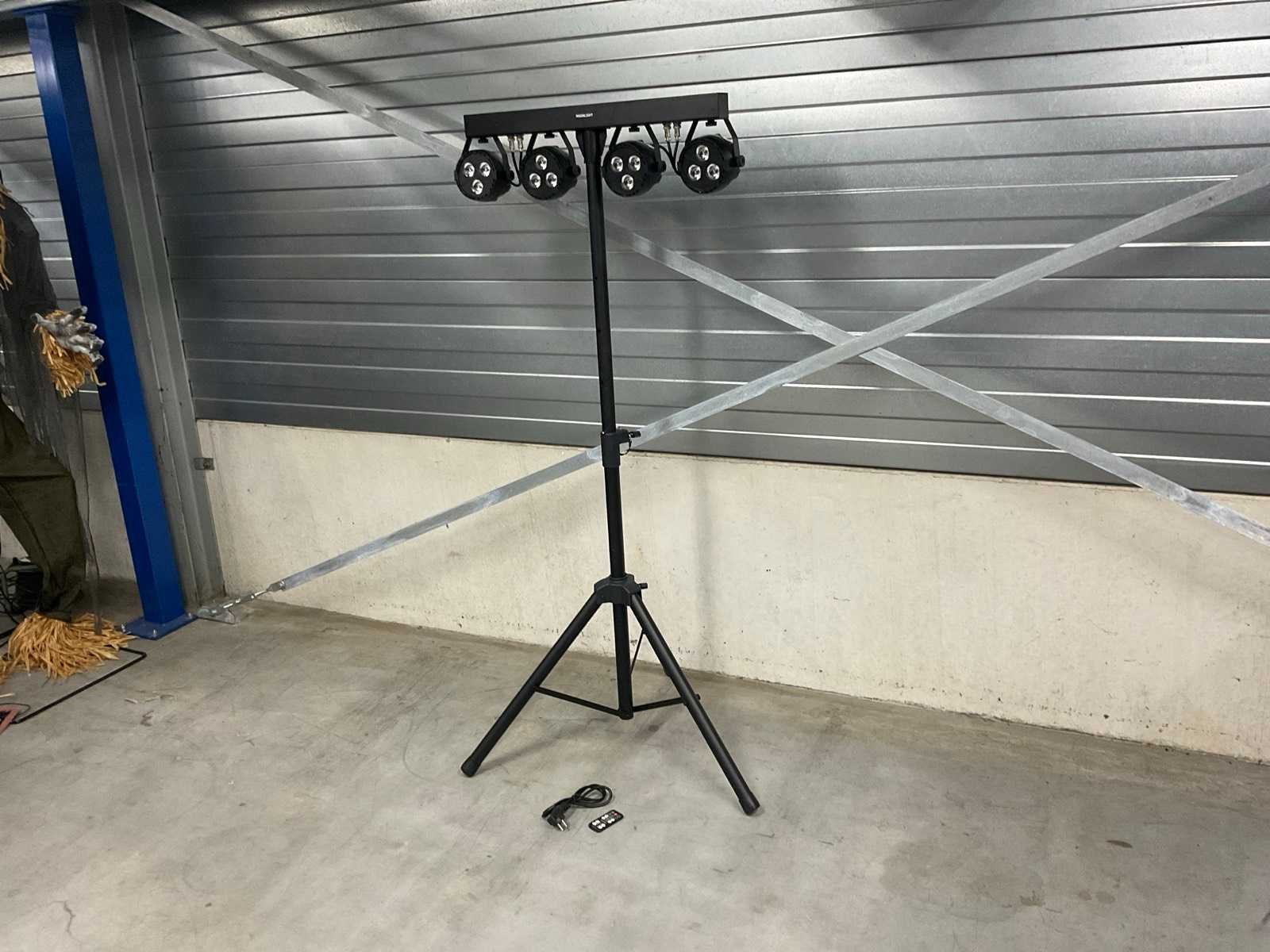 RGBW, automatische sound to light, draadloze afstandsbediening. Merk: Moonlight LED: true DMX: true Aansluiting: 230V