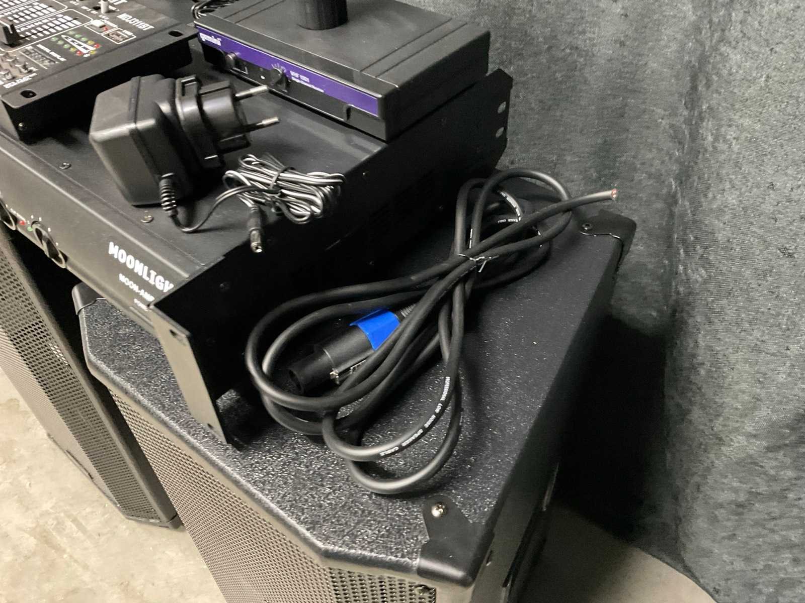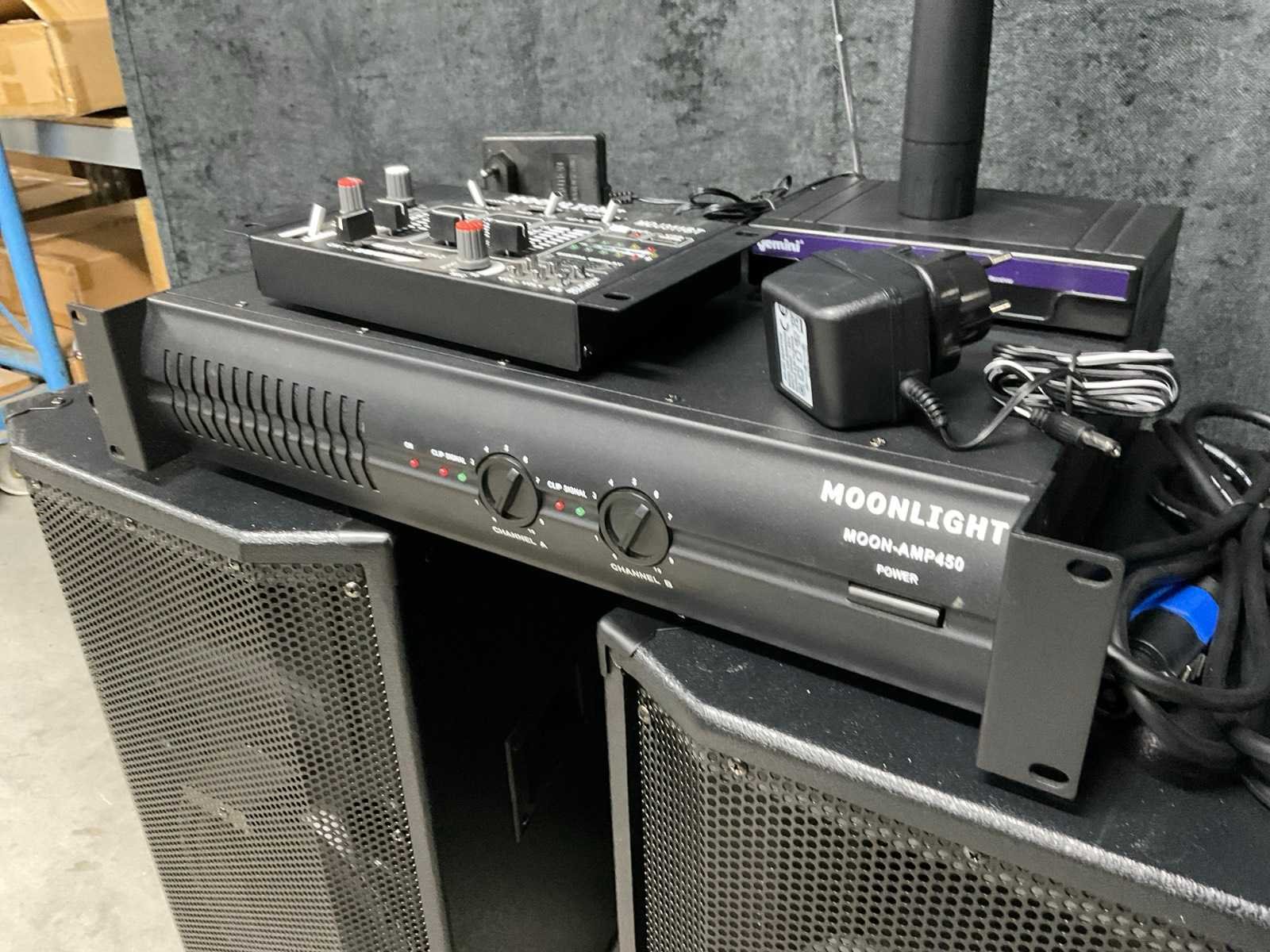 Bestaande uit: 2x 8 inch Box 400 Watt, versterker, mixer, USB en Bluetooth, 2x speakon kabels Merk: Moonlight Lengte: 30cm Breedte: 35cm Hoogte: 56cm