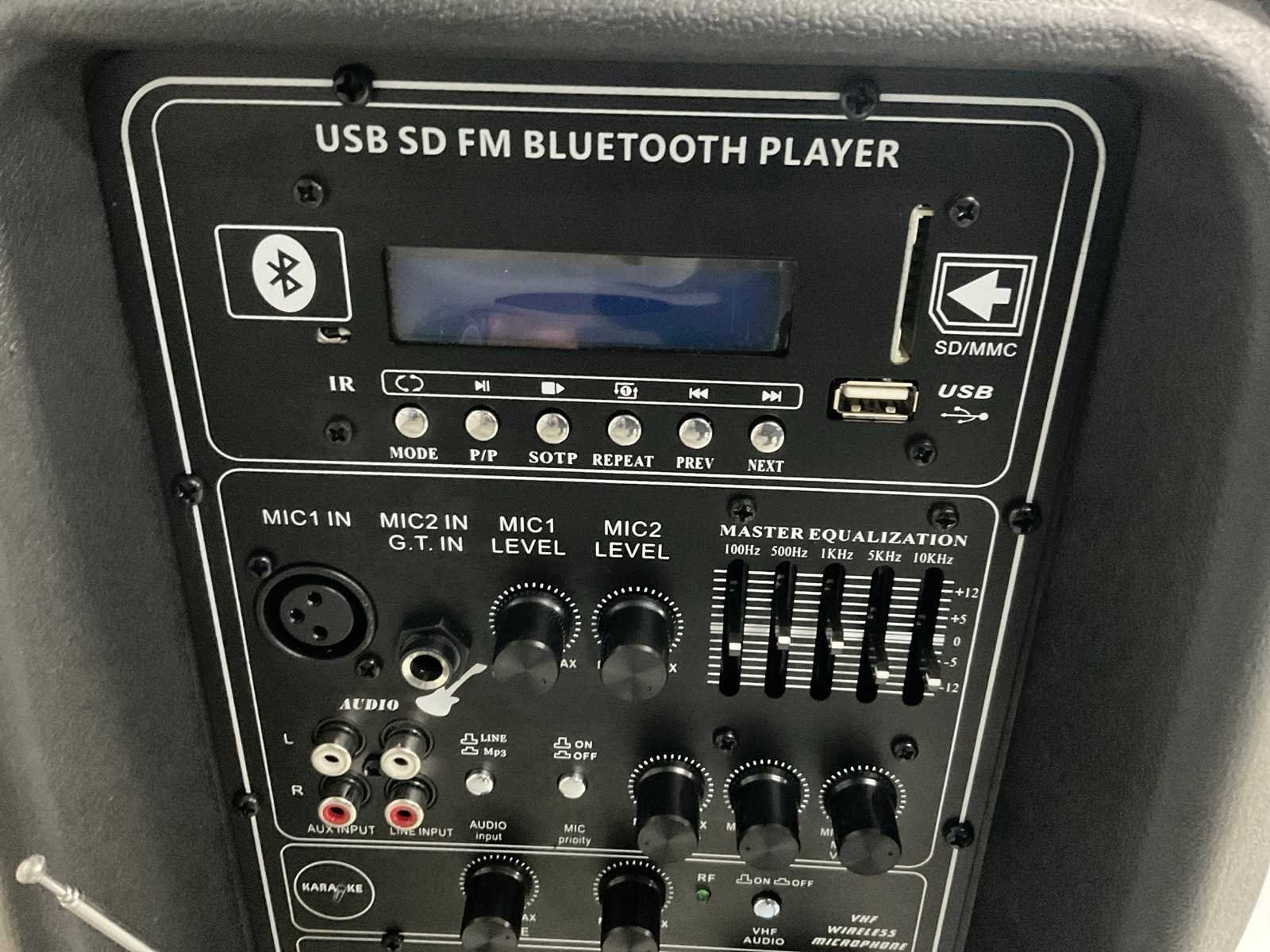 USB, Bluetooth, oplaadbare accu, 15 inch woofer, draadloze microfoon Merk: Moonlight Type: DCK202 Actief: true Aansluiting: 230V Totale afmeting L: 340mm Totale afmeting Breedte: 400mm Totale afmeting Hoogte: 660mm